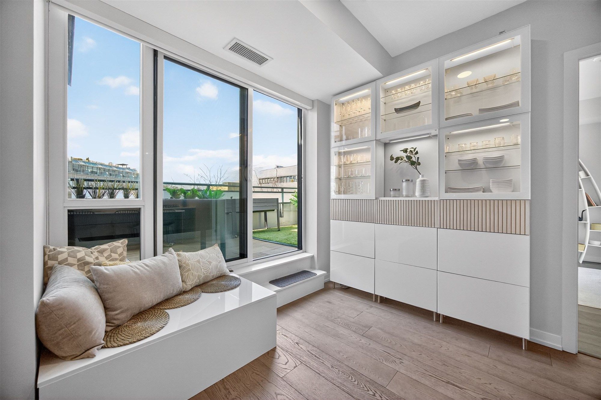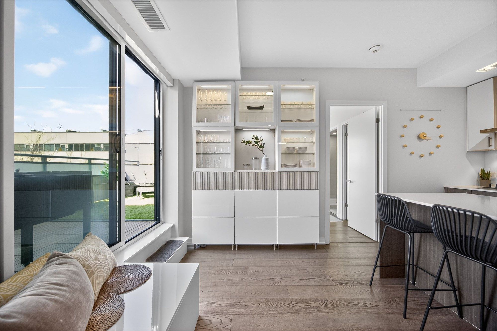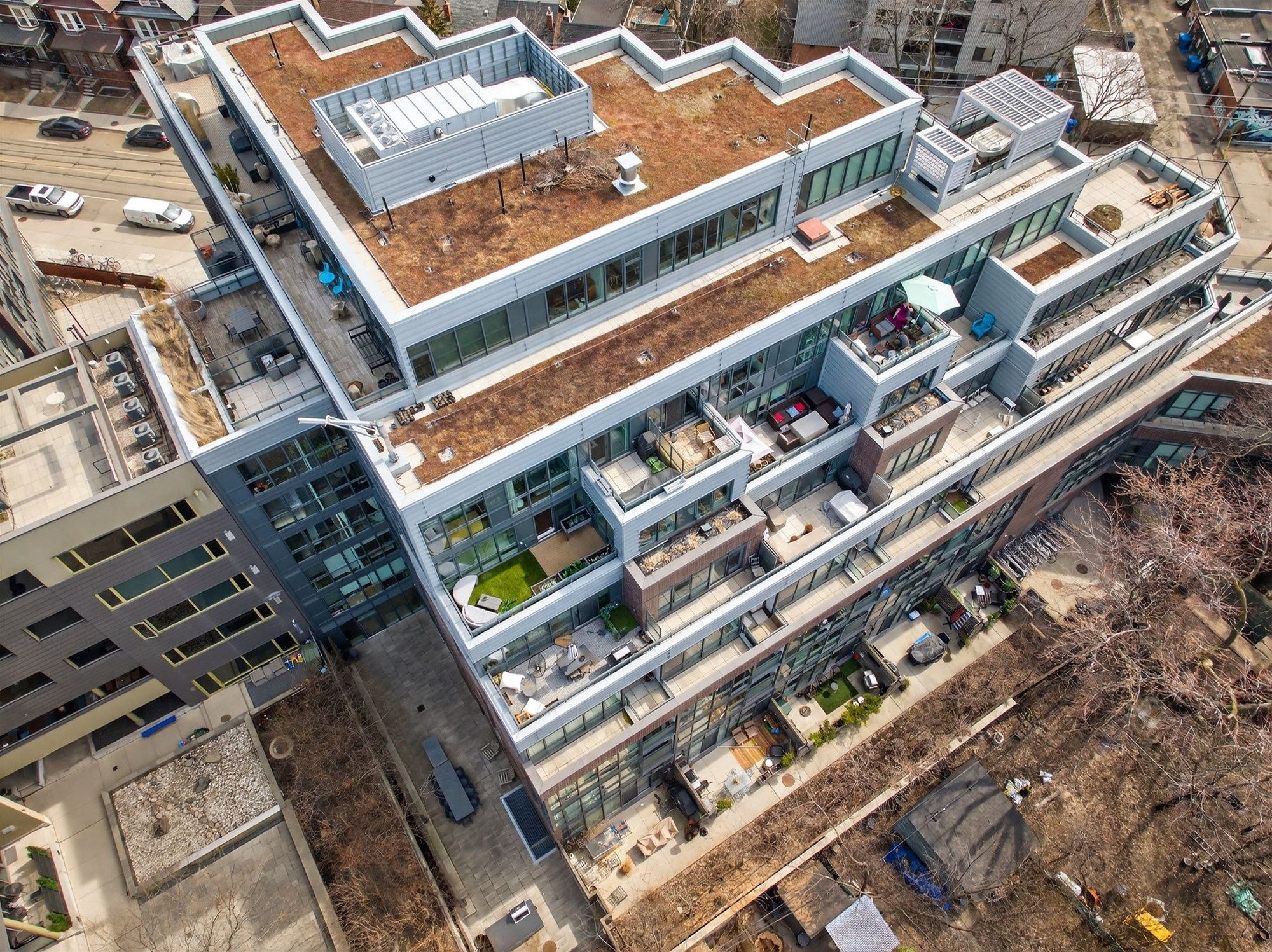 Here is the sweetest combination of space, light, great design, & an extraordinary outdoor terrace in roncesvalles! It's the beauty of a split bedroom corner suite overlooking the quiet backyards & courtyards behind howard park avenue. Originally conceived by the builder as a 2+1 bedroom with 2 ensuite bathrooms & a main area powder room, the layout was smartly reconfigured to convert the powder room into a large laundry & storage room (wisely freeing up front entry closet space from the original placement of the stacked laundry unit), and designing a semi-ensuite bathroom to the second bedroom with a swing door and pocket door for dual access. The flow of the condo is distinct throughout the living, dining & kitchen areas, creating space for each activity while being open concept enough that sight lines across the suite can be enjoyed. Unlike many modern condos, both of these bedrooms are graced with good proportions for real living, and give the privacy you want with swing doors, plus welcome access to operable windows & natural light. The kitchen benefits from a large island for storage, breakfast bar seating, and prep-space-with-a-view. The exceptional outdoor terrace with 216 sq. Ft. (as per builder floor plan) provides unparalleled views and an outside living space for anything from outdoor yoga or workouts to some serious gardening (excellent light & space for your own square foot urban farm!), to summer lounging or frequent bbq meals! And luckily, you'll find water, electrical & gas bbq hook-ups on the terrace to help with any or all of these pursuits. The building includes practical amenities, spread across the ground floor of both 36/38 howard park: yoga room, two party rooms with kitchen & outdoor seating/bbq area, pet spa, media/library room and gym. Outside of the suite itself, an owned parking space with an electric vehicle charger is fully operational, on the same level as an owned storage locker and two owned bicycle racks on the ground level.
