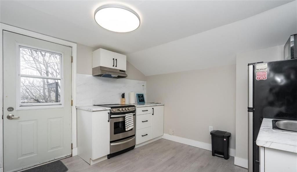 Exceptional opportunity in this newly renovated building! Unit 3 offers a spacious one-bedroom layout with bright, modern finishes. Heat and water are included in the rent, with hydro paid separately by the tenant. Street parking is available, and tenants can enjoy access to the shared backyard. Laundry is shared and is located in basement. Conveniently located just steps from victoria park, a nearby shopping mall, go station, and hwy 403, making it an ideal choice for tenants seeking comfort and easy access to amenities.