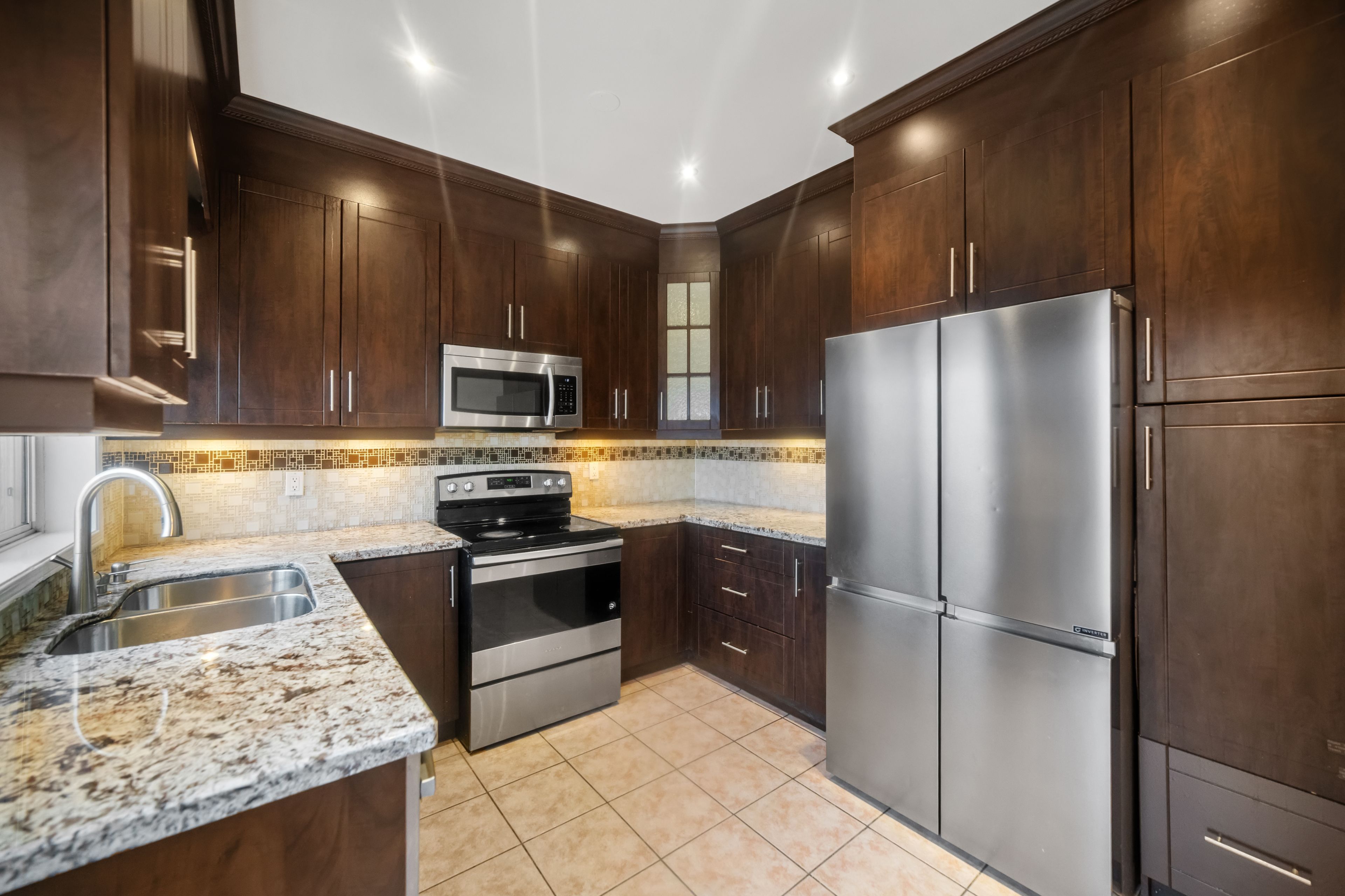 Fully renovated, bright, and spacious 3+1bedroom house, 3 full bathrooms and 1 half bath, ideal for families or professional tenants seeking comfort and space . The home features lots of windows, allowing abundant natural light throughout, along with modern pot lights that enhance the open and airy feel. The large, spacious kitchen is perfect for cooking and entertaining, offering ample counter and cabinet space. Enjoy outdoor living with access to a private deck, ideal for relaxing or hosting guests. Located in a quiet, street, near transit and place of worship....