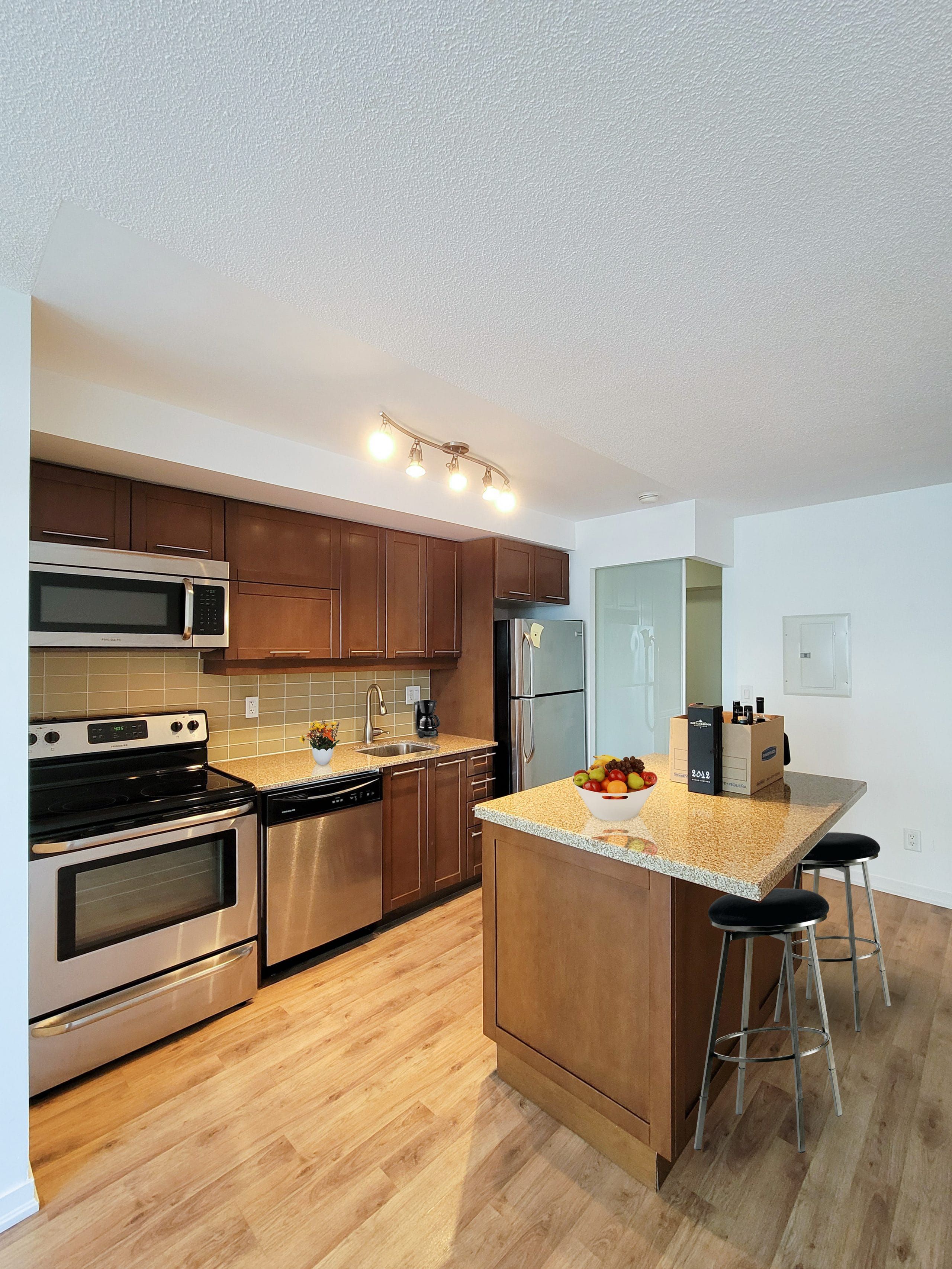 Great location and great layout with unobstructed view of cn tower from your large balcony. Steps to ttc. 10 minutes walk to go station. 15 minutes walk to waterfrontss fridge, ss stove, ss microwave, ss dishwasher, stacked washer/dryer, all existing electrical light fixtures, all existing window coverings, parking included! *for additional property details click the brochure icon below* ***landlord is a registered salesperson with reco.