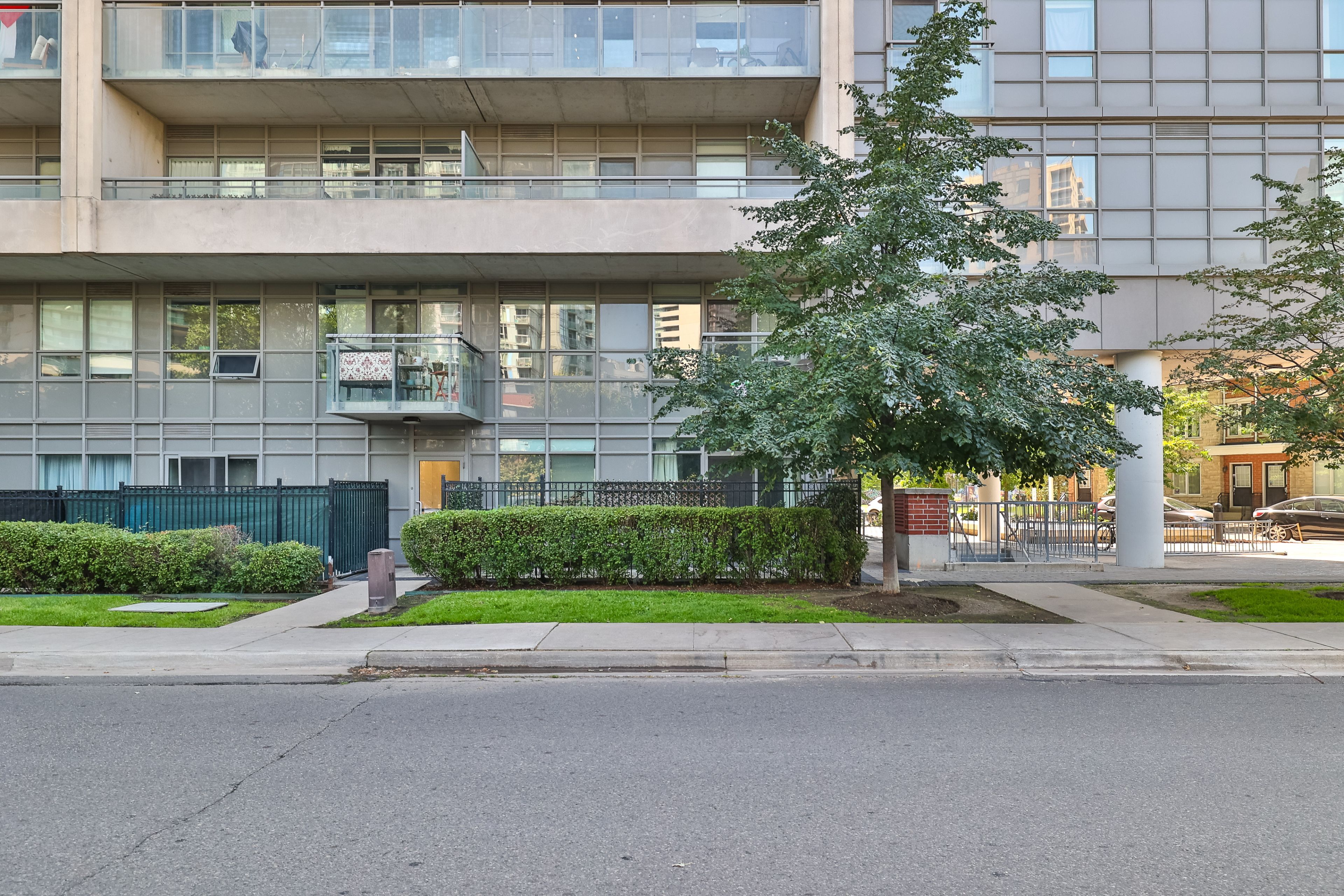 Think you can't afford downtown living? Think again! * downtown toronto city living under $450,000 with a parking spot and locker? Yes, you read that right! * this spacious 1-bedroom sits at the intersection of king wests chic nightlife, queen wests eclectic style, and liberty village's warm, community vibe * inside, the airy, open-concept layout features a sleek modern kitchen with granite countertops, stainless steel appliances, under-cabinet lighting, and a dining/living space designed for effortless entertaining- or skip the cooking with hundreds of foodie hotspots just steps away * the sun-filled primary bedroom boasts a full wall of closet space and a large window overlooking your private terrace, big enough for a full patio set + dining chairs * bonus: as a main-floor corner unit with only one neighbour, you'll enjoy unmatched privacy, no long elevator waits, and zero stairs to climb * the bridge condos offer city living with a neighbourhood feel * walk to large parks, trendy cafés, and bmo field, or hop on transit for quick access anywhere in the city * this well-managed building (under 15 years old) makes the perfect backdrop for your morning coffee, evening wine, and everything in between * at 585 sq ft, this lovingly maintained home blends style, comfort, and unbeatable value- especially under $450k!! It won't be a buyers market forever * get in now and start building your equity here for your future!