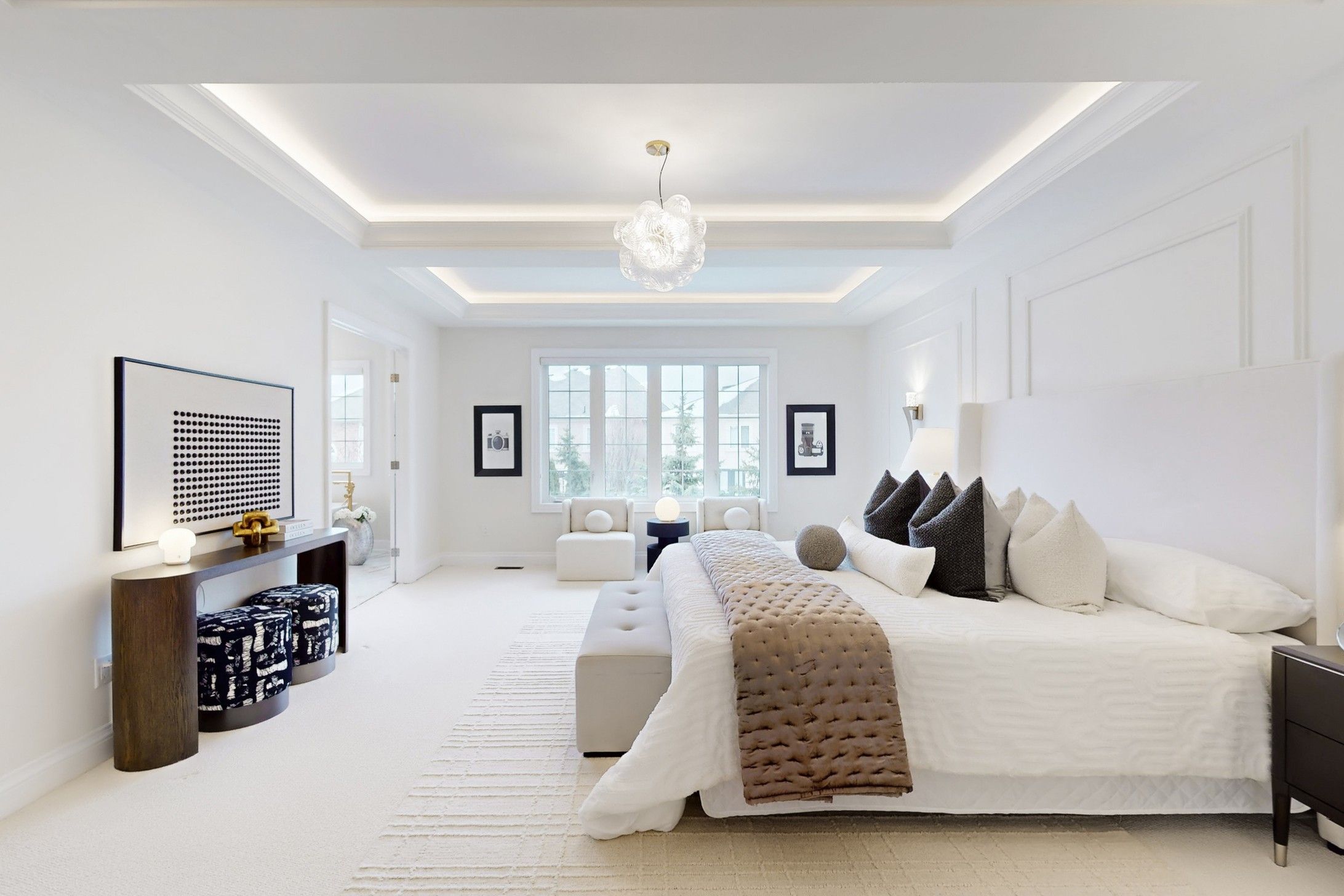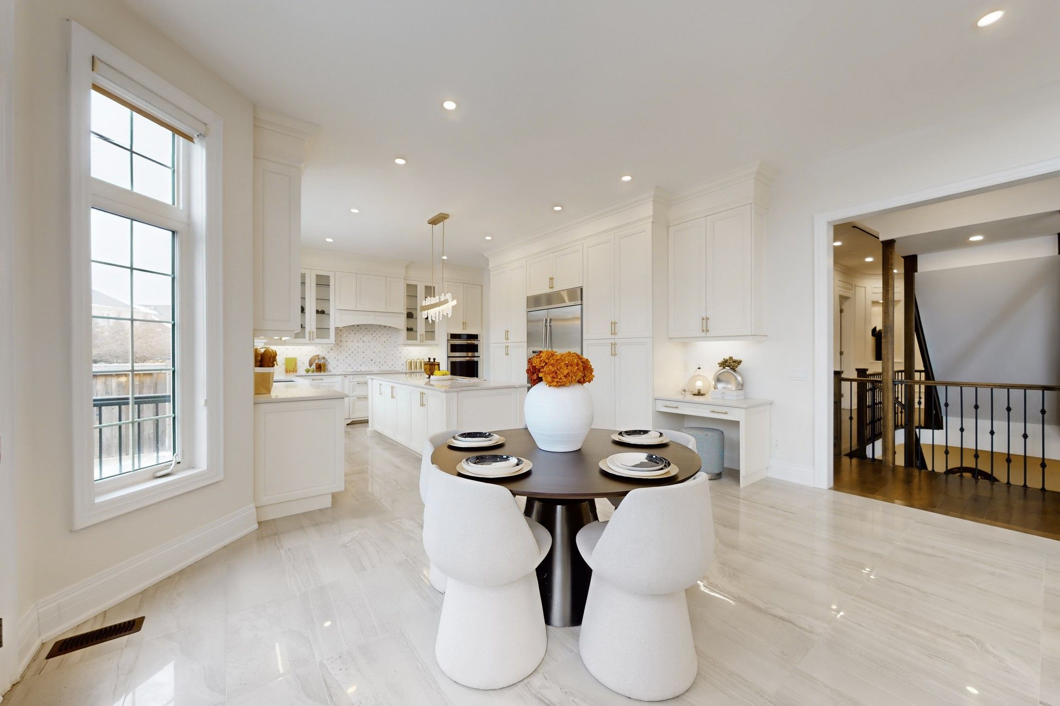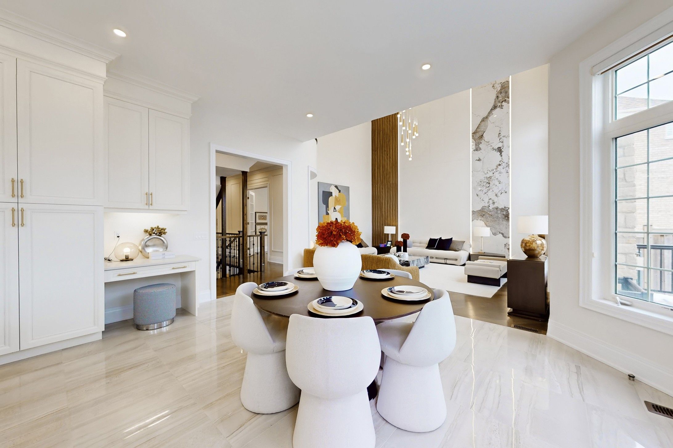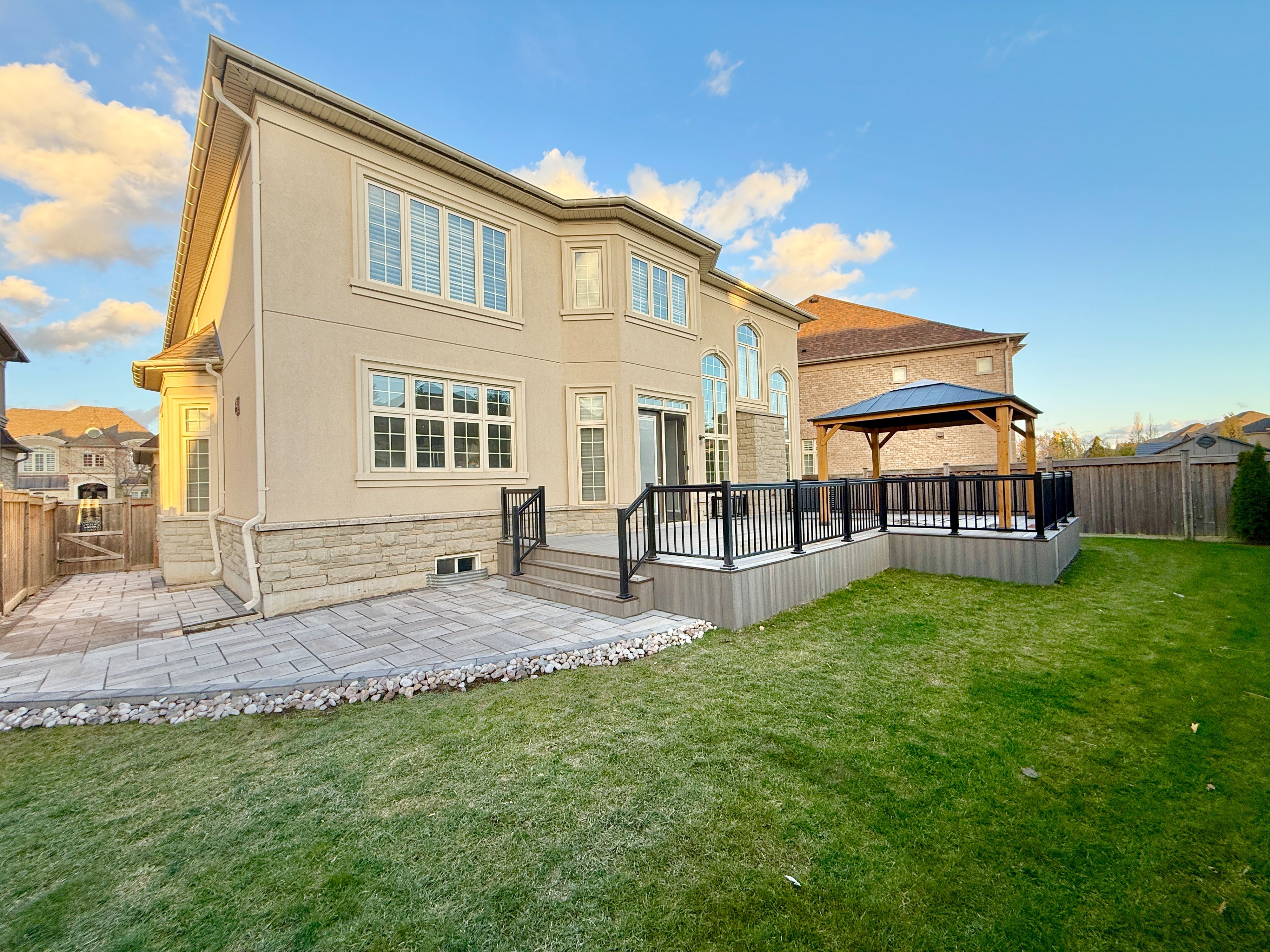 Luxurious 3-car garage home in prestigious "upper thornhill estates". Nestled on a child safe "cul-de-sac" . Stunning stucco & stone exterior with stone driveway accommodating up to 9 cars. Double 8' front door entry w/ stone covered porch. Open to above grand foyer with sintered stone flooring. 10' ceiling on main & 9' on the 2nd & bsmt. Over $500k upgrades: hardwood flooring, wainscotting/ wall panels & pot lights throughout. Elegant dining room with waffle ceiling & led wine display. Spectacular 2-storey family room with gas fireplace & led stone feature wall. Gourmet kitchen w/ extended cabinetry, canopy, moulding & valance lighting, large centre island, b/i appl, quartz countertops, backsplash & pantry. Spacious breakfast area with walk-out to deck. Main floor office with waffle ceiling and french doors. Oak staircase with iron pickets leads to an open upper hallway with modern lighting. All upper 5 bdrms feature ensuite bath & w/i closets. Gorgeous master w/led coffered ceiling, opulent 5pcs ensuite, large w/i closet & organizer. Quartz vanity top in all baths. Art gallery style basement landing. Main floor mud room w/ laundry & w/i closet & direct access to garage. Separate entrance to basement. Steps to trail. Close to parks & multiple golf courses, mins to go train station, supermarkets & shopping plaza. Easy access to hwy 404/400. High ranking "st. Theresa of lisieux catholic h. S "