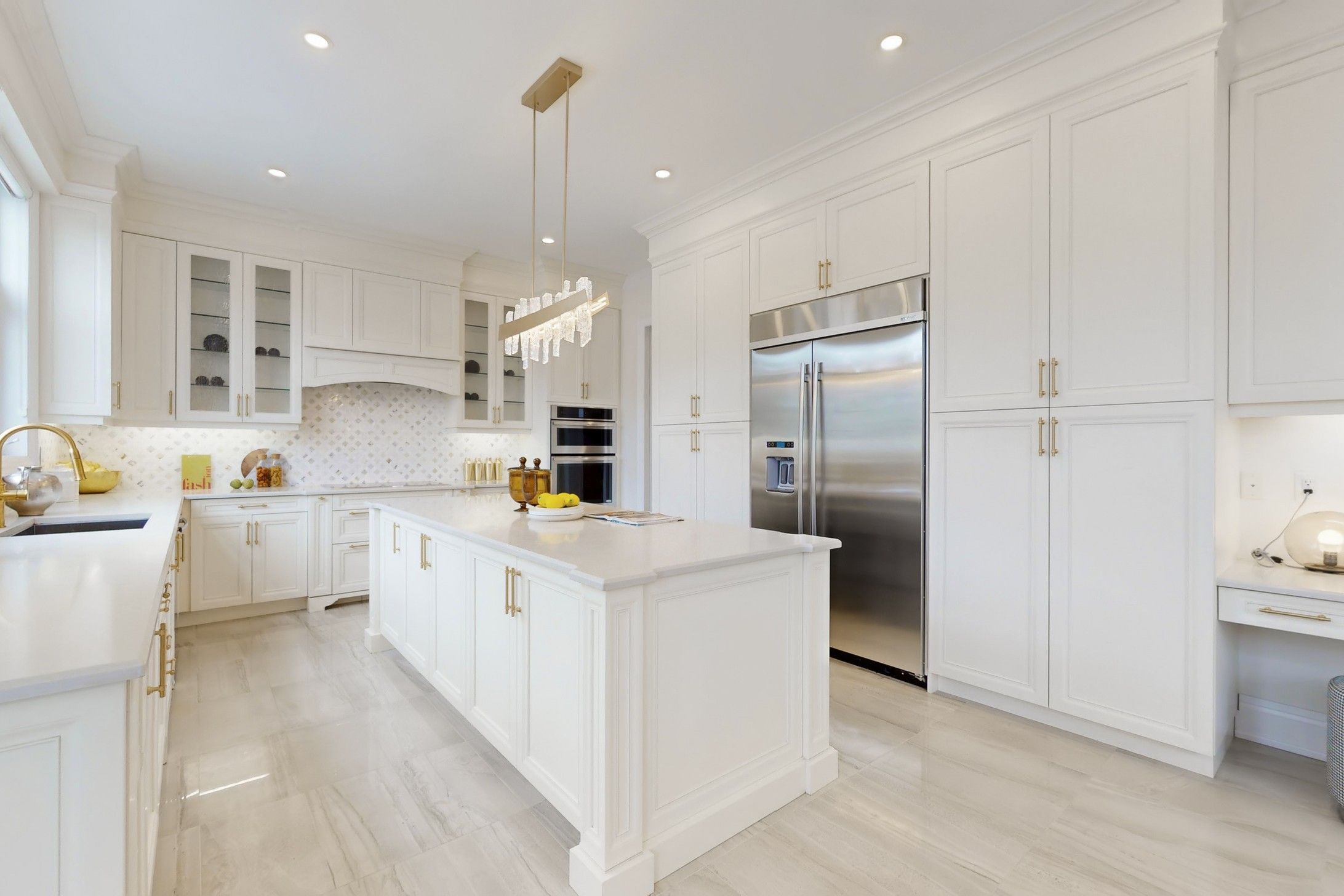 • Gourmet kitchen features quartz countertops, extended cabinetry, and a large island.
