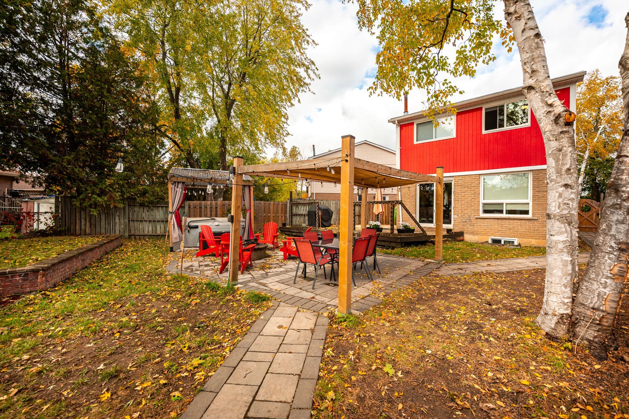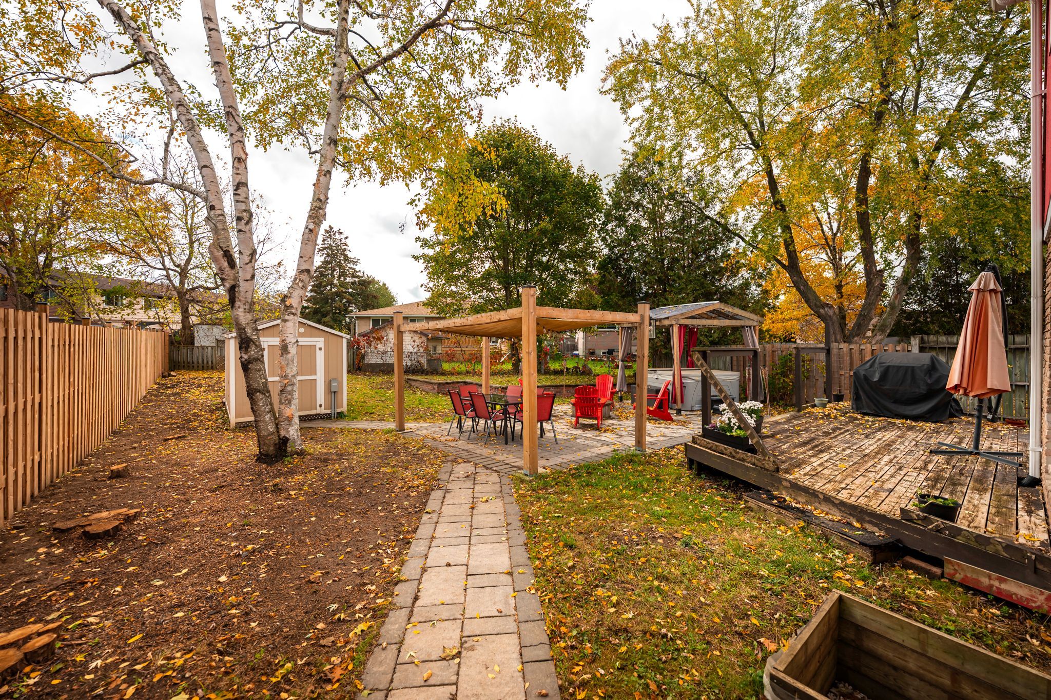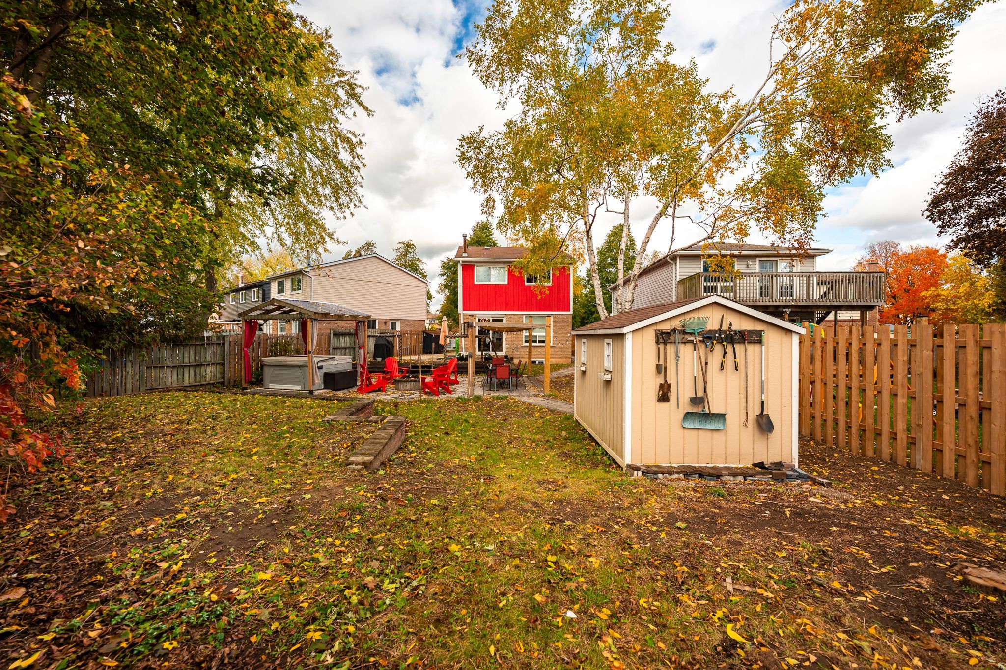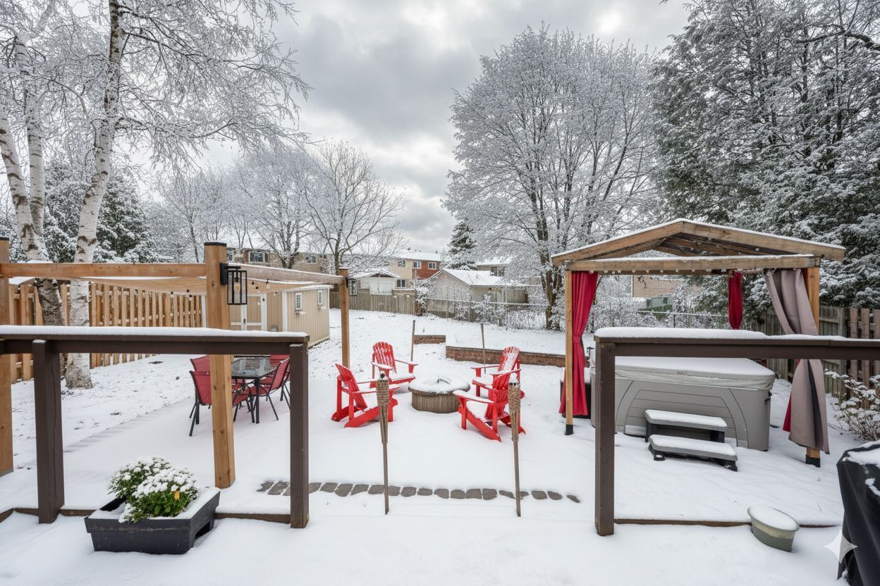 Welcome to 38 karen court, a well-maintained two storey home set on a quiet court in a family-oriented neighbourhood. The inviting front porch opens into a bright, well-organized foyer featuring a custom entryway bench with storage, offering a useful and stylish place to keep everyday items tucked away. The updated kitchen includes a breakfast bar and a walkout to the side yard, making daily routines simple and efficient. The open living and dining area provides an easy flow for both family life and entertaining, complemented by patio doors that lead out to a large back deck overlooking the spacious pie-shaped backyard. The upper level features 3 generous bedrooms and a refreshed 4 piece bathroom, giving the whole family comfortable and functional space. The fully finished lower level adds versatility with a rec room, laundry area, and a 4 piece bathroom-an ideal setup for movie nights, hobbies, a home office, or additional living space for older children or guests. The backyard truly elevates this property. The large deck is great for barbecuing and outdoor meals, while the expansive patio area includes two pergolas and a fire pit, creating a welcoming setting for year-round gatherings. A hot tub provides a relaxing retreat, and the fully fenced yard offers ample room for children and pets to enjoy. A powered shed with electrical adds even more convenience for storage, or projects. Thoughtfully improved and designed for comfortable living, this home offers space, versatility, and features that support every stage of family life.