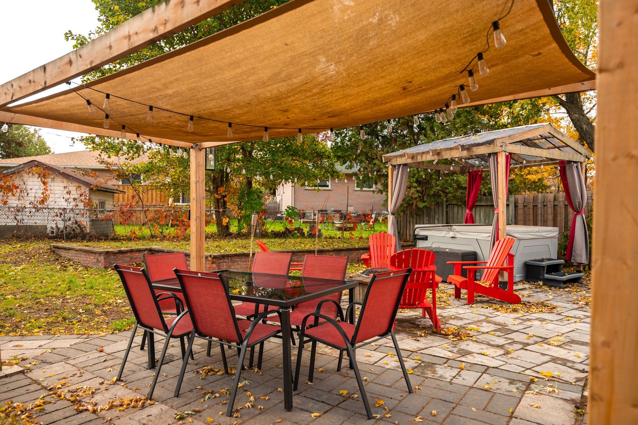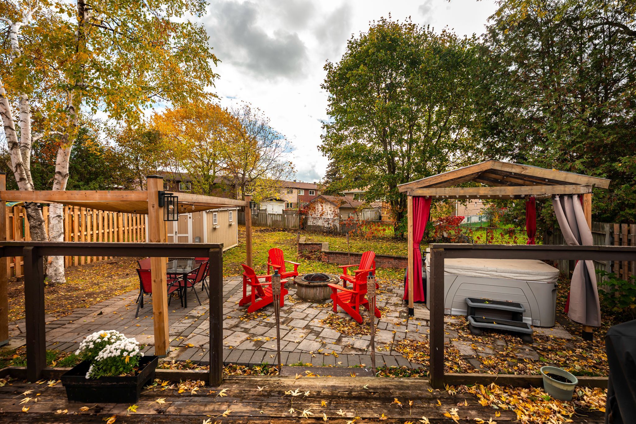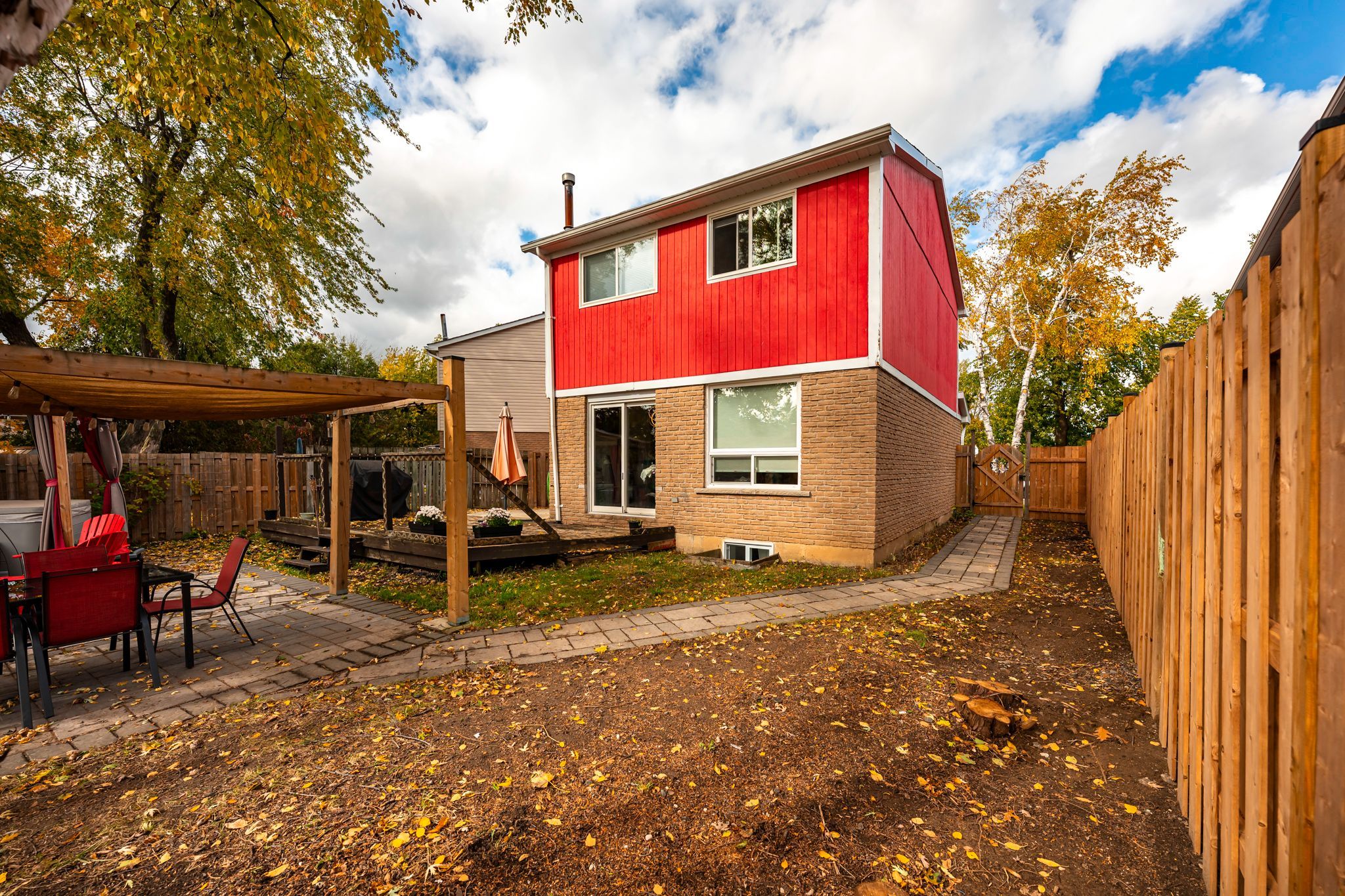 Welcome to 38 karen court, a well-maintained two storey home set on a quiet court in a family-oriented neighbourhood. The inviting front porch opens into a bright, well-organized foyer featuring a custom entryway bench with storage, offering a useful and stylish place to keep everyday items tucked away. The updated kitchen includes a breakfast bar and a walkout to the side yard, making daily routines simple and efficient. The open living and dining area provides an easy flow for both family life and entertaining, complemented by patio doors that lead out to a large back deck overlooking the spacious pie-shaped backyard. The upper level features 3 generous bedrooms and a refreshed 4 piece bathroom, giving the whole family comfortable and functional space. The fully finished lower level adds versatility with a rec room, laundry area, and a 4 piece bathroom-an ideal setup for movie nights, hobbies, a home office, or additional living space for older children or guests. The backyard truly elevates this property. The large deck is great for barbecuing and outdoor meals, while the expansive patio area includes two pergolas and a fire pit, creating a welcoming setting for year-round gatherings. A hot tub provides a relaxing retreat, and the fully fenced yard offers ample room for children and pets to enjoy. A powered shed with electrical adds even more convenience for storage, or projects. Thoughtfully improved and designed for comfortable living, this home offers space, versatility, and features that support every stage of family life.