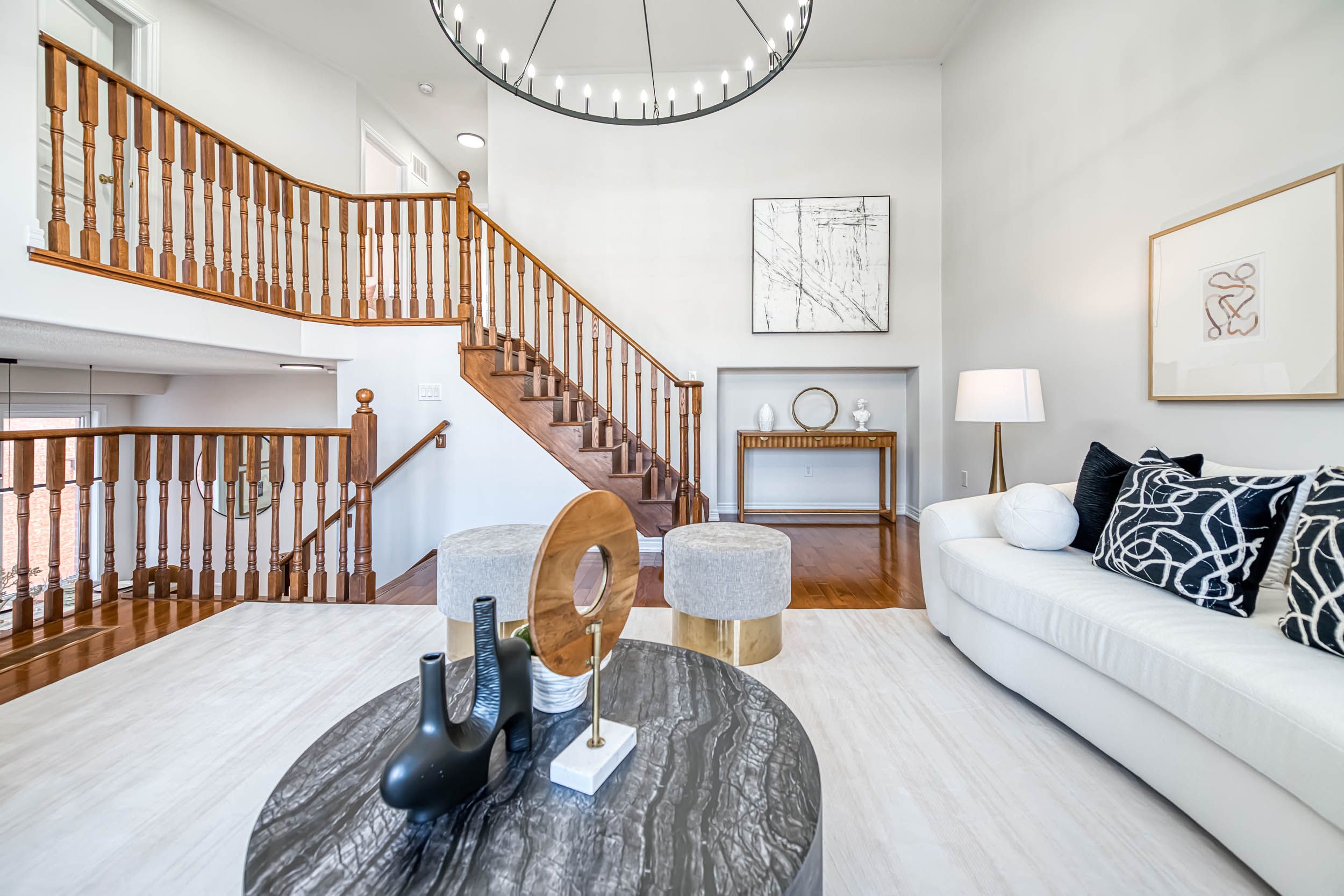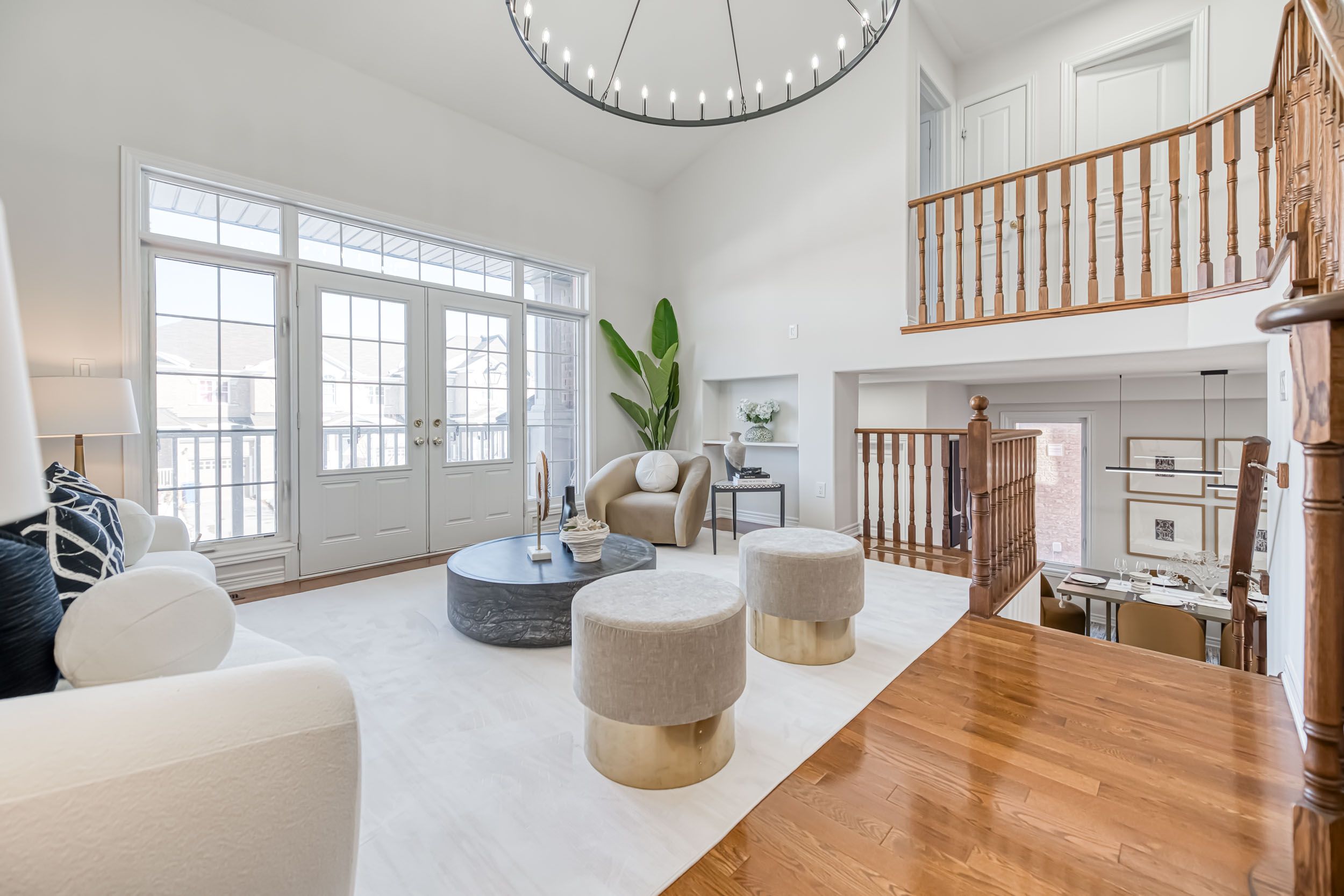 Bring an entertainer's dream here! Fronting on the south ,38 kellington tr is nestled in the highly desirable stouffville area, offering a bright and spacious living space with 4 bedrooms and 3 baths. This home features a functional & excellent layout, including 9' ceilings on the main floor, a magnificent 21-foot cathedral ceiling on in-between floor, creating an airy and expansive feel. Inside, double door entry & large foyer, a generously sized dining room. The gourmet kitchen boasts stainless steel appliances, a large center island, a enjoyable breakfast area, stepping out to the beautiful backyard, a serene oasis ideal for outdoor gatherings. The kitchen seamlessly flows into the open-concept family room which features a decent gas fireplace, which is perfect for entertaining guests or enjoying family time. The 21 ft fascinating great room drags amble natural light from a large double door, leading to a walk-out balcony where you can enjoy your morning coffee there. You'll find four generously sized bedrooms, each offering comfort, privacy, & a functional layout. The primary bedroom has a 4-piece ensuite & a large closet. Large windows, hardwood floors throughout on main & comfortable capet on 2nd floors, a convenient main floor laundry, direct entry from garage, natural light floods every corner of this sun-filled home. Fully fenced backyard quiet neighborhood, minutes to park, store, school, highway!