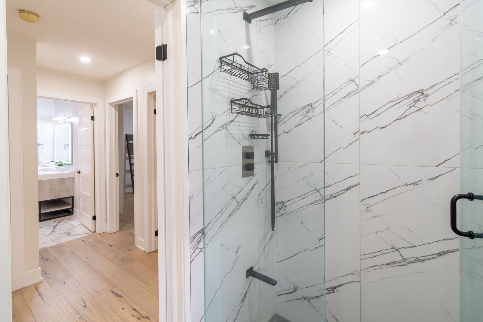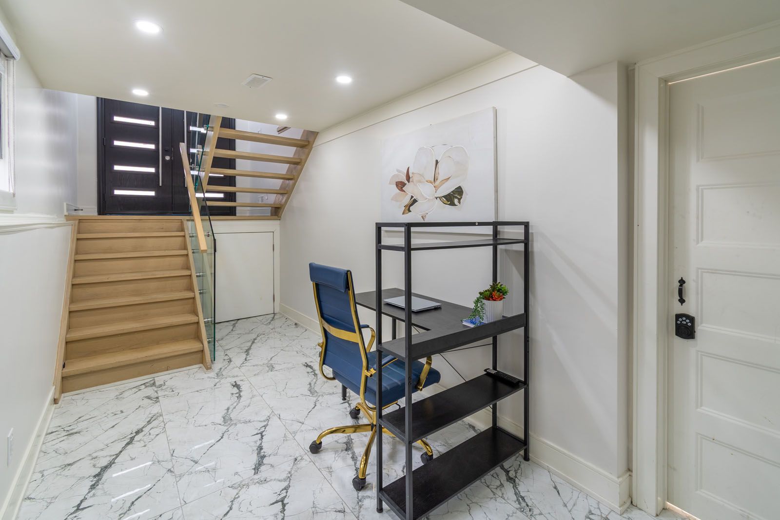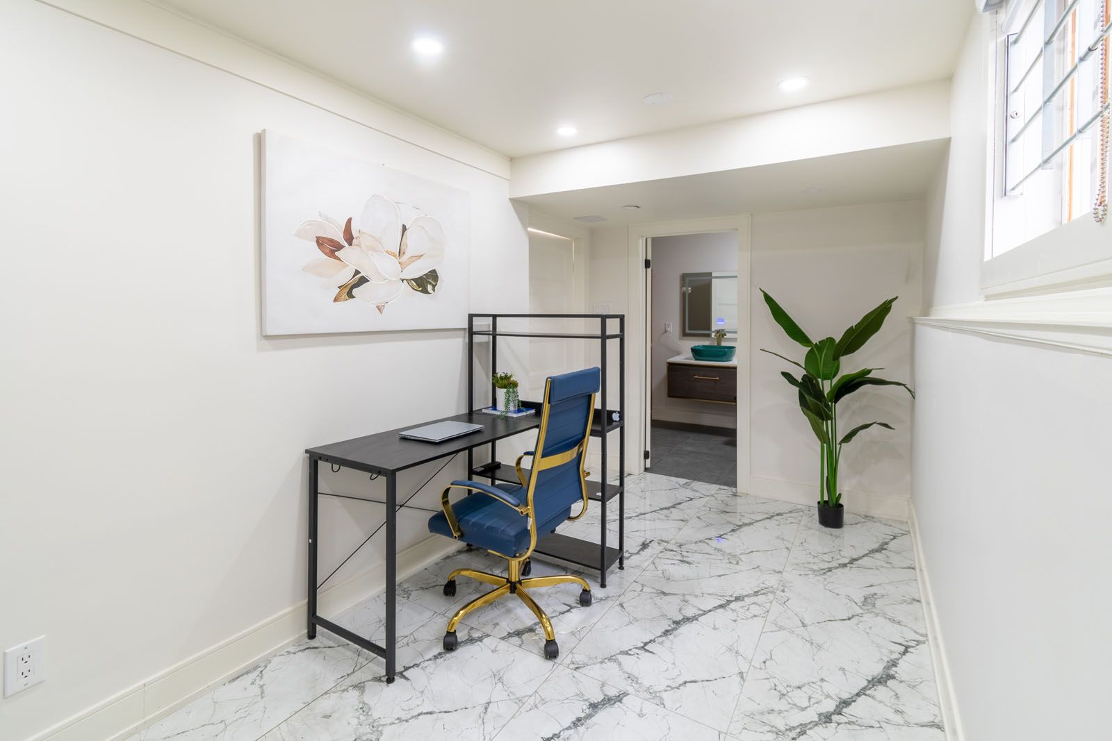 • Finished lower level with office space and spa-inspired bathroom.