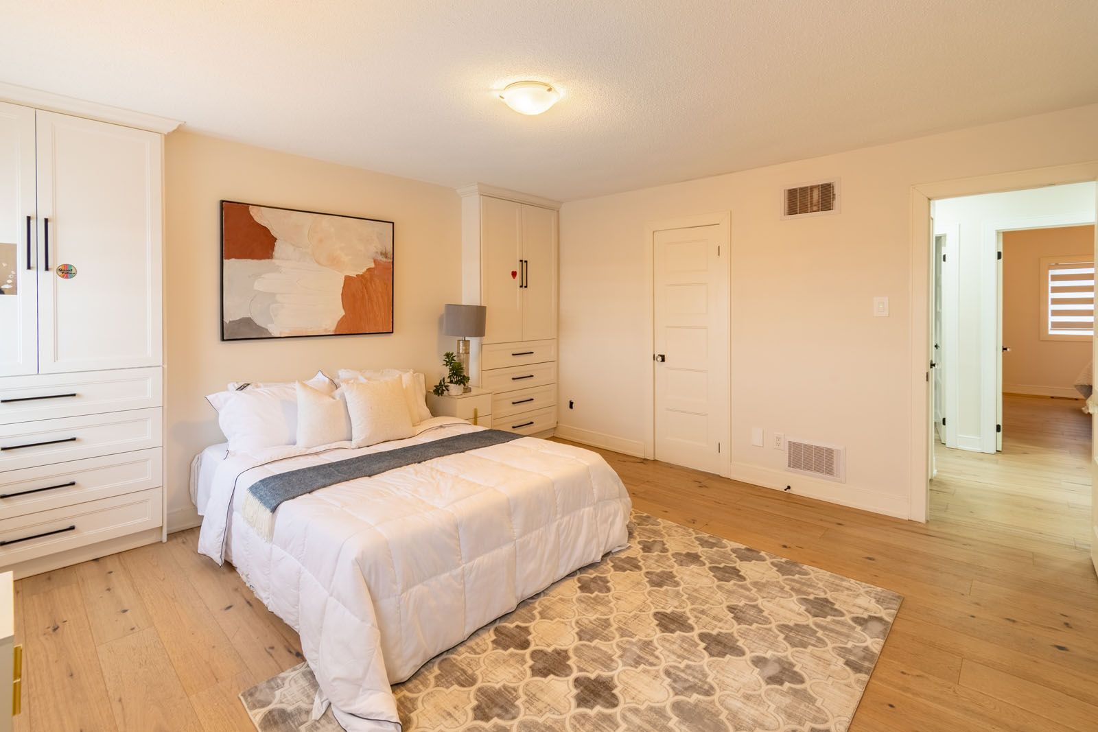 • Three bedrooms, including a spacious primary suite with a walk-in closet.