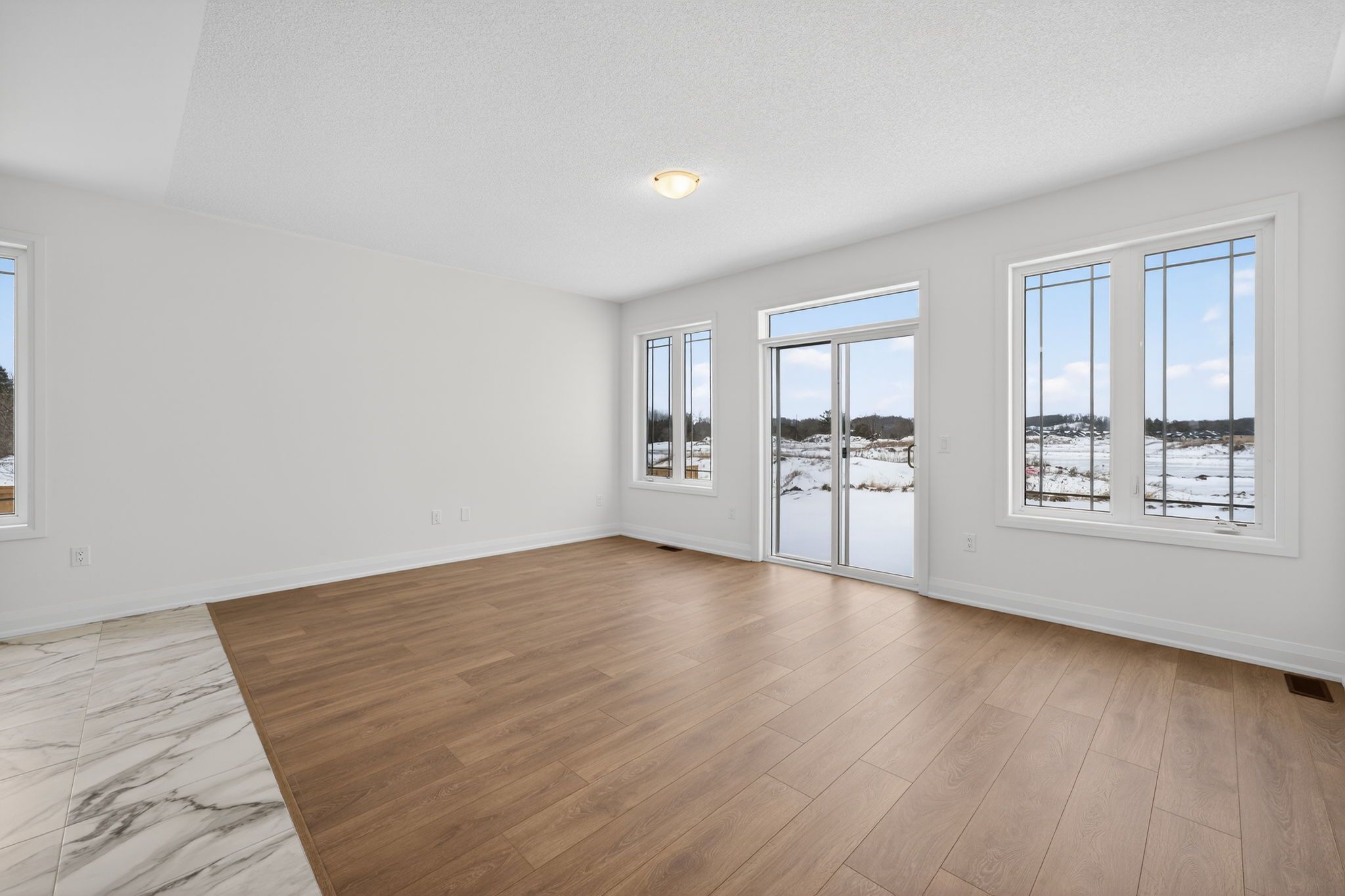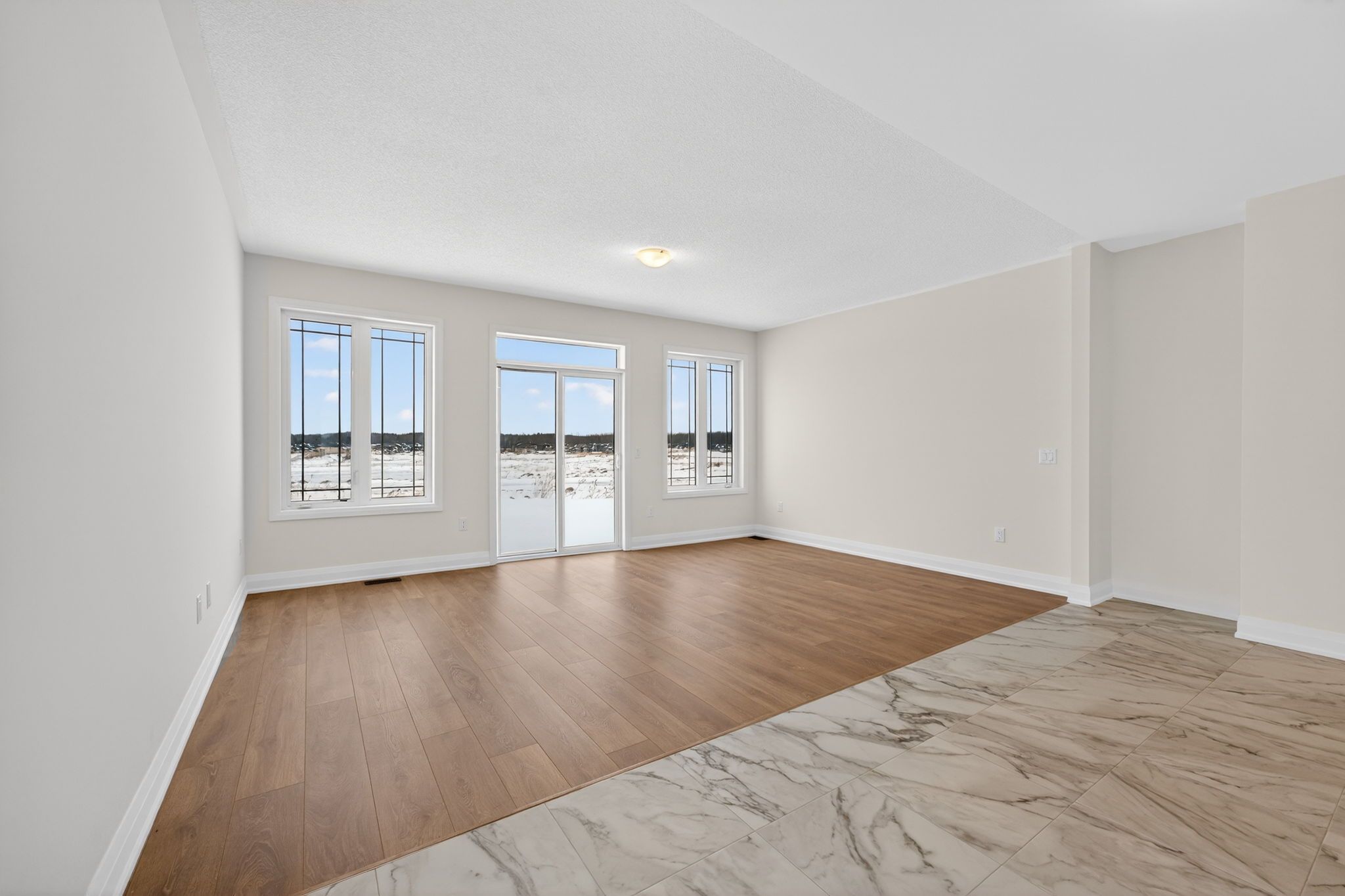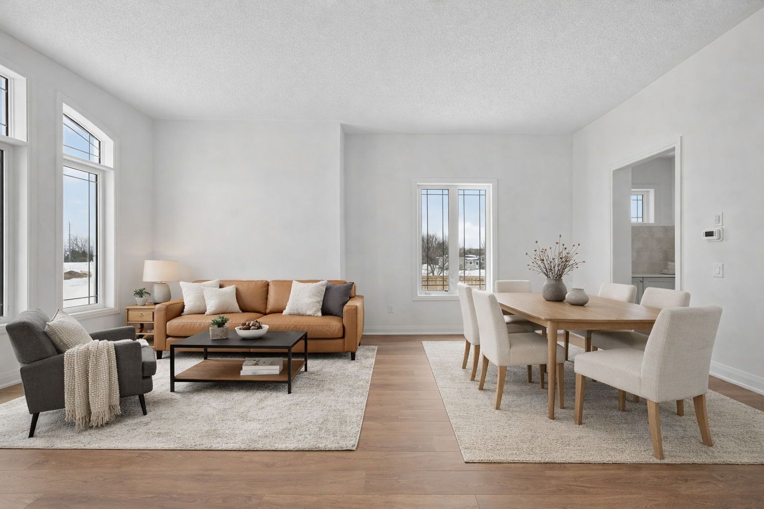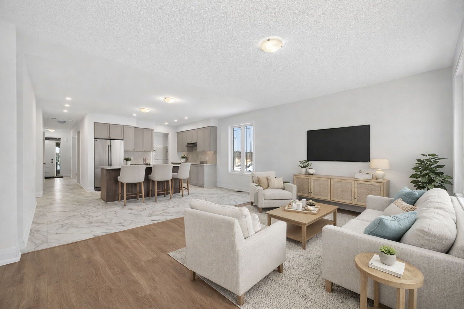 • Modern bungalow with an open-concept design and abundant natural light.