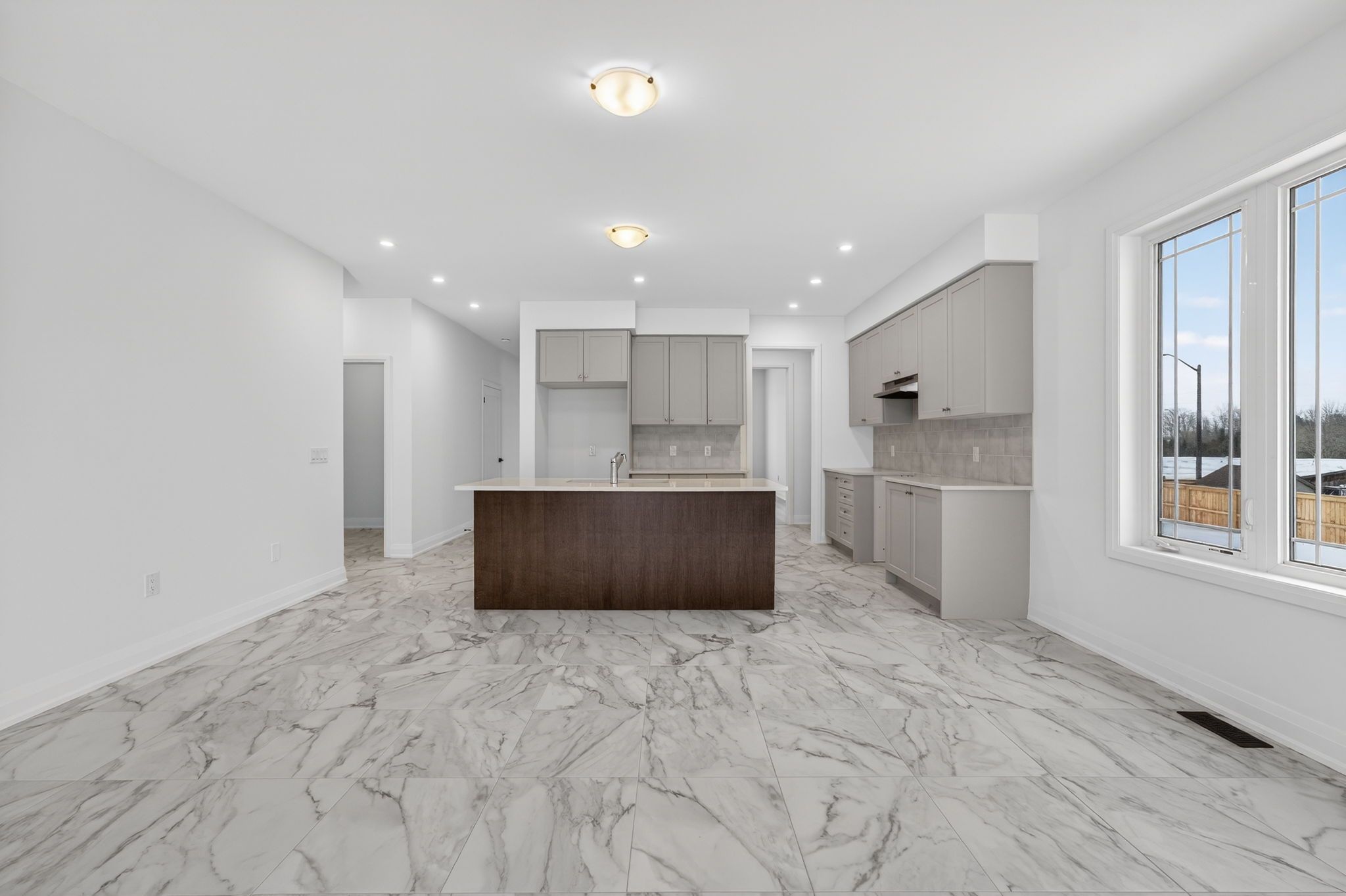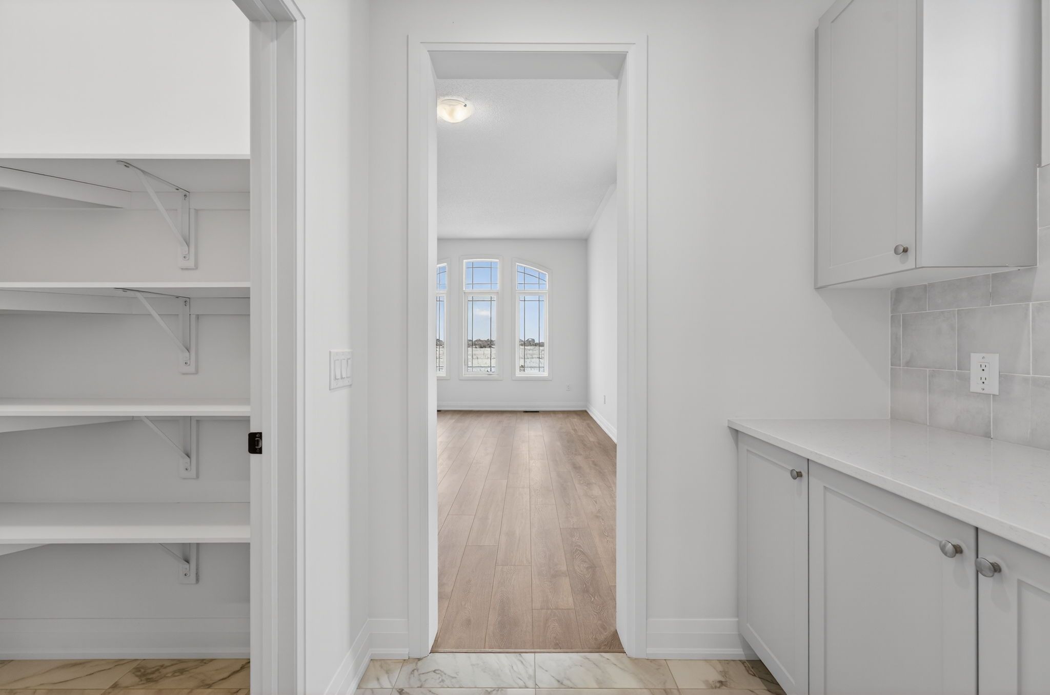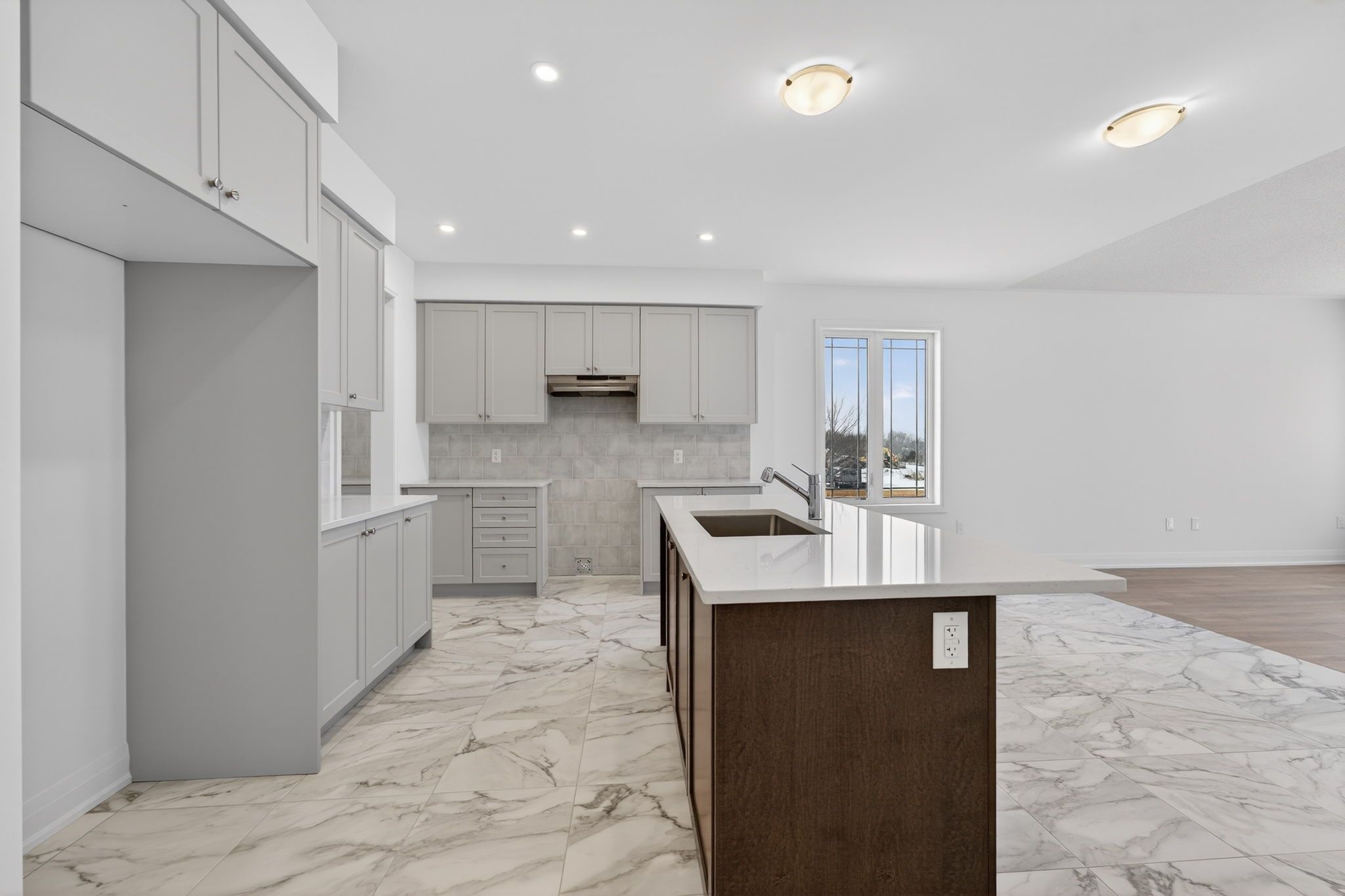 Step into modern elegance with this sun-drenched, never-lived-in 1,966 sq. Ft. (builder's plan) bungalow home! This property is a masterclass in contemporary style, boasting a bright open-concept layout where massive windows flood every corner with natural light. The chef-inspired kitchen is an entertainer's dream, featuring a dedicated servery and a spacious walk-in pantry-the perfect footprint for a custom coffee bar or wine station-complete with stone countertops, enhanced cabinetry, deep upper cabinets above the fridge, a sleek undermount rectangular sink, and a stylish backsplash carried through both the kitchen and servery. The main floor is finished with upgraded tile flooring and pot lights in the kitchen, adding both warmth and functionality to the space. Retreat to the private primary suite, highlighted by sophisticated tray ceilings and a spa-like ensuite featuring a double sink vanity, upgraded cabinetry, and an enhanced soaker tub. The main bathroom is also finished with upgraded cabinetry, completing the home with thoughtful, elevated details throughout. Nestled in a premier master-planned hub with a school already built, you'll enjoy future amenities including scenic trails, shops, and vibrant parks. Experience the perfect blend of luxury and community, all just minutes from the world-famous beach! With a 2-car garage and sitting on an oversized lot, this home is ready for its very first owners. Some photos have been virtually staged for illustrative purposes only.