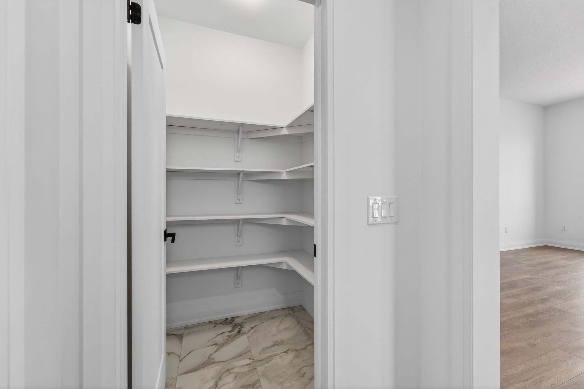 • Chef-inspired kitchen with stone countertops and spacious walk-in pantry.