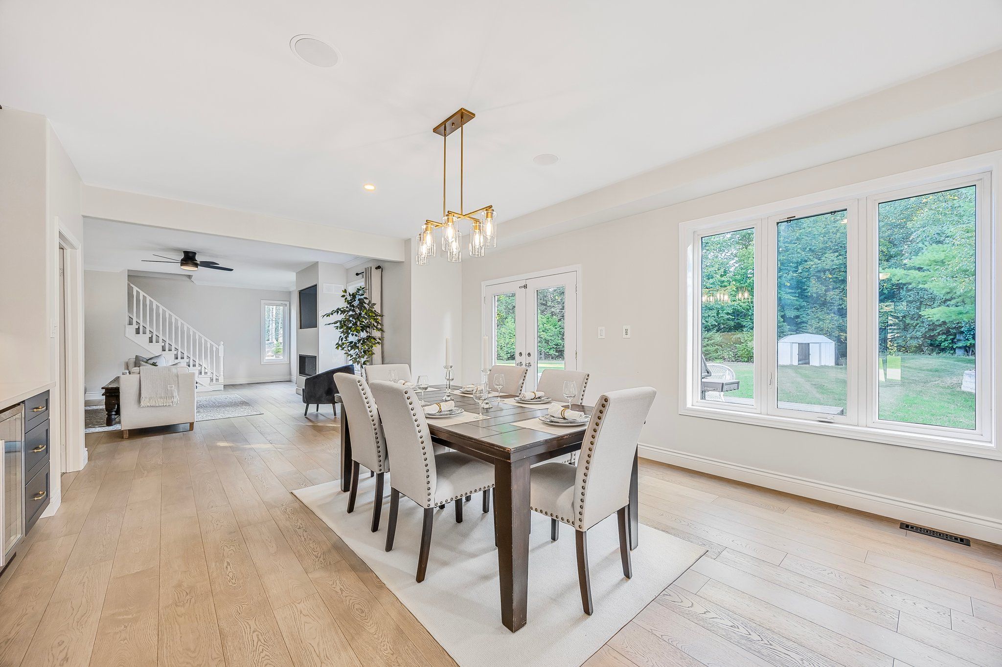 Stately midhurst home situated on a quiet cul de sac with a huge private backyard, backing onto willow creek and conservation area. Your dream home is here with a view of nature and wildlife where the deer roam freely and fish can be caught. This home has been meticulously designed with great attention to detail with over 5000 sf of living space. The kitchen features gorgeous marbled white quartz countertops, custom cabinets with a custom hood range, a 48'' gas range, and beautiful breakfast bar. There is a large kitchen eating area that has a custom built wet bar with a built -in fridge. There is also a formal dining room. The open concept family room features a gas fireplace and built-in flat screen. The mudroom is conveniently located off the 3 car heated (natural gas) garage. There is also a main floor office. There are two sets of stairways up to the second floor. There are 3 bedrooms. The primary suite is very spacious with a 4pc master bathroom and a massive walk in closet. There is a bonus room above the garage that must be seen to appreciate the size. There is also a second floor laundry. The fully finished basement features 2 bedrooms ,a full bath with heated floors and a large rec room. There is a private entrance to the basement for an inlaw suite potential. **this home has been extensively renovated throughout. New kitchen, bathroom, laundry room, mudroom, wet bar. Hardwood floors,9' ceiling, carpet, freshly painted throughout, a massive walk-in closet, epoxy floor and gas heater in the garage and a hot tub. Shows amazing!!