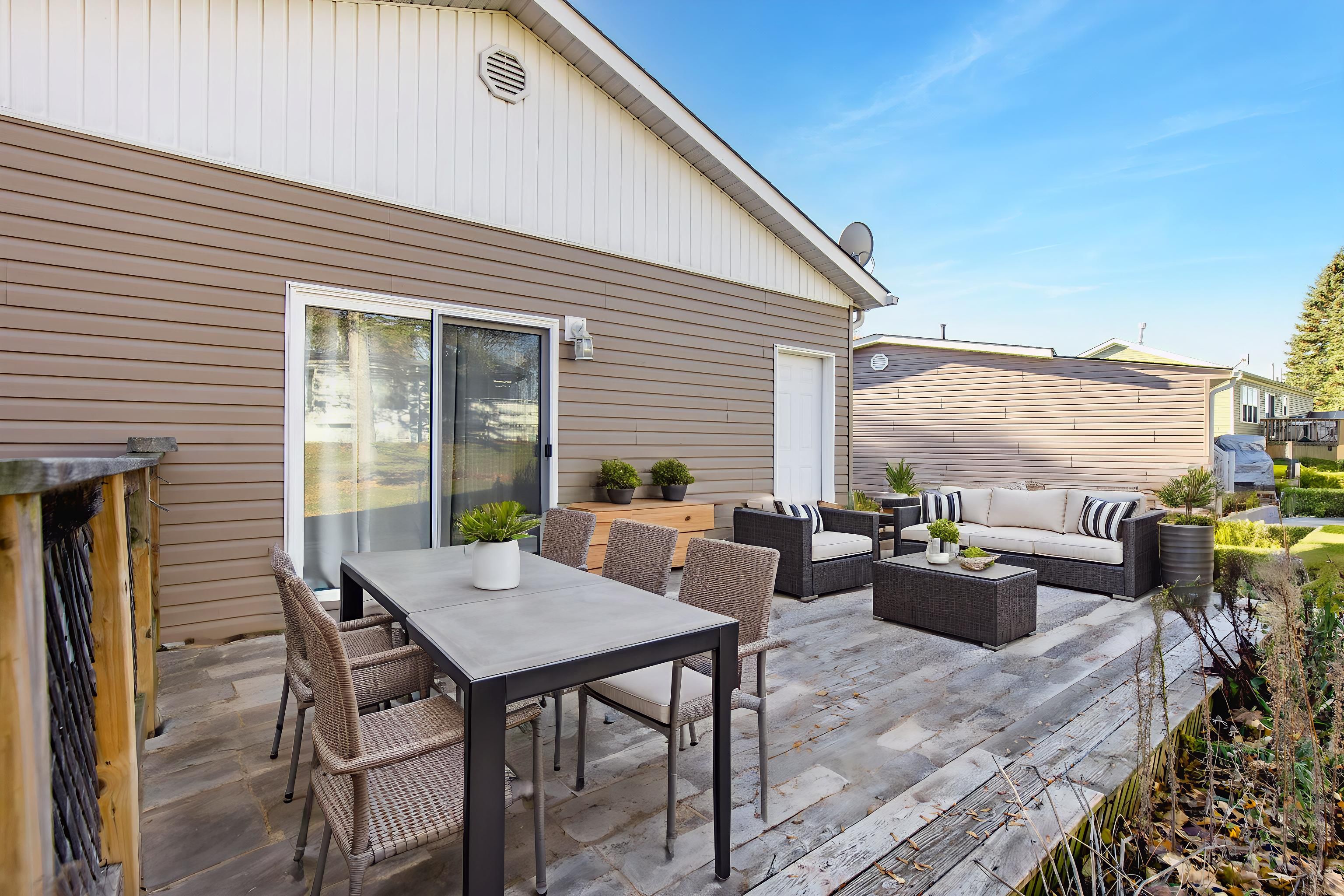 Are you looking to downsize and start living easy and stress-free? This move-in-ready 2-bedroom, 2-bathroom home in sandy cove acres offers comfortable, low-maintenance living in one of innisfil's most desirable retirement communities. The open-concept layout combines the kitchen, dining area, and living room under a cathedral ceiling, creating a bright and welcoming space. Both bathrooms and the kitchen feature heated floors for added comfort. The home also includes a full-footprint crawlspace that is fully insulated and approximately five feet high, providing exceptional storage and easy mobility. Residents enjoy access to outstanding community amenities, including two heated pools, shuffleboard and pickleball courts, three separate clubhouses, a library, an exercise facility and much more. The location is ideal, offering quick access to lake simcoe, innisfil beach park, barrie's shopping and amenities, and the barrie go station for easy transit. The property also includes two dedicated parking spots. This well-maintained home is perfect for those seeking a peaceful, active lifestyle in a friendly and vibrant community.