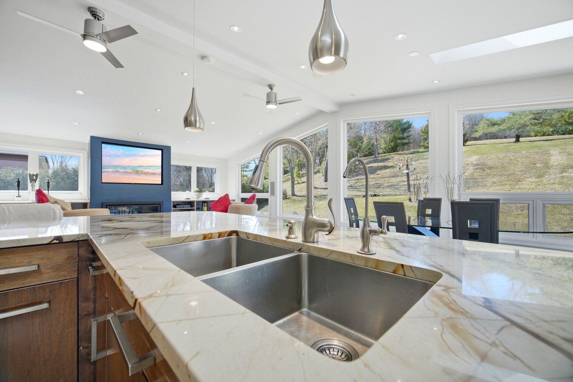 Stunning 3+1 bed, 4 bath home on 1. 13 acres in the heart of caledon east. Approx 4,400 sq ft of finished living space on a rare 100 ft wide lot surrounded by mature trees & total privacy. Truly a one-of-a-kind home featuring a massive 22x32 ft rear addition (2016) with full basement below, 9 ft ceilings & no support pillars. An extremely rare open-concept design perfect for large gatherings & family living. Entertainer's dream backyard with 16x24 ft heated pool, expansive maintenance-free composite deck, covered lounge area, hot tub, interlock patio, fire pit & natural gas bbq hookup. Scenic elevated views, walking trails behind & complete privacy create a cottage-like setting in the city. Custom maple kitchen w/ exotic brazilian countertops, breakfast bar, jennair & bosch appliances, gas range, pantry, coffee station, under cabinet lighting & extensive built-in storage. Walk-out breakfast area w/ 9 ft sliding door overlooking pool & deck. Spectacular great room w/ floor-to-ceiling panoramic windows, built-ins, linear gas fireplace, 7. 1 surround sound & 65" tv nook. Separate living, dining & private office w/ modern glass doors. Main floor laundry w/ garage access. One bedroom in-law suite w/ separate entrance, full kitchen, living area & large windows - ideal for multi-generational living or nanny suite. Extensive updates: 22' x 32' addition (2016) roof (2019), furnace (2019), bathrooms (2016), basement (2019), front windows (2025), soffit/eaves (2025), pool heater/filter (2025), ro & water softener (2026), fresh designer paint (2025), lighting & trim updates throughout. 100 ft frontage, 100 ft driveway, double garage, 200 amp service, whole home surge protection, security cameras, network wiring & smart features. Located minutes to top schools, parks & amenities in one of caledon east's most desirable family communities. A rare opportunity to own a true lifestyle property combining space, privacy, luxury & functionality - homes like this rarely come available.