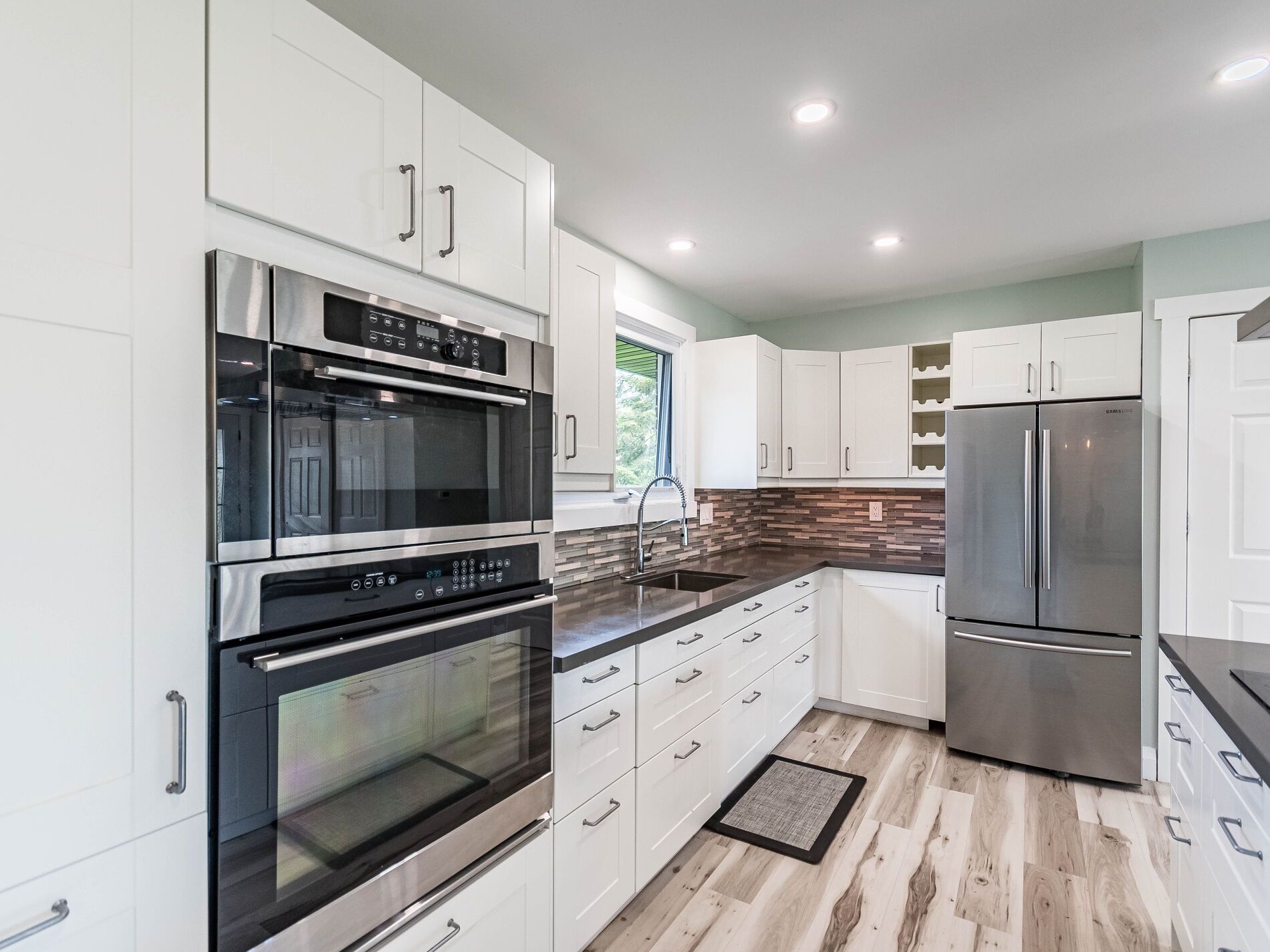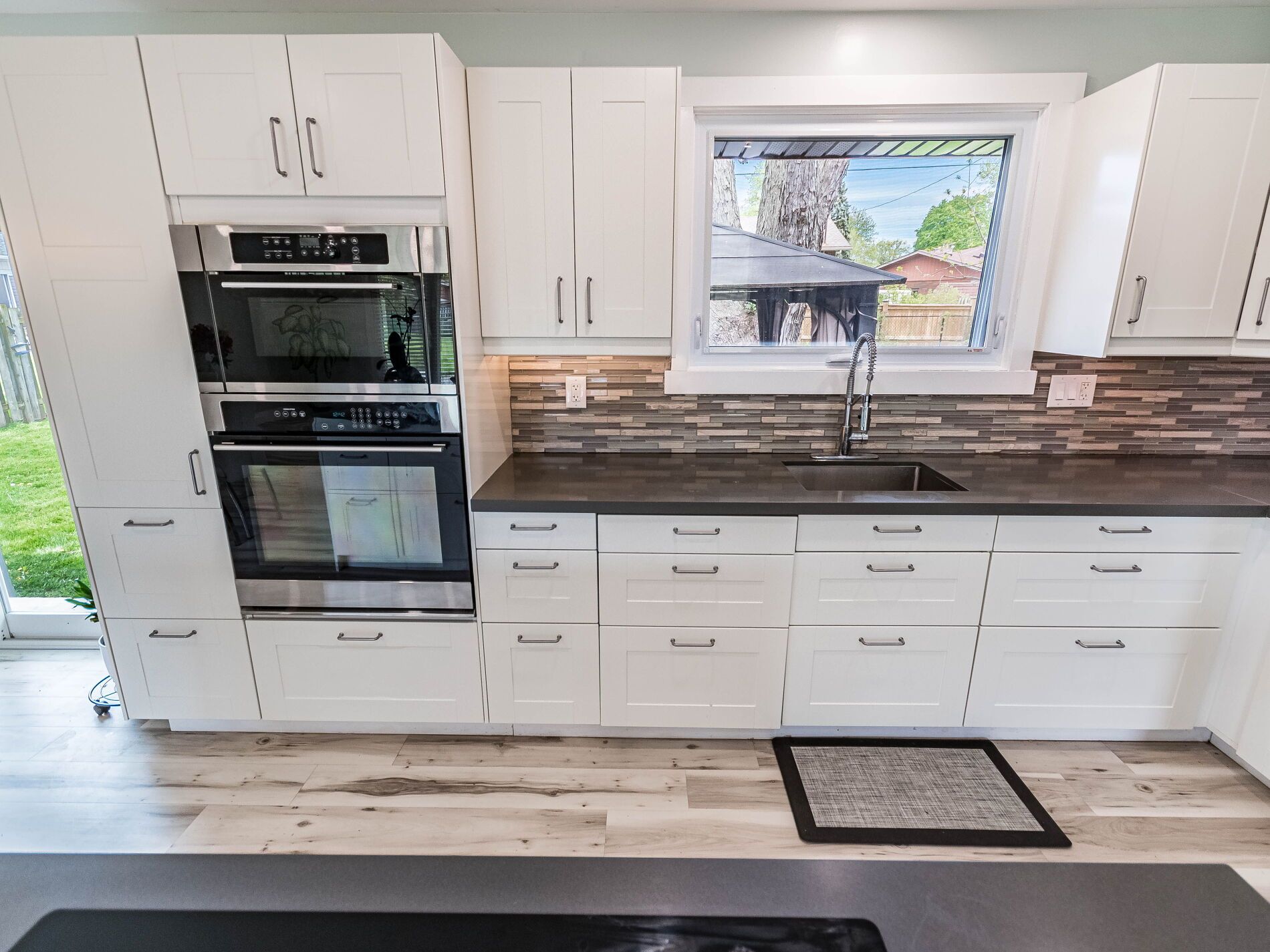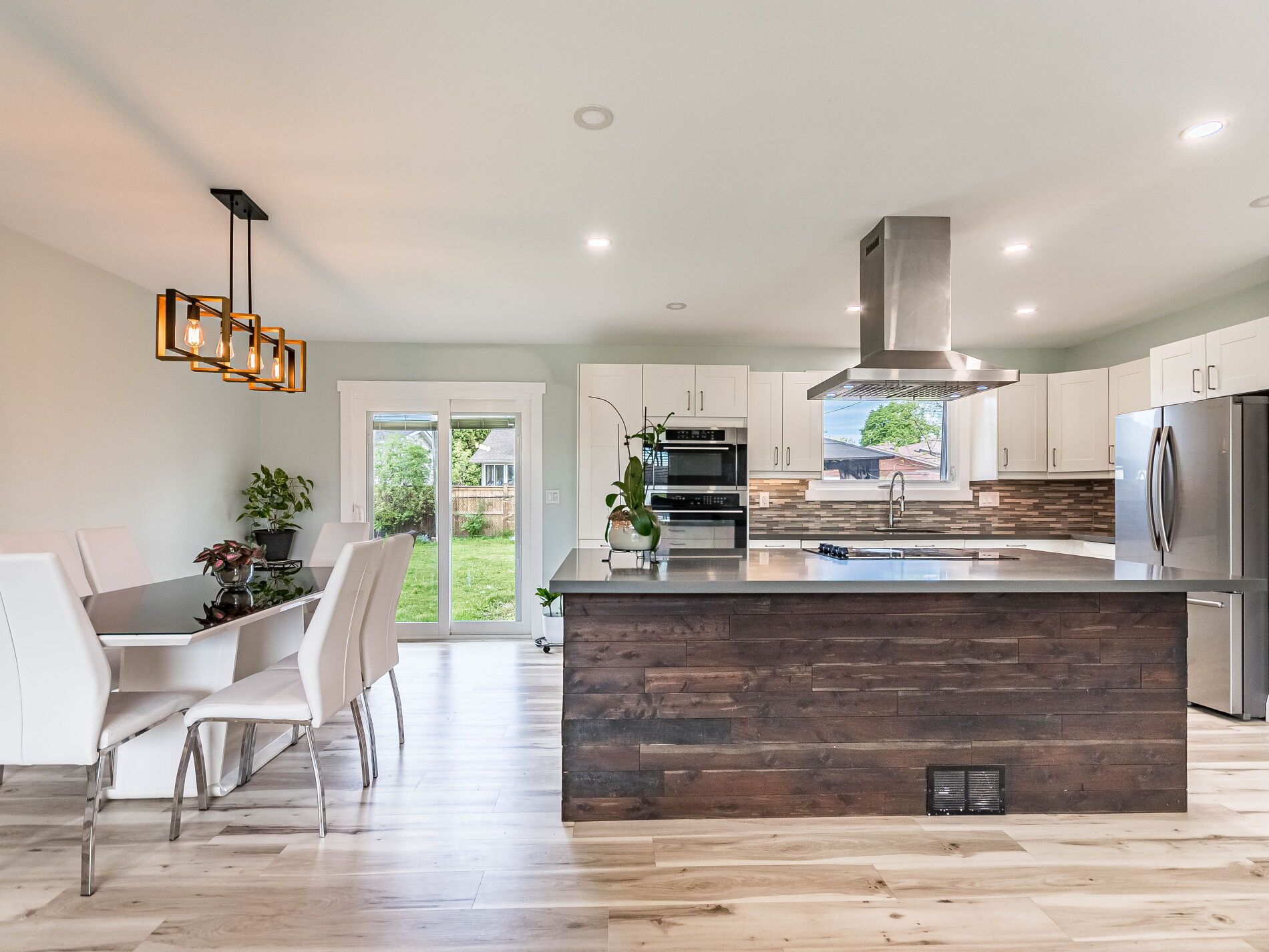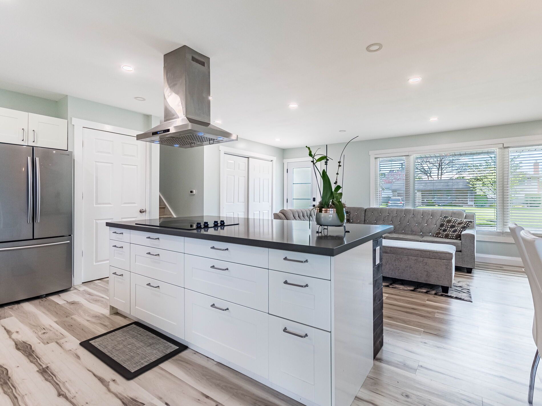 Upgraded, bright and beautiful detached home located in a family friendly neighborhood, 4 levels of living space, this family home offers an open concept main floor with living room, dining, fully upgraded eat-in kitchen featuring a large island with quartz countertop, white cabinets, built in s/s appliances, 3+1 bedrooms, 2. 5 bathrooms. There is a separate entrance from the lower level with a walk up to the backyard completed with bedroom and a warm inviting family room, fourth level offers a big rec room, five piece washroom and kitchenette, updates done over past few years including shingles in 2017, concrete driveway in 2021, patio doors in dining area 2019, front door and garage door 2021, soffits, facia and eaves-troughs 2019, kitchen 2019, very modern front porch to enjoy morning coffee or after dinner drinks, updated insulation 2019, newer windows. Huge fully fenced backyard for entertainment, located on a mature tree-lined street in west welland near maple park. Basement apartment, walk-up