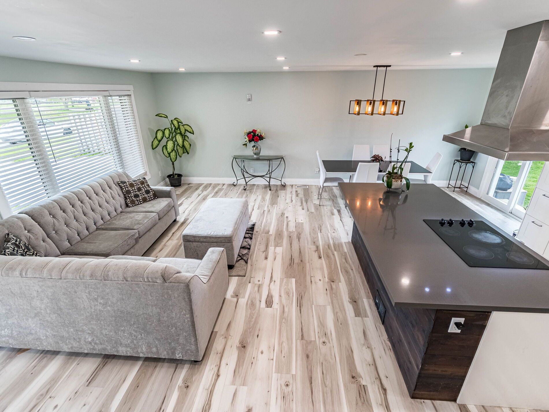 • Open concept main floor with a spacious living room, dining area, and kitchen.