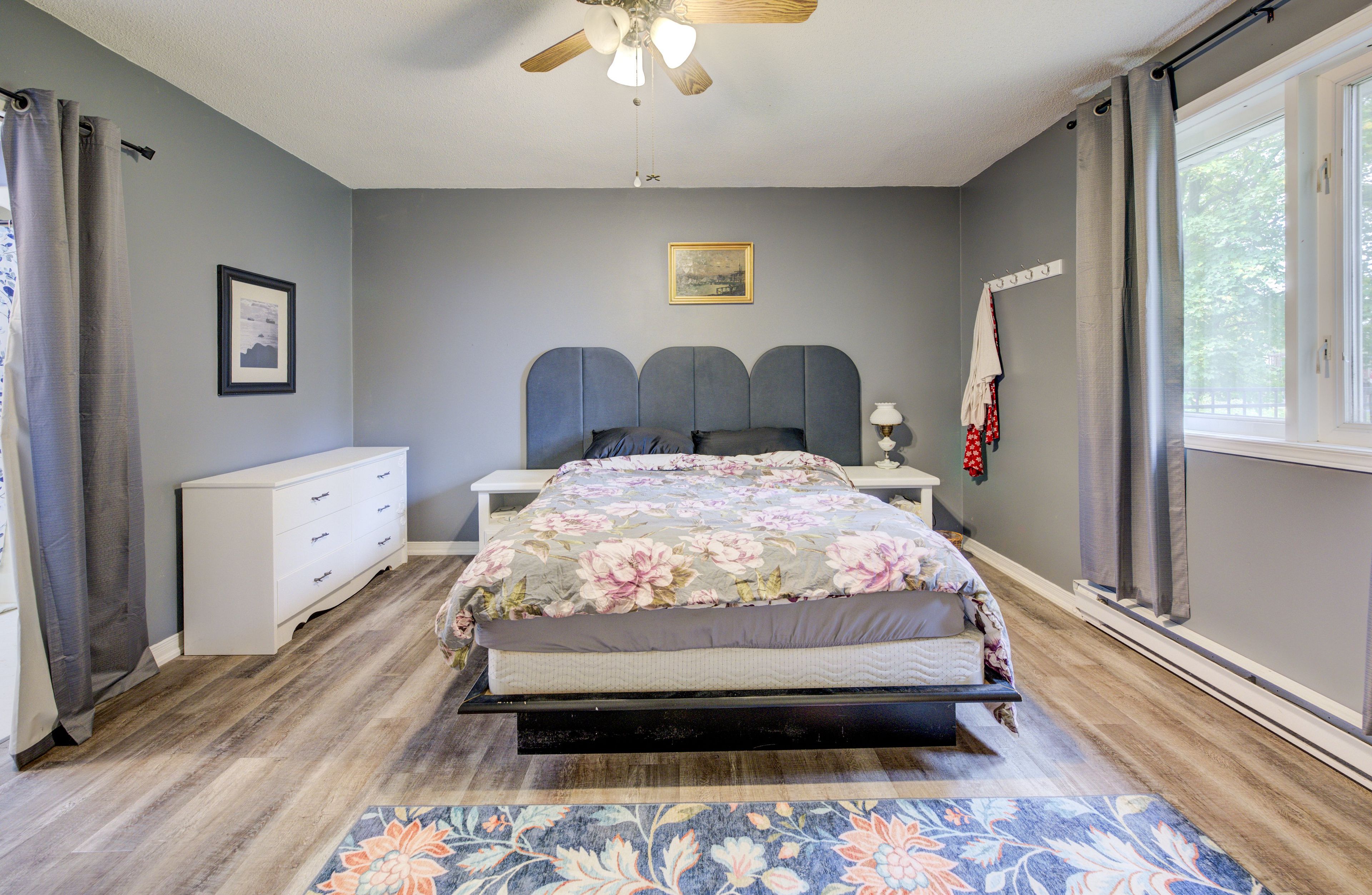 • Two large bathrooms, including a master suite with a cheater door.