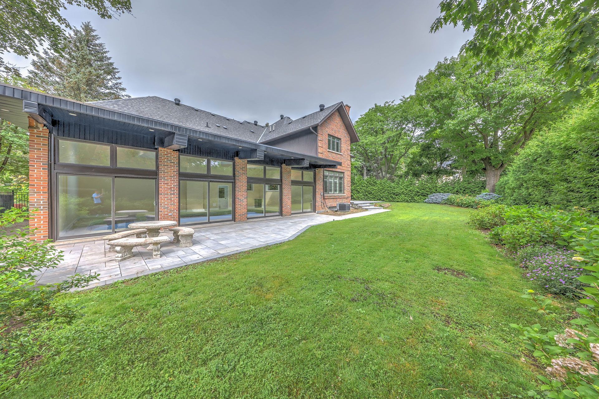 • Spacious backyard with new stone patio and beautiful gardens.