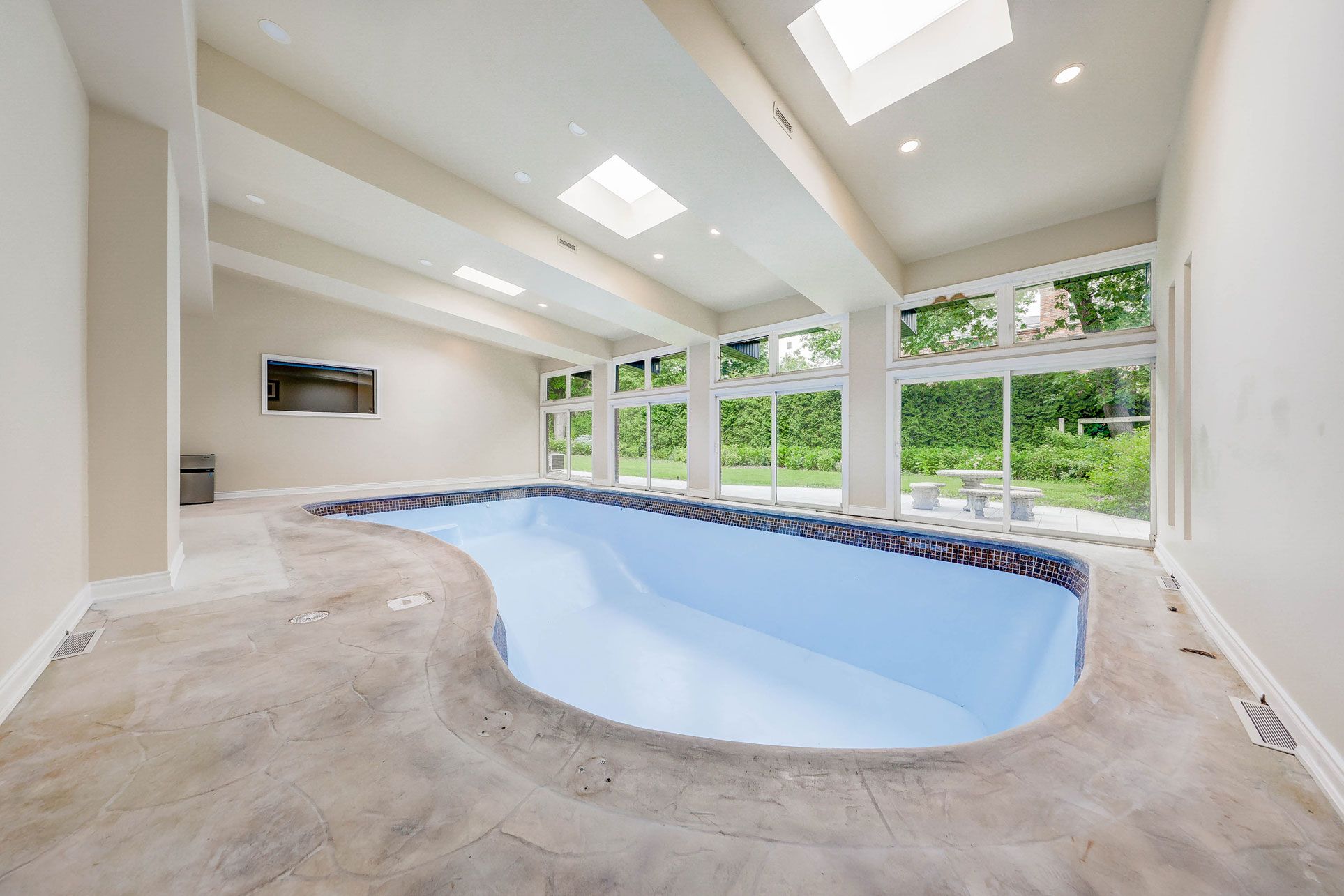 • Expansive indoor saltwater pool with easy access to the backyard.