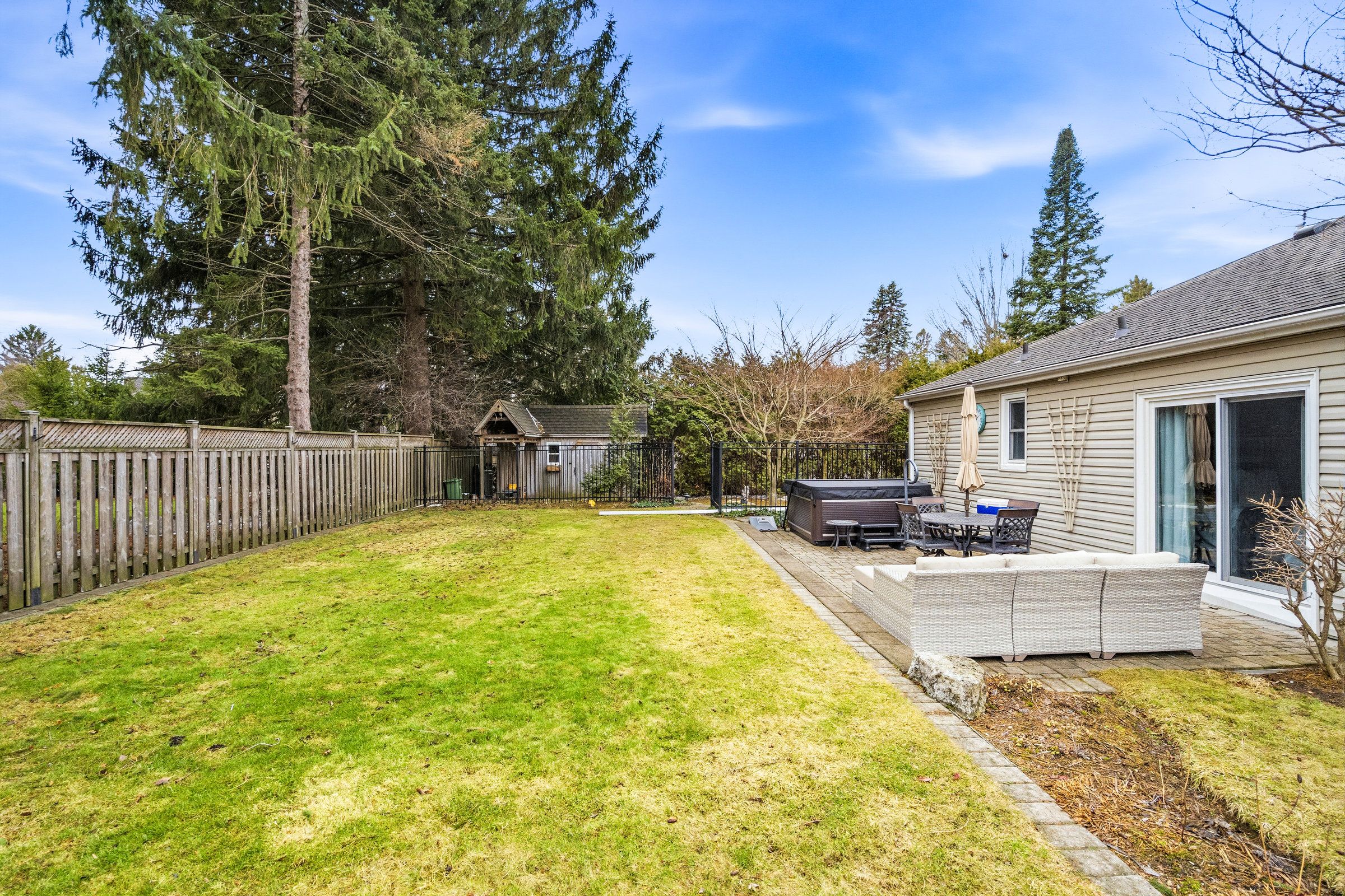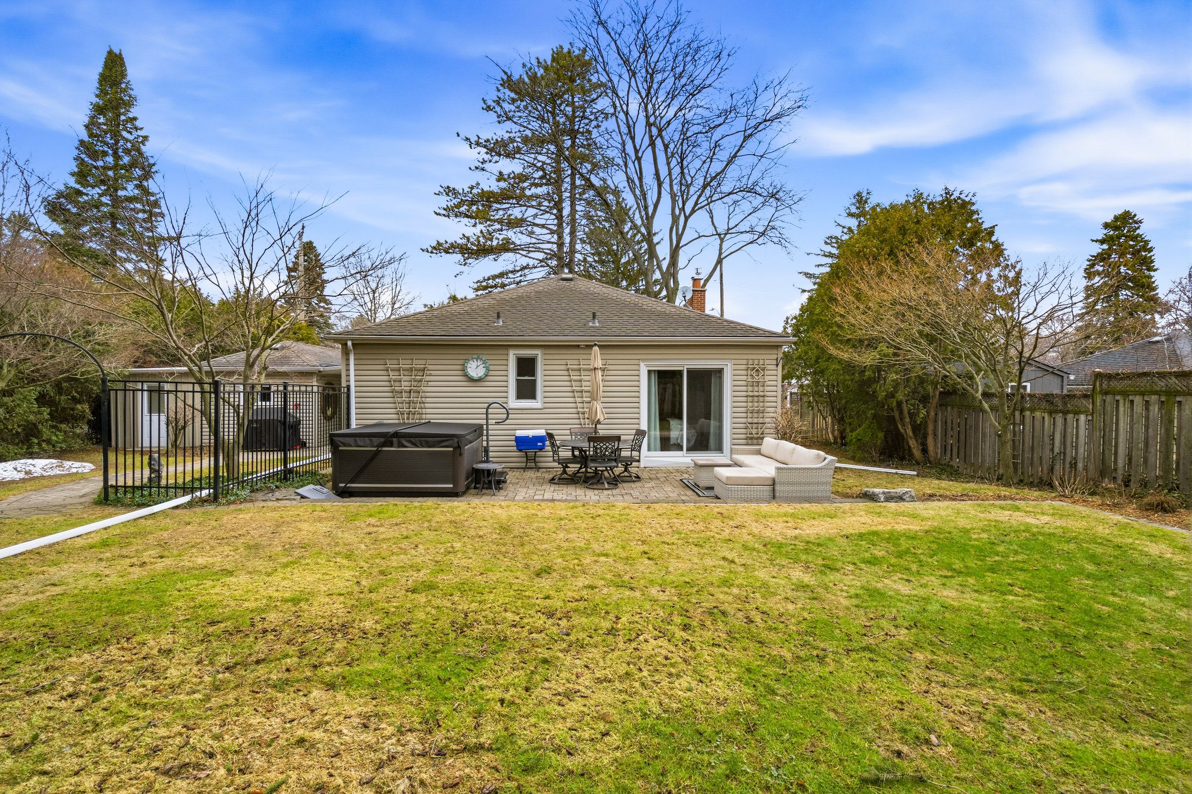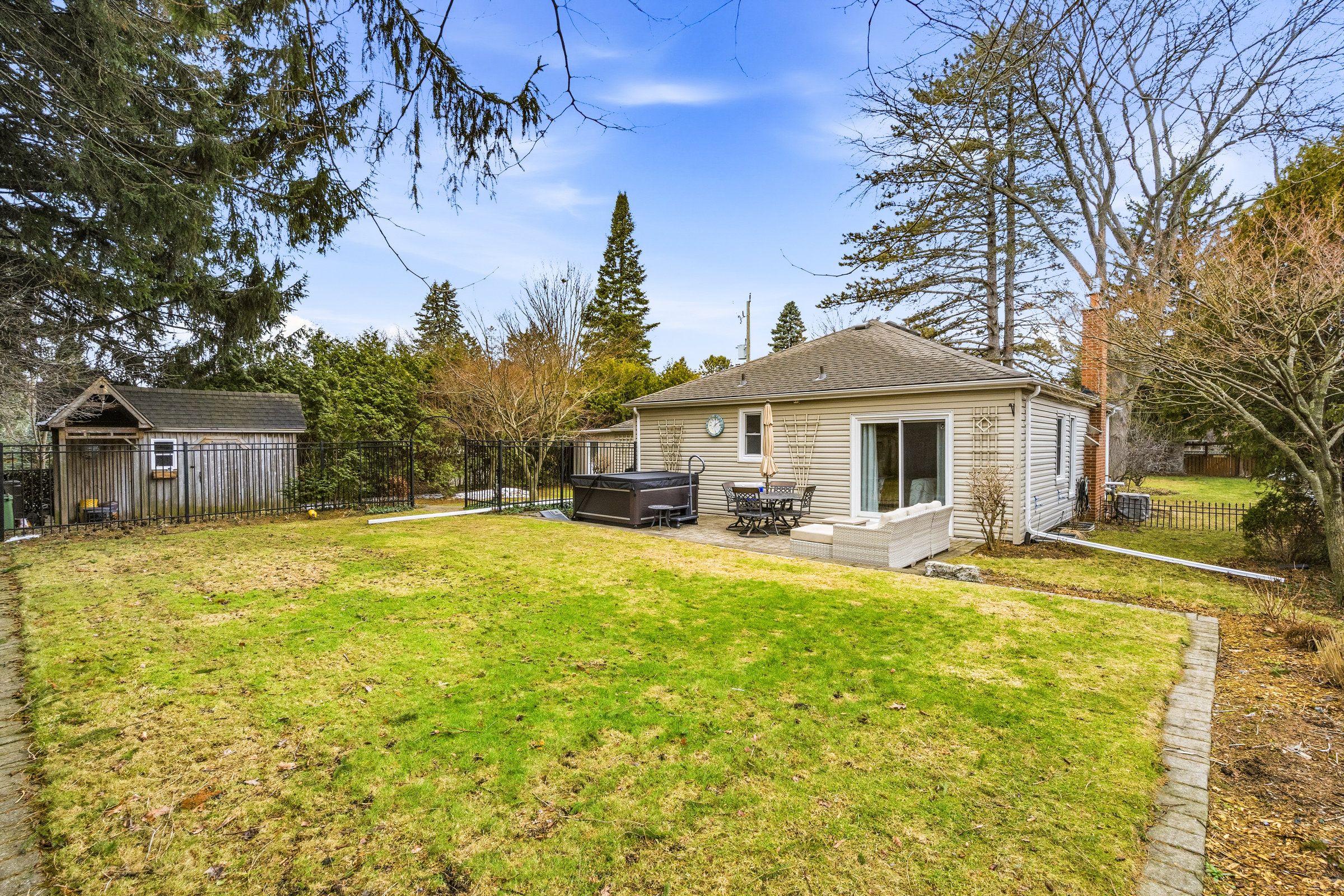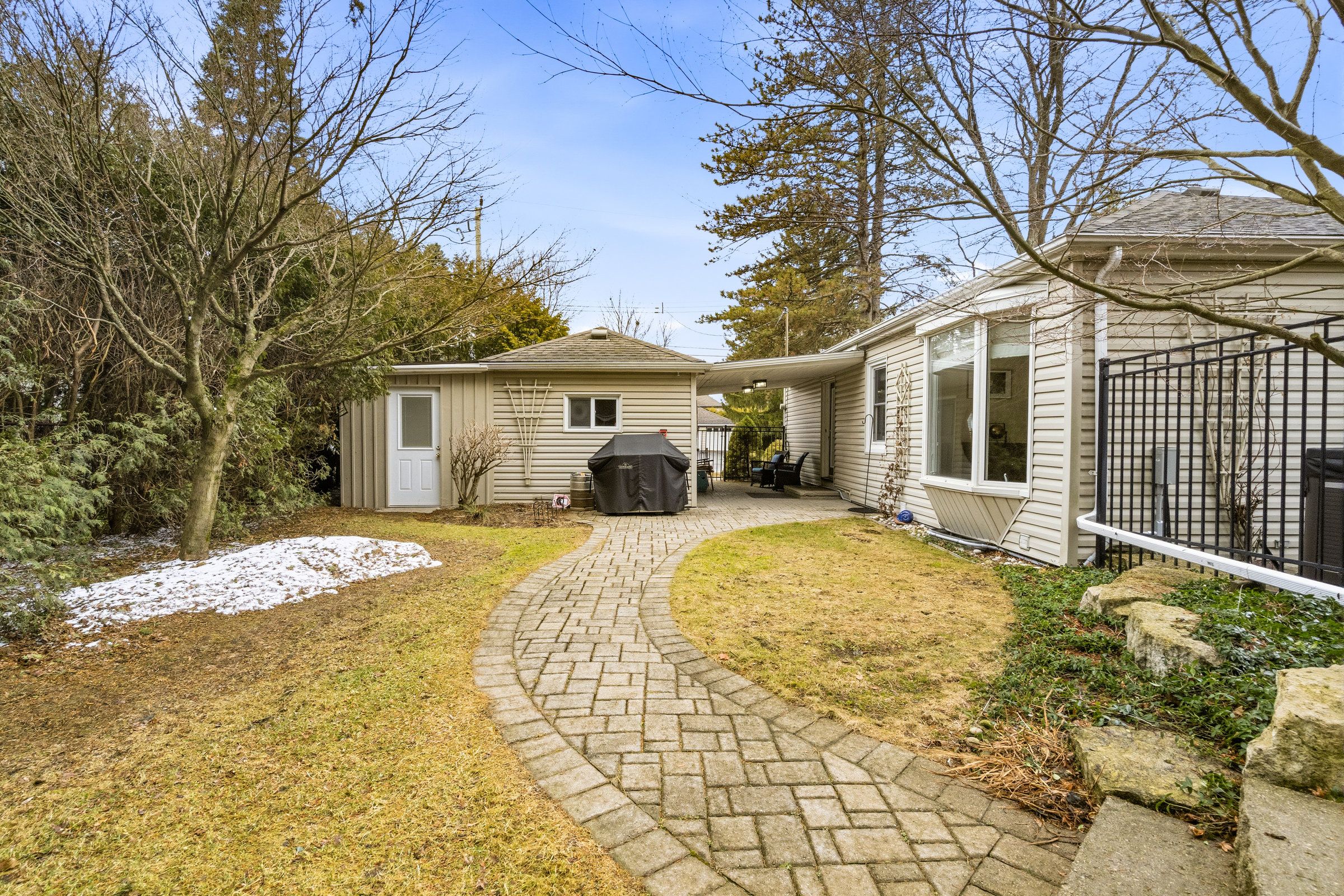 Welcome to this beautifully maintained home in the highly desirable oakhill neighbourhood in the heart of old ancaster. Situated on a large, mature lot, this property offers charm, space, and exceptional outdoor living. The main level features 3 spacious bedrooms and an updated 3piece bathroom, along with a bright living and dining room combination with hardwood floors throughout and a cozy gas fireplace. The kitchen is well appointed with brand new quartz countertops (2026) and stainless steel appliances. The primary bedroom features built ins as well as sliding doors to the backyard. Stunning finished basement offers excellent additional living space with a large rec room, fourth bedroom, laundry area, and an oversized bathroom featuring a soaker tub and separate shower. The basement walk-up to the side entrance provides excellent potential for a future in-law suite or secondary unit. Step outside to your private backyard oasis with beautiful landscaping, mature greenery, and plenty of space to relax or entertain. Additional features include a detached single car garage with new concrete floor, an 8' x 16' storage room addition beside garage, and a separate backyard shed. A gas bbq line adds extra convenience for outdoor entertaining. A rare opportunity to own a charming bungalow in the coveted old ancaster community, close to parks, schools, and all local amenities.