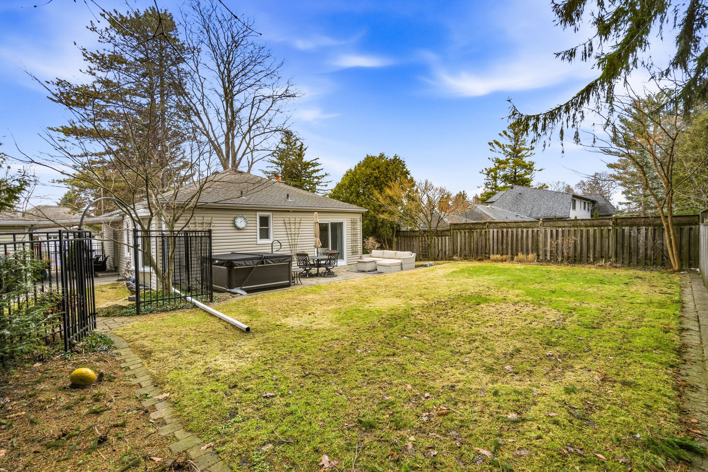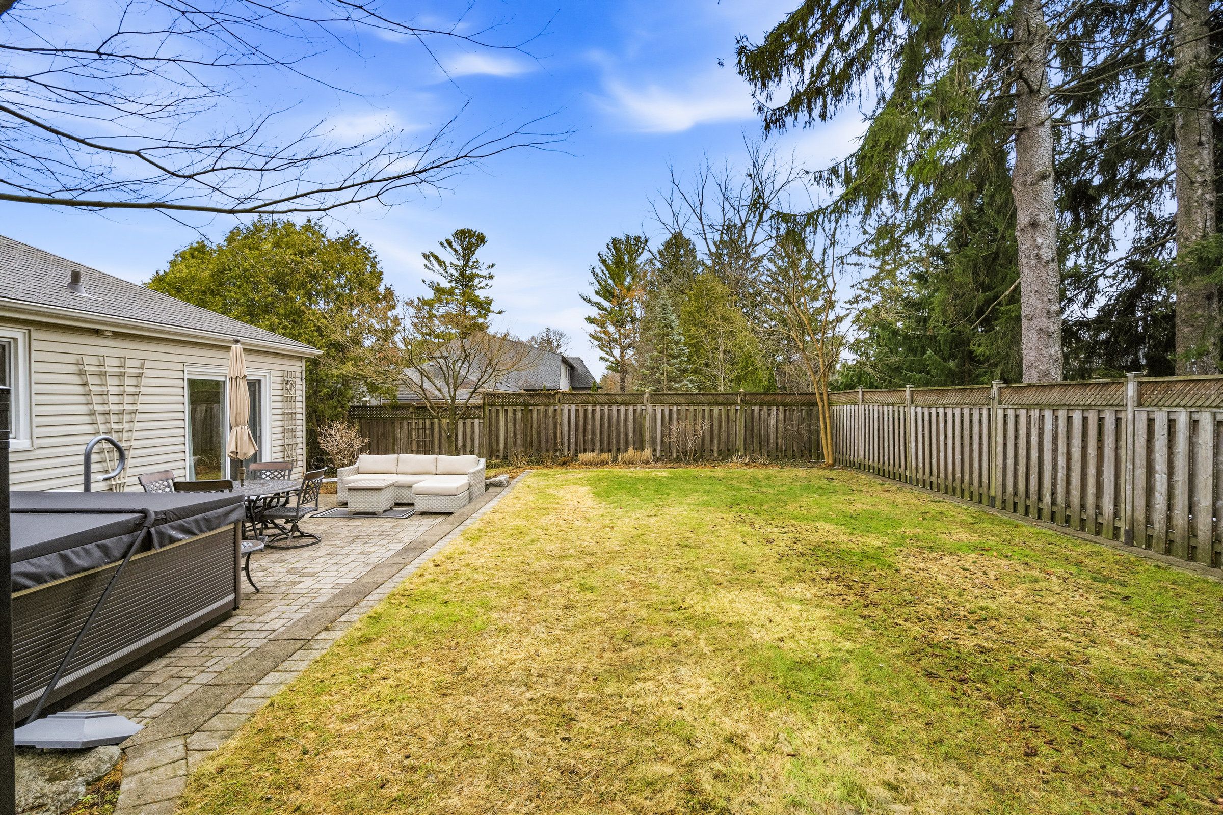 • Private backyard oasis with beautiful landscaping and room for entertaining.
