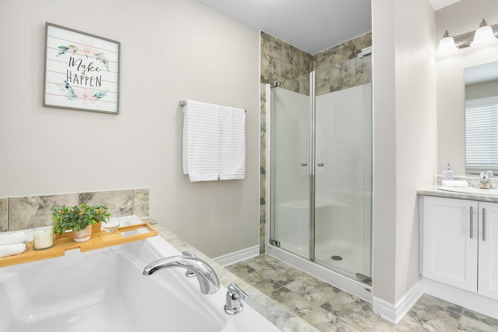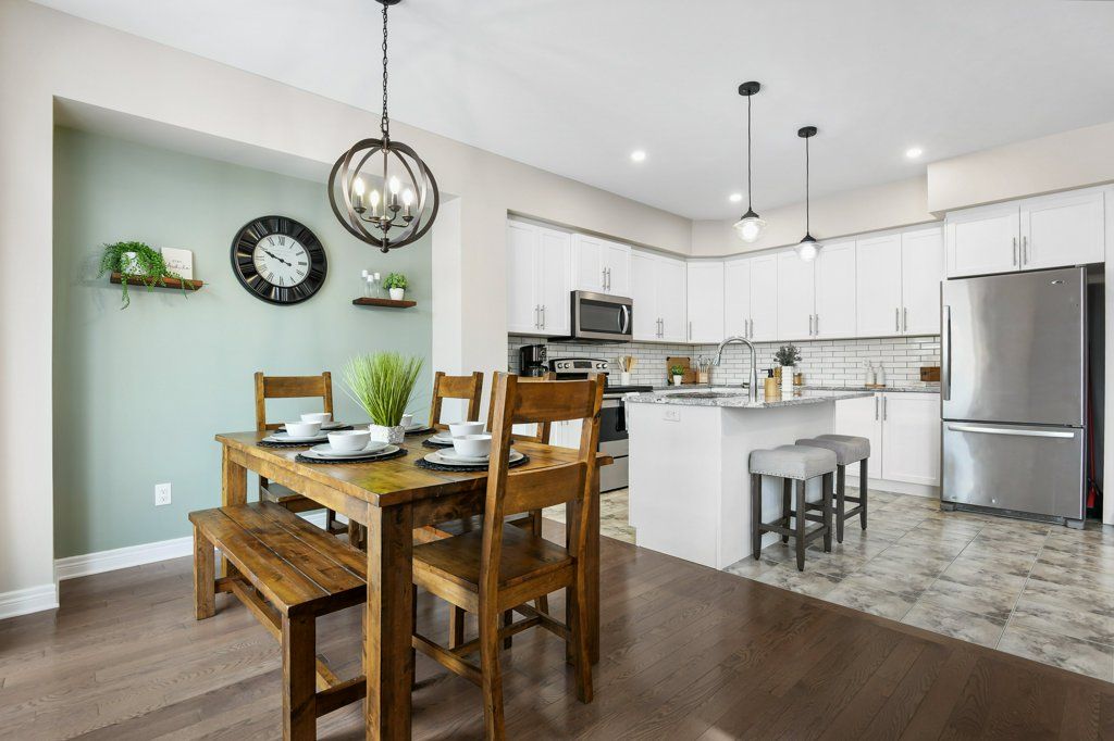 Step into comfort & style in this beautifully crafted grizzly-built middle-unit townhome, offering 3 bedrooms, 2. 5 bathrooms, and a finished basement. The main level welcomes you with rich hardwood flooring & a bright, open-concept layout that makes everyday living & entertaining feel effortless. The kitchen is the heart of the home, featuring an eat-in island, stylish backsplash, & plenty of prep space, all flowing seamlessly into the dining area & family room, perfect for family gatherings. Upstairs, the spacious primary suite provides a relaxing retreat with a walk-in closet & a private ensuite complete with double sinks, a soaker tub, & a separate stand-alone shower. Two additional bedrooms, a full bath, & the convenience of second-floor laundry make this level as functional as it is spacious. The finished basement adds valuable extra space for a rec room, home office, gym, or play area. Enjoy outdoor living in the fully fenced backyard with both patio & green space, ideal for summer barbecues, kids, or pets. A single-car garage with inside entry adds everyday convenience. Optimally situated close to schools, parks, shopping, & within walking distance to main street, this home offers the perfect blend of comfort, quality, & location in a growing community.