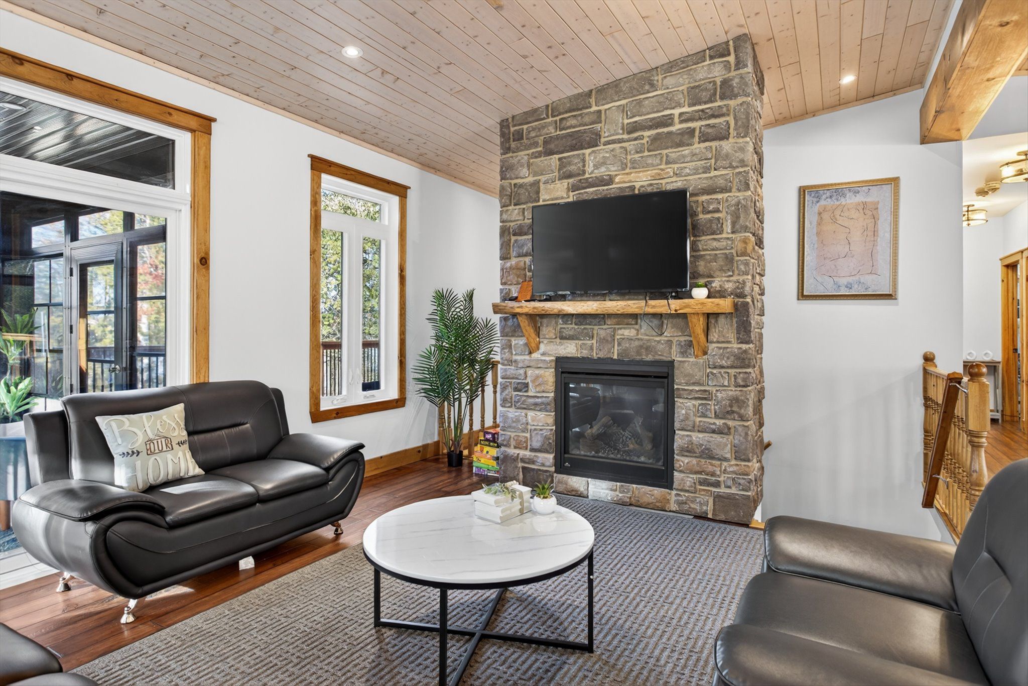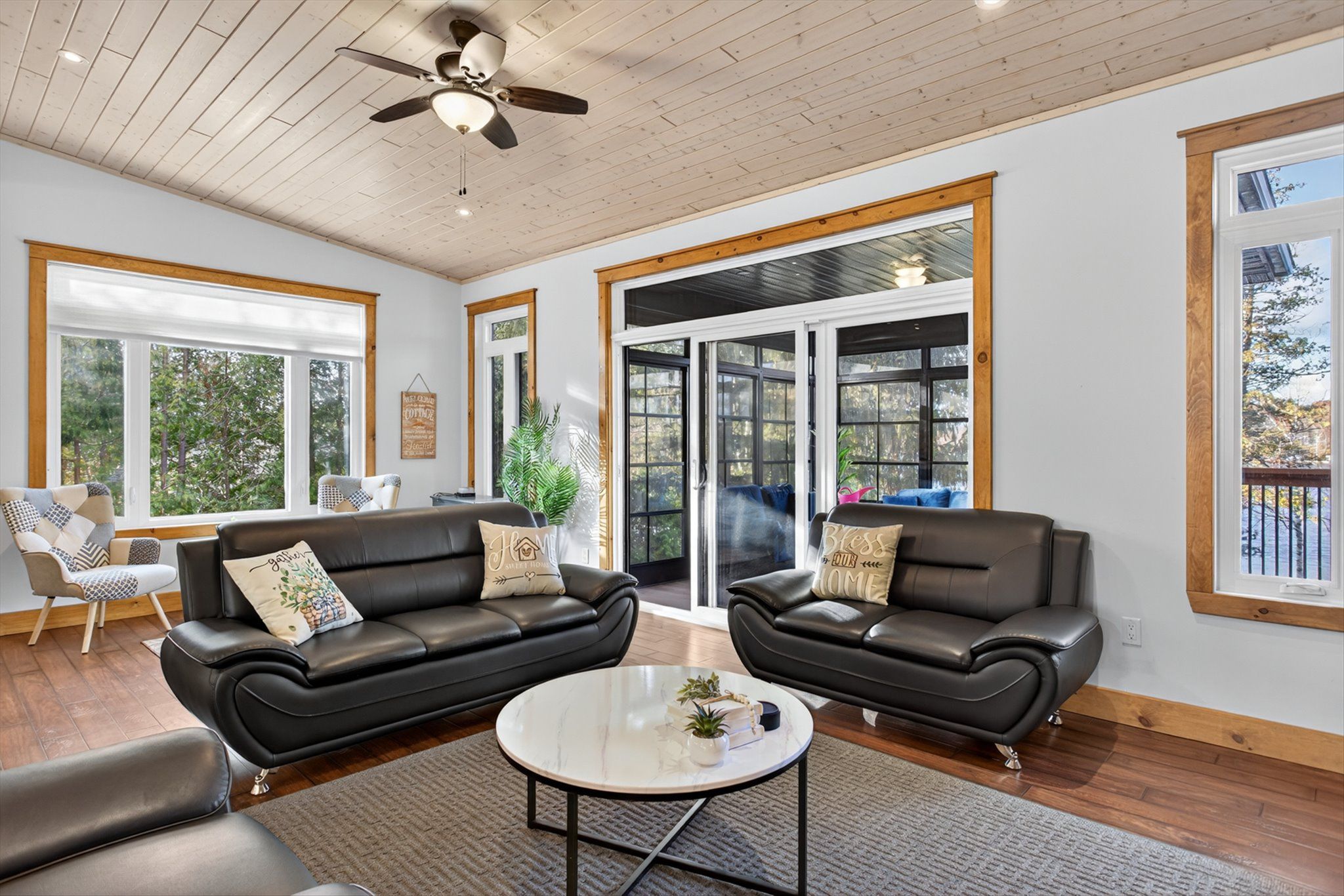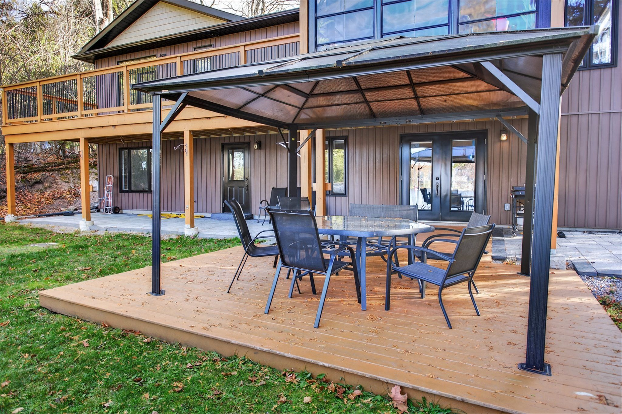 Welcome to your multigenerational lakeside retreat on the trent-severn waterway. This custom-built lakefront home sits on a private lot with 75 ft of direct waterfront on stunning pigeon lake, offering unforgettable views and a true four-season lifestyle. From the moment you arrive, you'll feel the comfort of a turn-key, fully furnished home, thoughtfully styled with luxury finishes and ready for immediate enjoyment. Designed for flexibility, this property is ideal for multigenerational families, those seeking income potential, or anyone wanting a peaceful, private waterfront haven. Step inside to an open-concept living space featuring a quartz center-island kitchen, beautiful finishes, and a cozy living room with a fireplace. A bright sunroom and expansive deck allow you to embrace lakeside living from sunrise to sunset. The fully finished walkout basement is perfect for extended family or guests, complete with large windows framing the waterfront, a full bath, a fireplace, and direct access to a lakeside patio. Outdoors, enjoy direct water access, a private dock, and peaceful surroundings. Two outdoor sheds offer the opportunity to create a funky bunkie, studio, or additional storage, and the detached garage adds even more convenience. Whether you're seeking privacy, family living, or a luxurious water's-edge escape, this exceptional property delivers. Just move in, relax, and embrace the waterfront lifestyle you've been dreaming of.