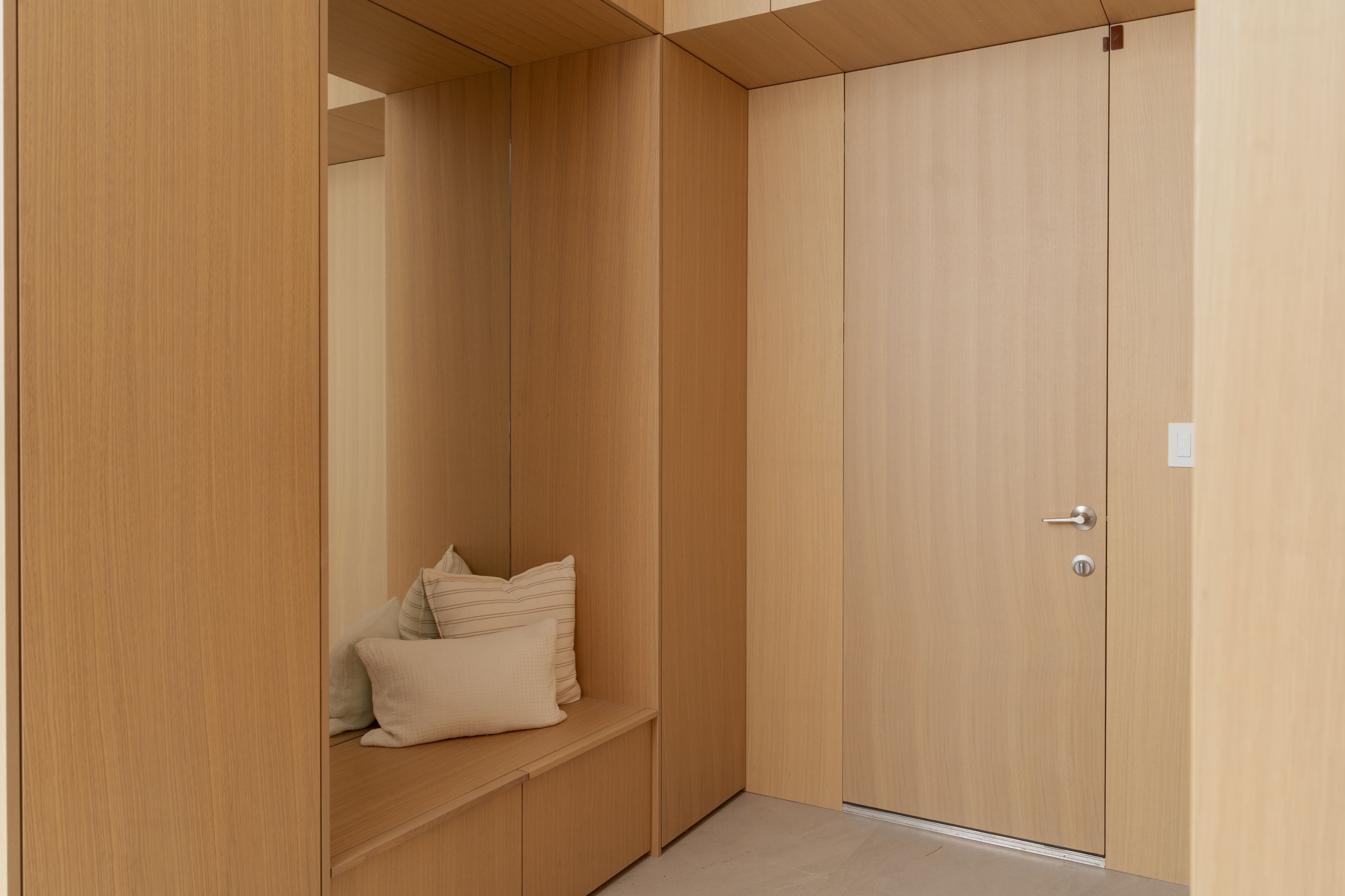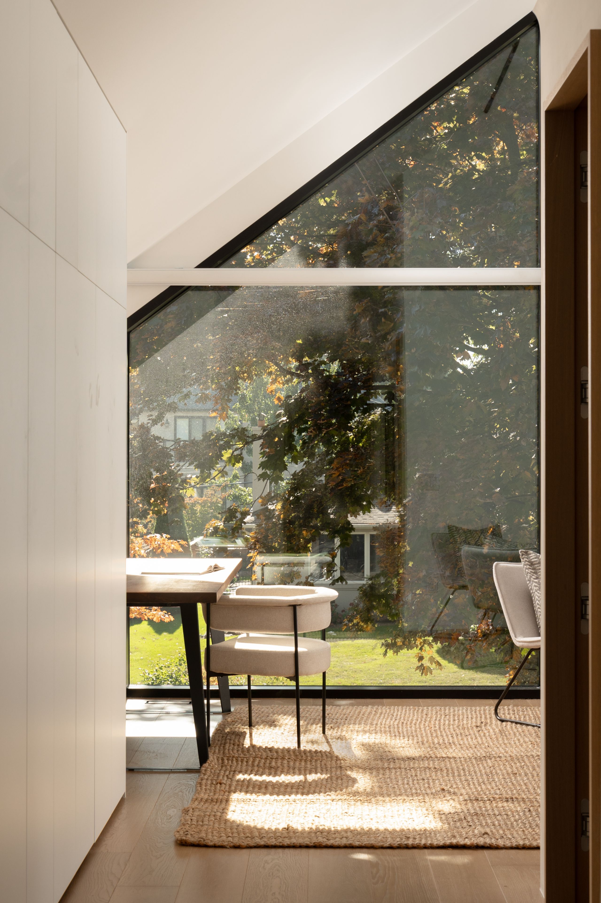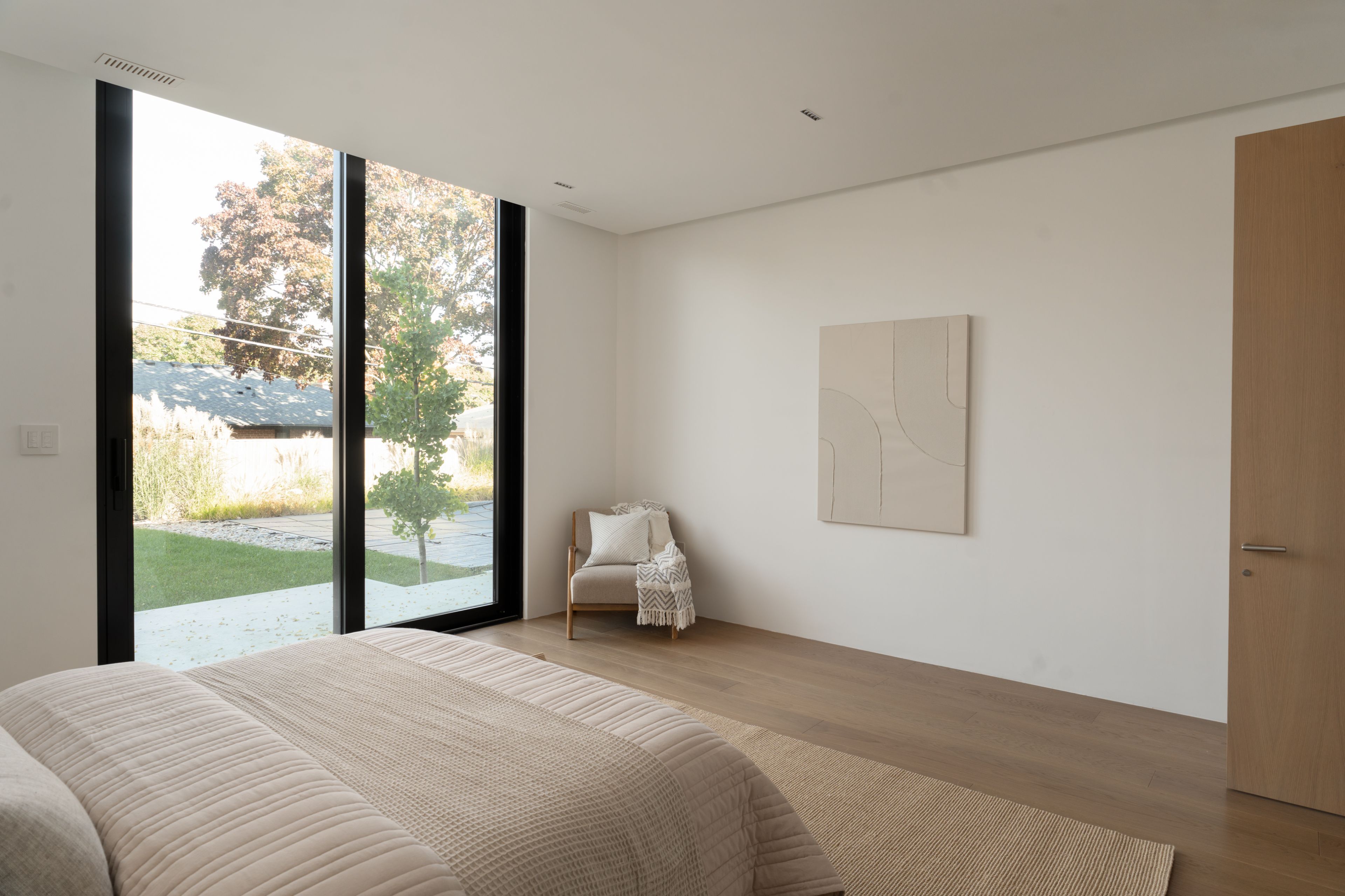 A gentle fusion of scandinavian and japanese design, the emperor sits proudly in toronto's charming princess anne manor neighbourhood. This detached custom build is an architectural wonder of the west end with smooth finishes, oak floors and panelling, plunging sight lines and cascading sunlight. Hidden doors reveal themselves at your fingertips to unassuming ensuite bathrooms dressed in creams and stone or covert closets with abundant storage - its invisible lines maintain minimalism at the forefront of its demure design. Dramatic floor-to-ceiling windows rise 21 feet high in the main living, wide open to a generously sized dining room and bright kitchen with an exceptional breakfast island and concealed coffee nook. Fluting and custom millwork anchors the front entrance and frames the tv, complimenting the microcement finished gas fireplace. A constellation of soft lights quietly illuminates the home, a spectacle when the sun goes down, while its tobacco coloured facade stretches across the 76 foot wide lot and leads to an inground saltwater pool at the rear. Beneath century old canopy trees, around slow swooping roads, this one-of-a-kind modern build is two minutes from st george's golf & country club & only ten minutes to pearson airport. Over 5000 total square feet, your choice of two primary bedrooms and multiple flex spaces on the top floor with the option to convert them to extra bedrooms - executives, creatives, gamers, podcasters, families and fitness enthusiasts will find limitless potential and a whole new meaning to going home at 38 ravensbourne.