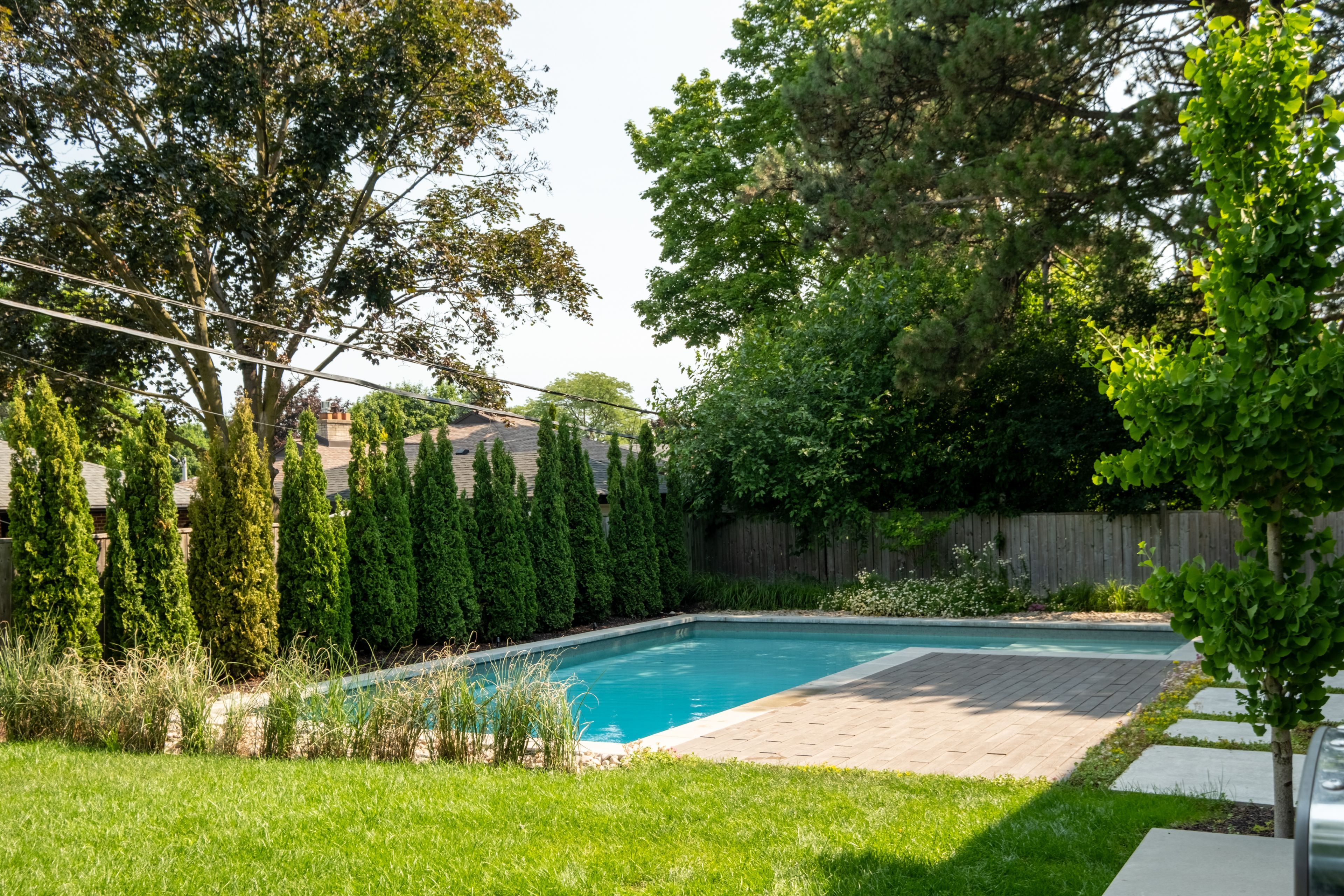 • Inground saltwater pool nestled beneath century-old trees for outdoor enjoyment.