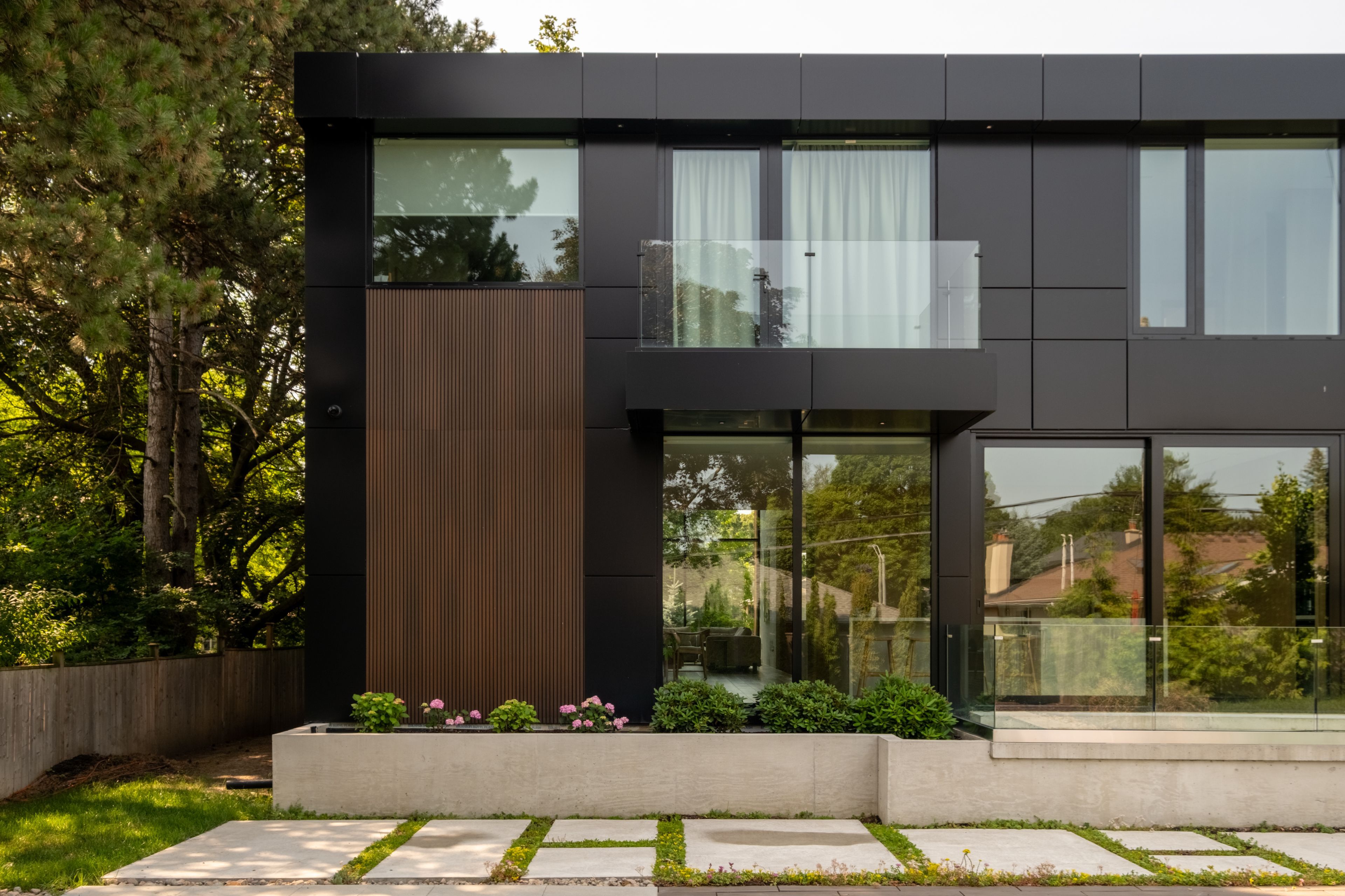 Undeservingly overlooked - a gentle fusion of scandinavian and japanese design, the emperor sits proudly in toronto's charming princess anne manor neighbourhood. This detached custom build is an architectural wonder of the west end with smooth finishes, oak floors and panelling, plunging sight lines and cascading sunlight. Hidden doors reveal themselves at your fingertips to unassuming ensuite bathrooms dressed in creams and stone or covert closets with abundant storage - its invisible lines maintain minimalism at the forefront of its demure design. Dramatic floor-to-ceiling windows rise 21 feet high in the main living, wide open to a generously sized dining room and bright kitchen with an exceptional breakfast island and concealed coffee nook. Fluting and custom millwork anchors the front entrance and frames the tv, complimenting the microcement finished gas fireplace. A constellation of soft lights quietly illuminates the home, a spectacle when the sun goes down, while its tobacco coloured facade stretches across the 76 foot wide lot and leads to an inground saltwater pool at the rear. Beneath century old canopy trees, around slow swooping roads, this one-of-a-kind modern build is two minutes from st george's golf & country club & only ten minutes to pearson airport. Over 5000 total square feet, your choice of two primary bedrooms and multiple flex spaces on the top floor with the option to convert them to extra bedrooms - executives, creatives, gamers, podcasters, families and fitness enthusiasts will find limitless potential and a whole new meaning to going home at 38 ravensbourne.