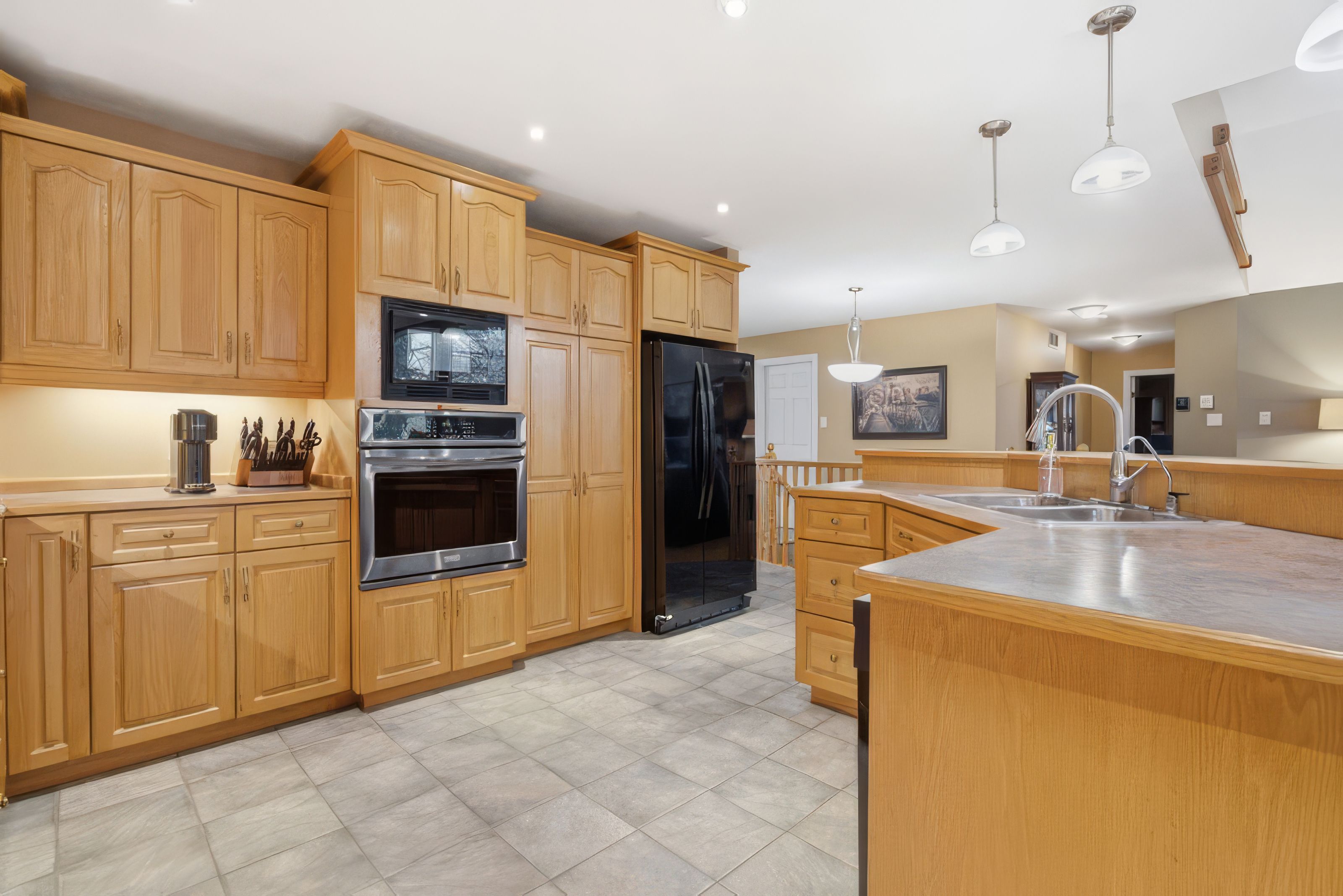 • Chef's kitchen with built-in appliances and a large central island.