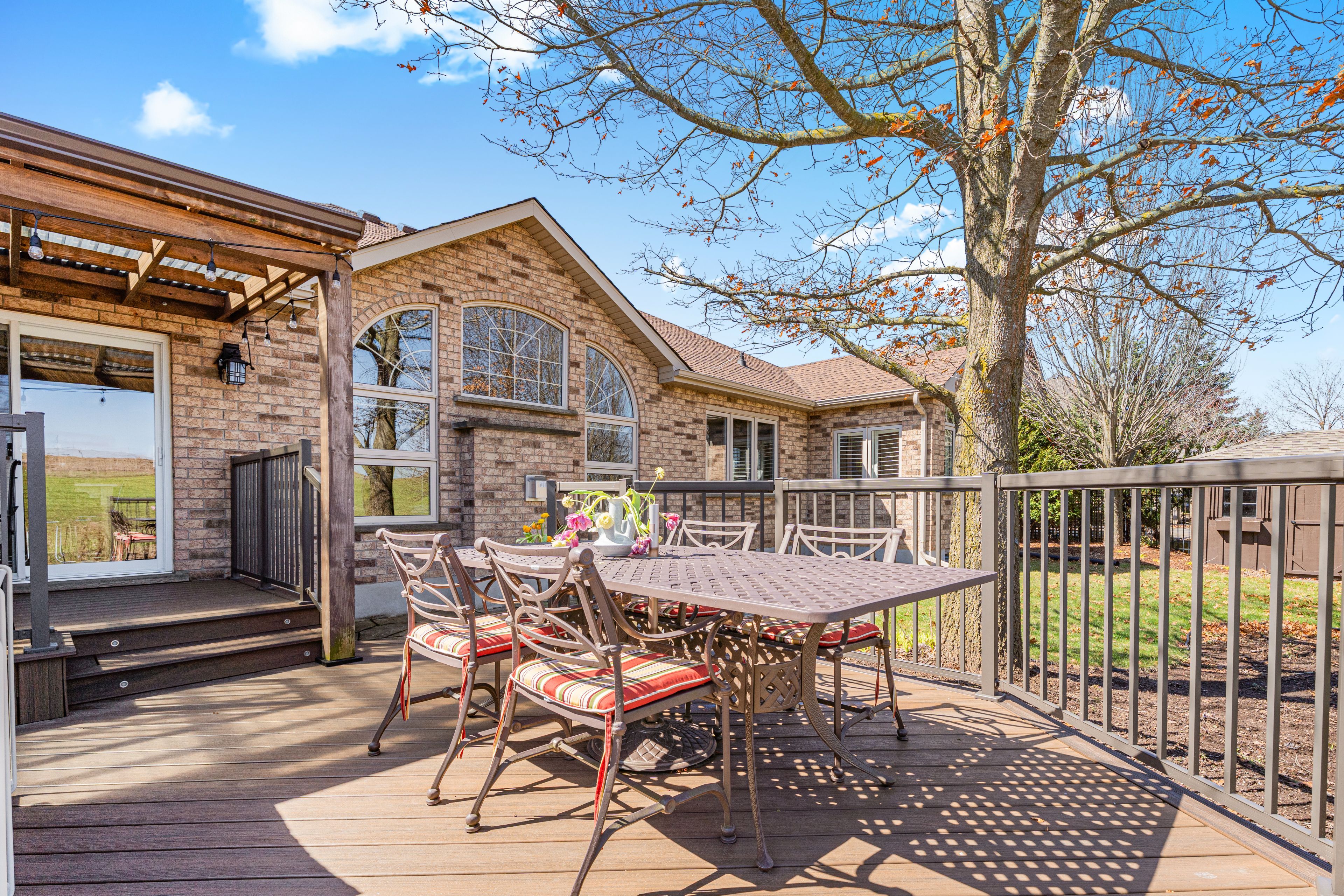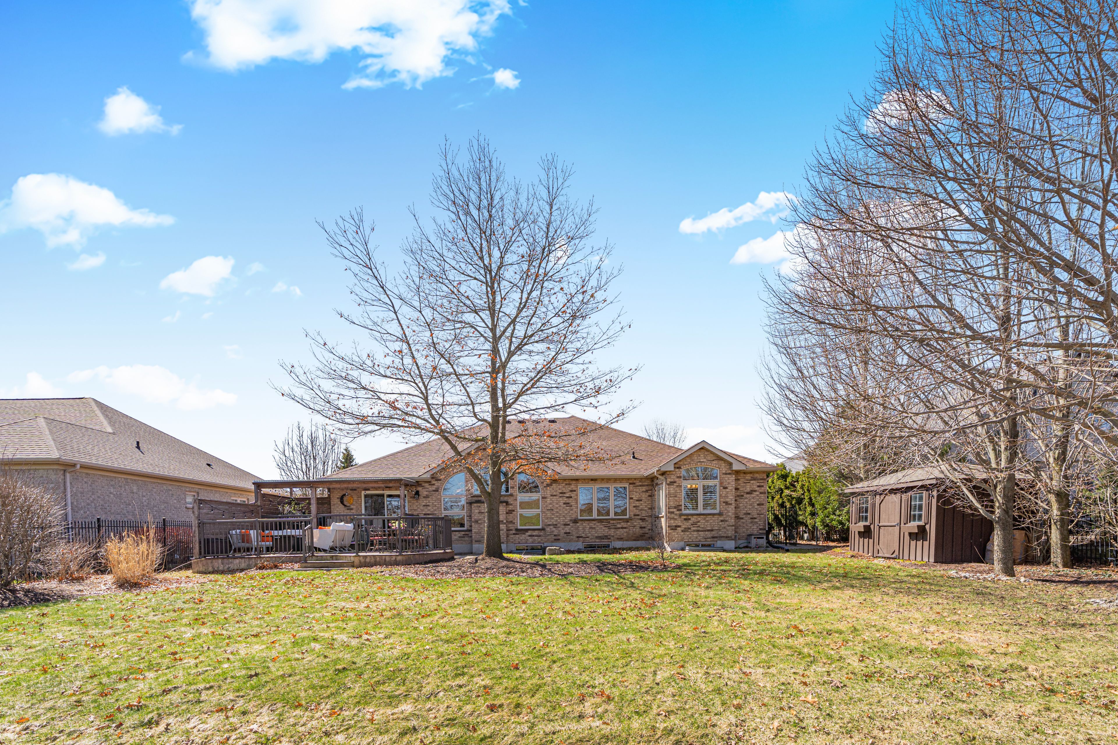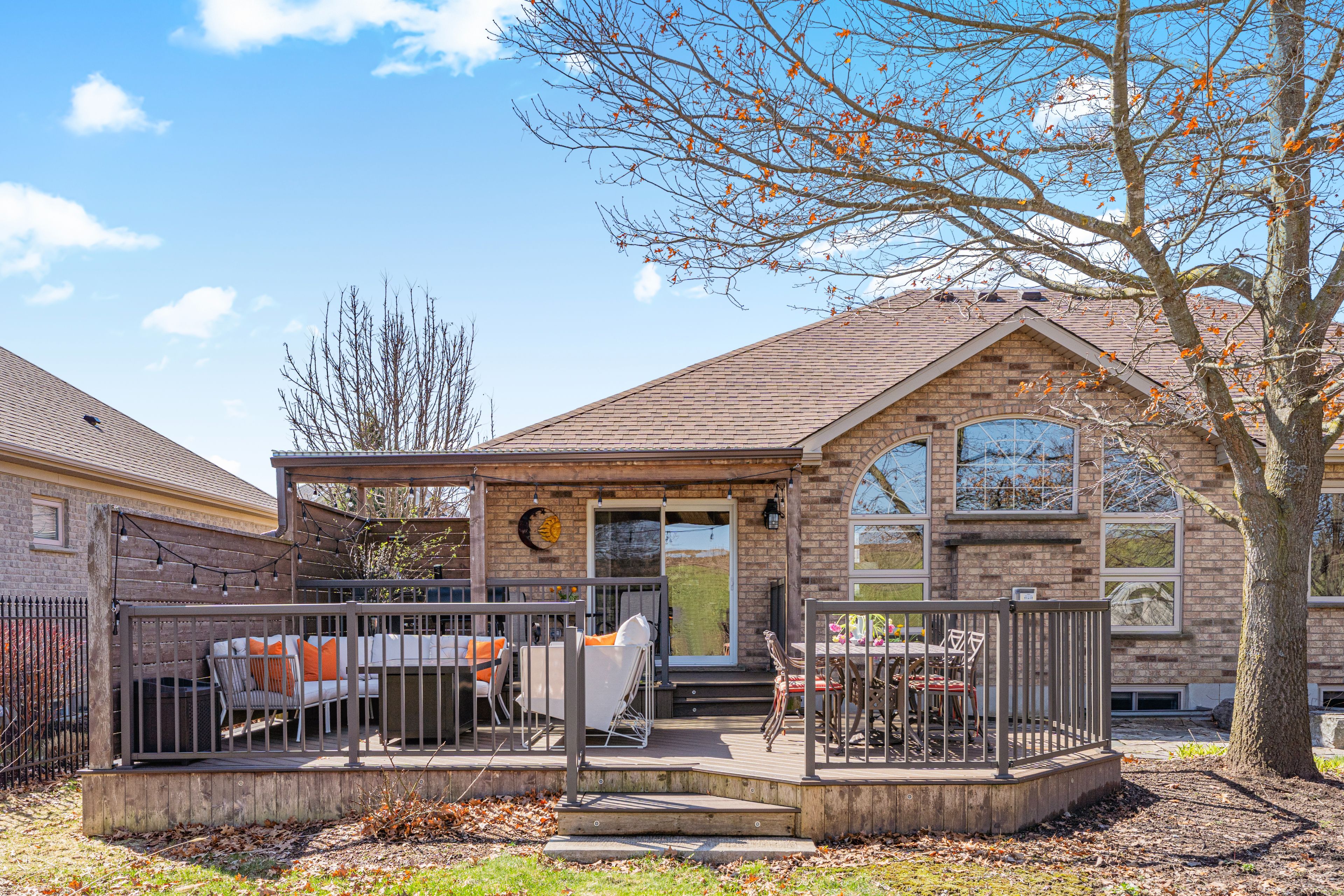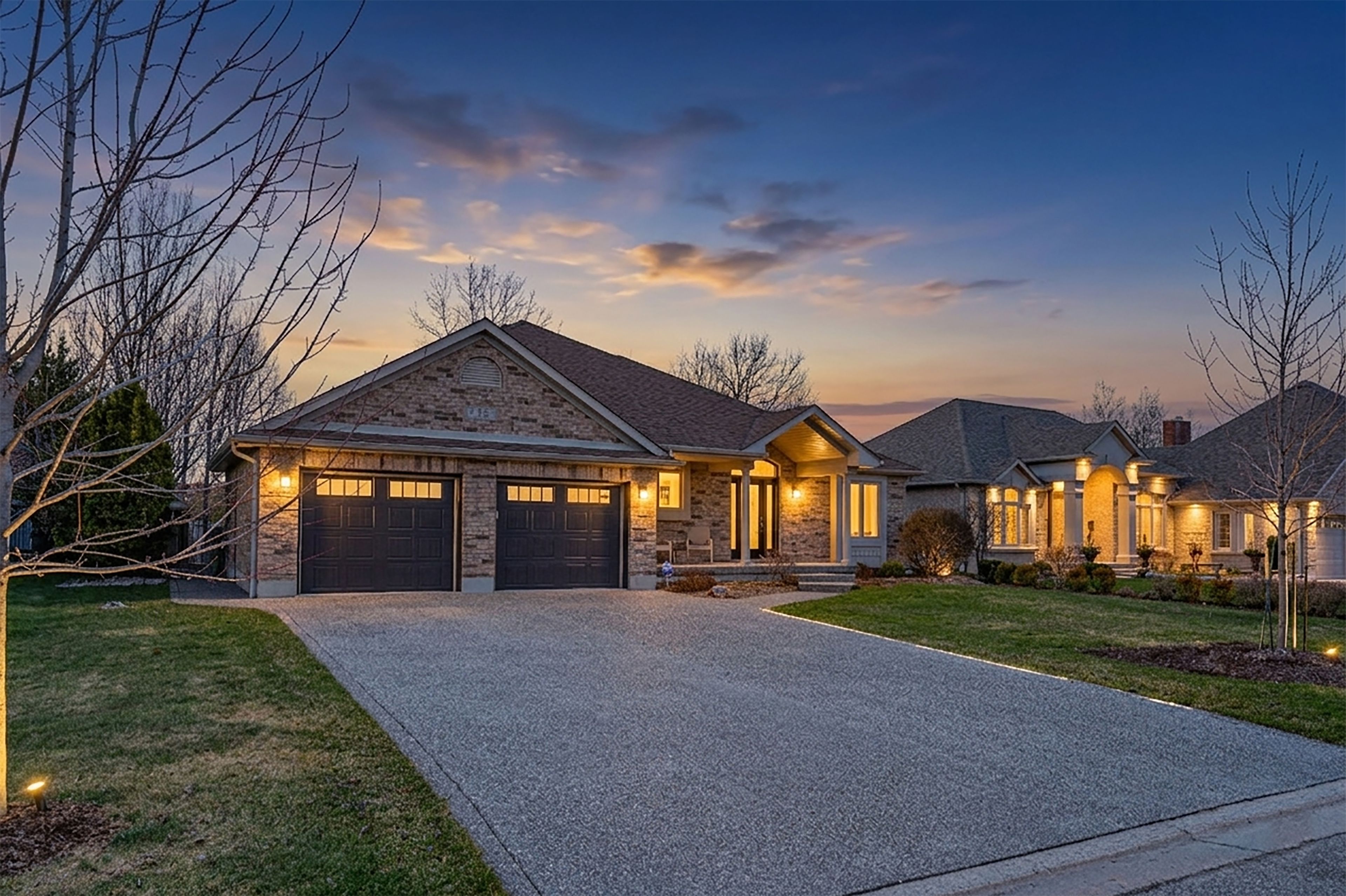 Experience the perfect blend of luxury and tranquility at 38 rhine meadow road. This exquisite custom-built bungalow is nestled on a quiet, family-friendly street in the charming community of heidelberg, ontario. Offering a balance of small-town serenity and city convenience, this residence sits on a premium lot with no rear neighbors, backing onto lush greenery for ultimate privacy. From the moment you arrive, professional landscaping and striking curb appeal set the tone. Step inside to a bright, airy interior defined by soaring vaulted ceilings and expansive windows flooding the home with natural light. The open-concept layout is designed for entertaining and comfortable living. The chef's kitchen is well-appointed with built-in appliances, custom cabinetry, elegant stone countertops, and a large central island perfect for gathering. The main floor features a luxurious primary retreat, offering a peaceful escape complete with a walk-in closet and a spa-like ensuite with a relaxing jacuzzi tub and separate shower. An additional bedroom on this level provides versatility for a home office, den, or guest space. The fully finished walk-up lower level dramatically expands your living space. It features a massive recreation room perfect for movie nights or a home gym, along with additional bedrooms and a full bathroom-ideal for older children, guests, or an in-law setup. The outdoor living space is a true sanctuary. Step out to your private backyard oasis, where you can host summer barbecues on the deck or enjoy quiet evenings under the stars. The sprawling lawn and lack of rear neighbors create a park-like atmosphere rare to find. Located just minutes from waterloo, you'll enjoy easy access to top-tier schools, shopping, and dining. Meticulously maintained and move-in ready, this is more than just a house; it's the lifestyle you've been waiting for. Don't miss your chance to call this exceptional property home!