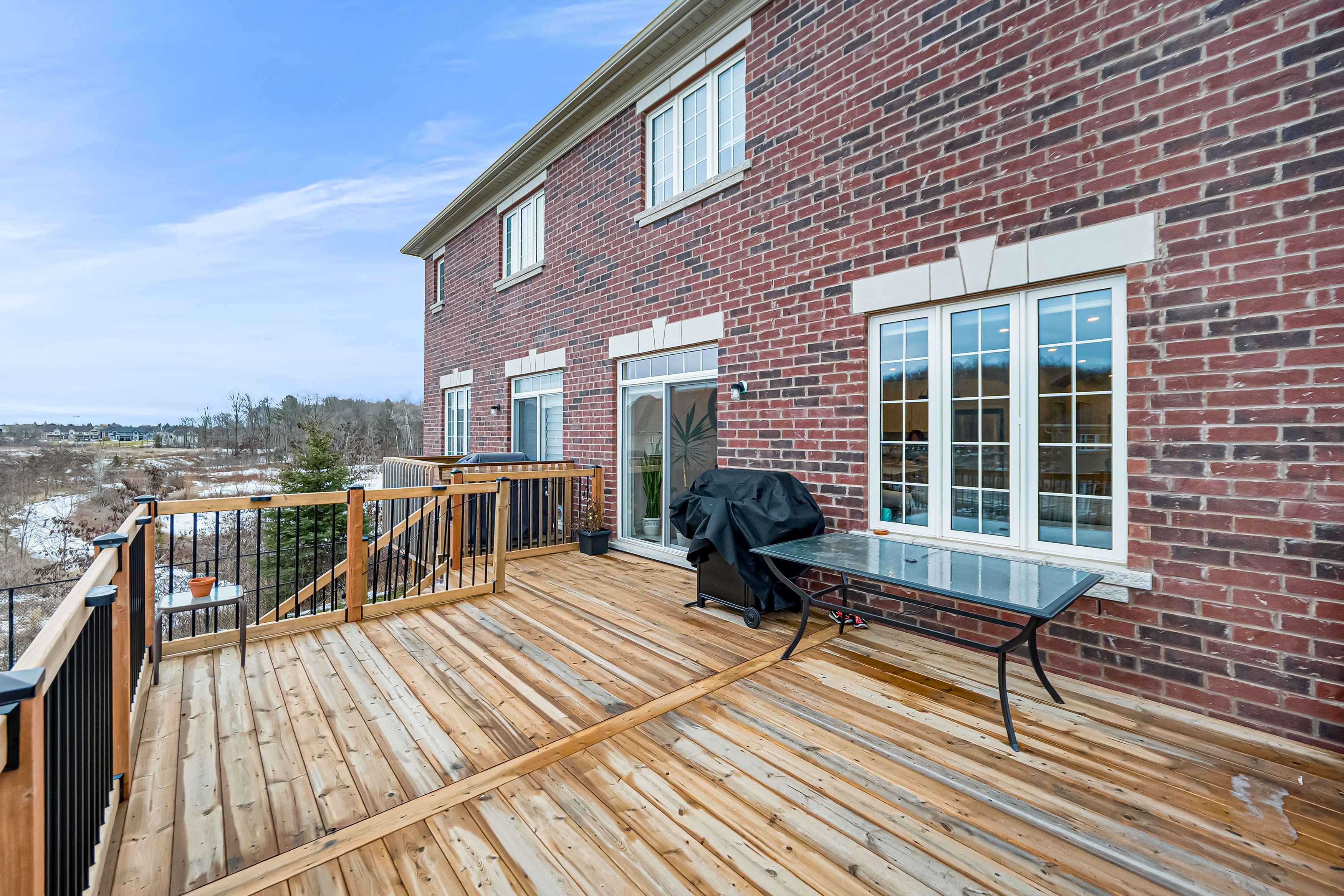 Rare oversized walkout lot with serene wooded views welcome to this exceptional rosehaven-built modern semi-detached home,ideally located in the prestigious anchor woods master-planned community of holland landing. Situated on one of the large stand longest lots on the street, this property offer soutstanding privacy, generous outdoor space, and peaceful wooded views. The expansive walkout lot is enhanced with professionally installed interlock landscaping surrounding the backyard and side of the home-providing a beautiful,low-maintenance outdoor setting. A large oversized deck creates the perfect space for entertaining or relaxing while enjoying the tranquil natural scenery. This elegant two-storey residence features 4+1 spacious bedrooms and parking for four vehicles (three driveway + one garage). The fully finished walkout basement apartment offers excellent flexibility for in-laws,extended family, or rental income potential. The main level boasts 9-foot ceilings, a bright open-concept layout, and achef-inspired upgraded kitchen with quartz countertops,stainless steel appliances, and premium finishes throughout. The primary suite includes a large walk-in closet and a luxurious 5-piece ensuite. Enjoy the convenience of direct garage access and a thoughtfully designed layout ideal for modern family living. Located just minutes from highways 404 &400, go station, public transit, parks, trails, costco, and upper canada mall, this home offers the perfect blend ofcomfort, convenience, and lifestyle. A truly rare opportunity featuring an oversized walkout lot, wooded views, interlock landscaping, and income potential. Not to be missed.