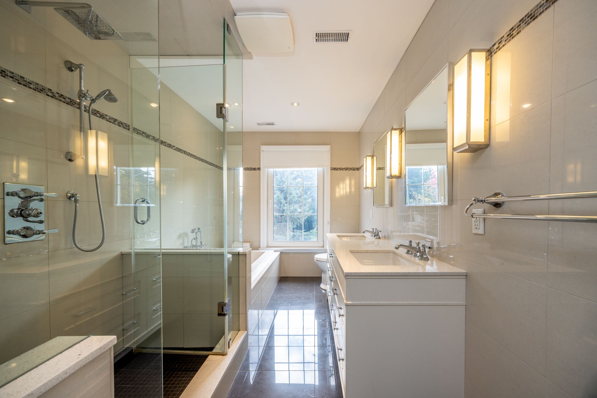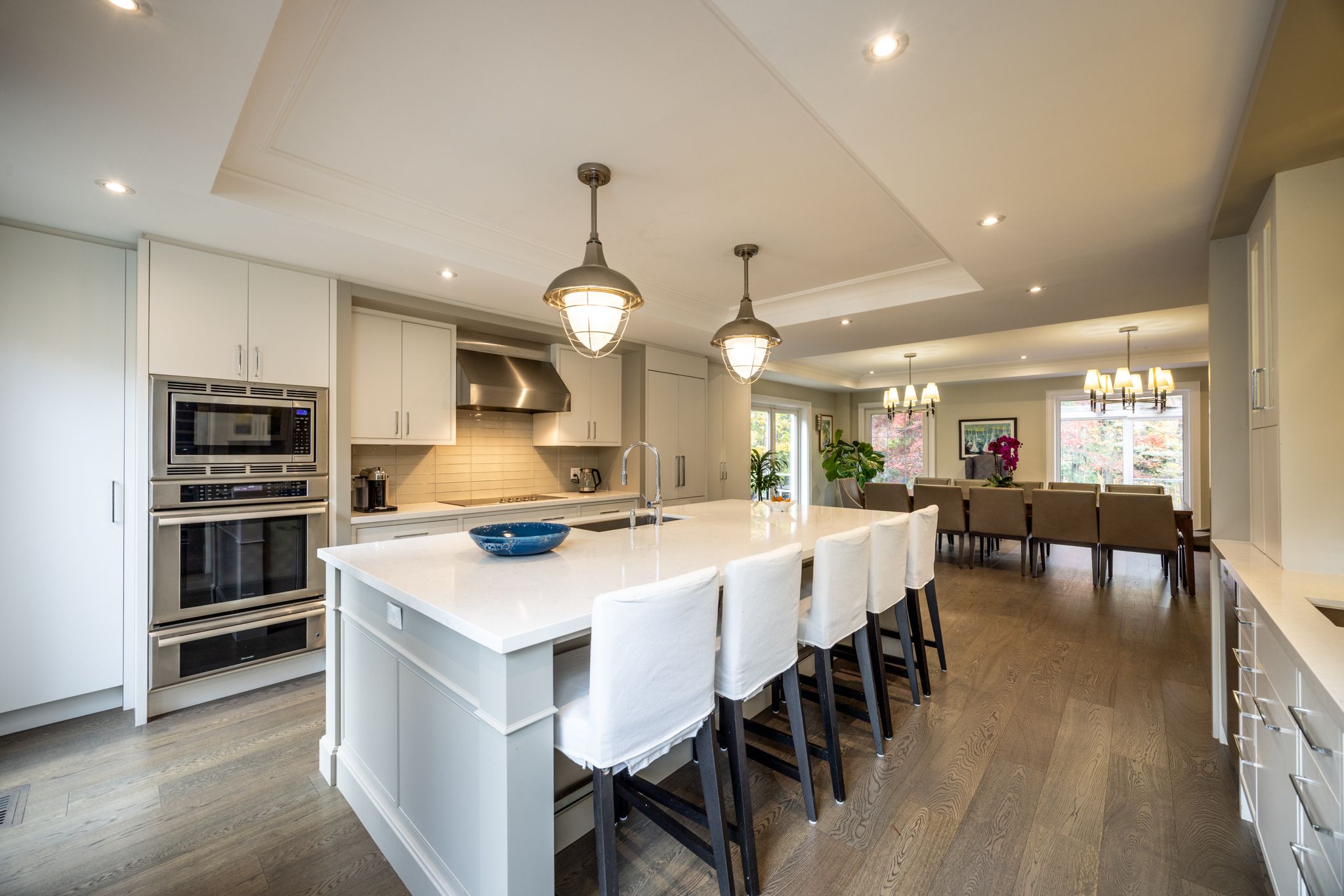 • Spacious gourmet kitchen with modern finishes and high-end appliances.