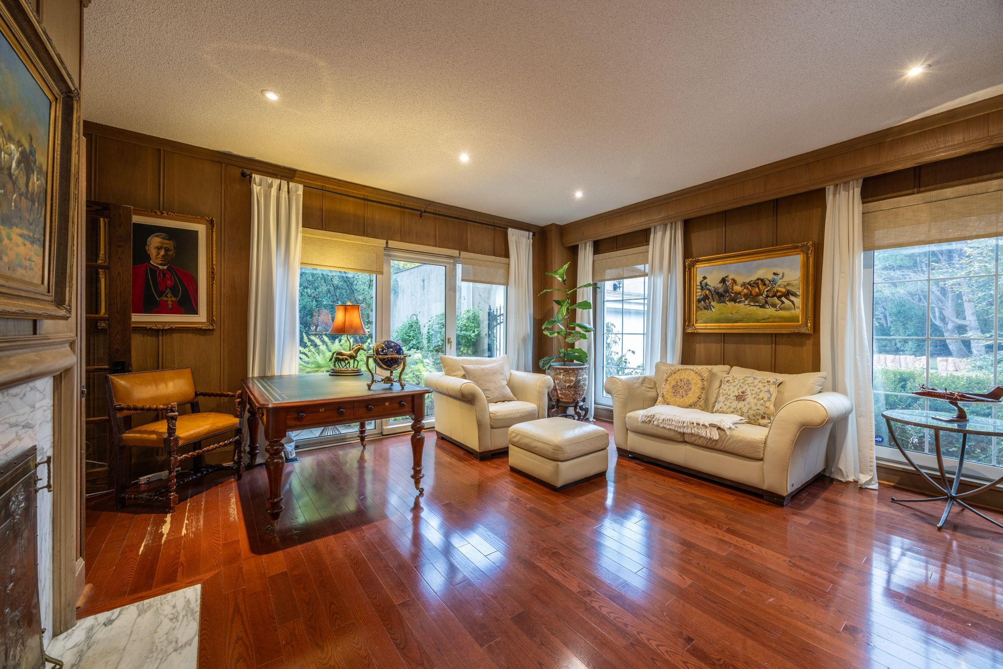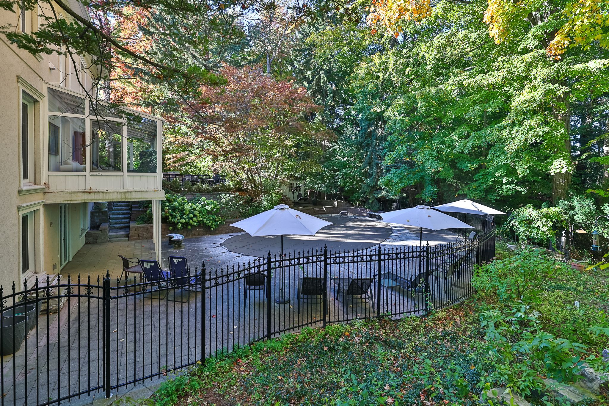 Experience sublime privacy and tranquility in this classic and lovingly maintained home. Ideally situated in the heart of the bridle path and backing directly onto adjoining conservation land !! From the sunroom, living, dining room and spacious gourmet kitchen opening up to the private patio and fenced yard, every outdoor-facing captures peaceful nature vistas. ** inside, enjoy quality reno finishes throughout, a modern high-efficiency kitchen with oversized central island and high-end appliances. The thoughtfully designed kitchen has access to the sunroom. Complete with a living room and fireplace, primary bedroom with ensuite (heated flooring), an office/library room with a fireplace and exit to the second patio. * an extra feature is a built-in accessibility elevator for access to the main floor and upstairs and accessible large bathroom. ** the lower level offers an additional bedroom overseeing the backyard, entertaining areas and spacious utility room with upgraded home systems. Enjoy 5,584 sf total livsp ** the lower level at-grade walkout opens to the backyard on a generous tableland with a heated pool and multiple sitting areas for outdoor, al-fresco dining & grand entertaining! ** this premium walkout lot also presents a unique opportunity to showcase your vision for a new home and capture the scenery with unobstructed natural views !! Located in prestigious the bridle path area near top ranking private and public schools, granite club, gold course, sunnybrook, edwards garden and other parks, this property offers a rare blend of privacy, natural beauty, and convenient amenities!
