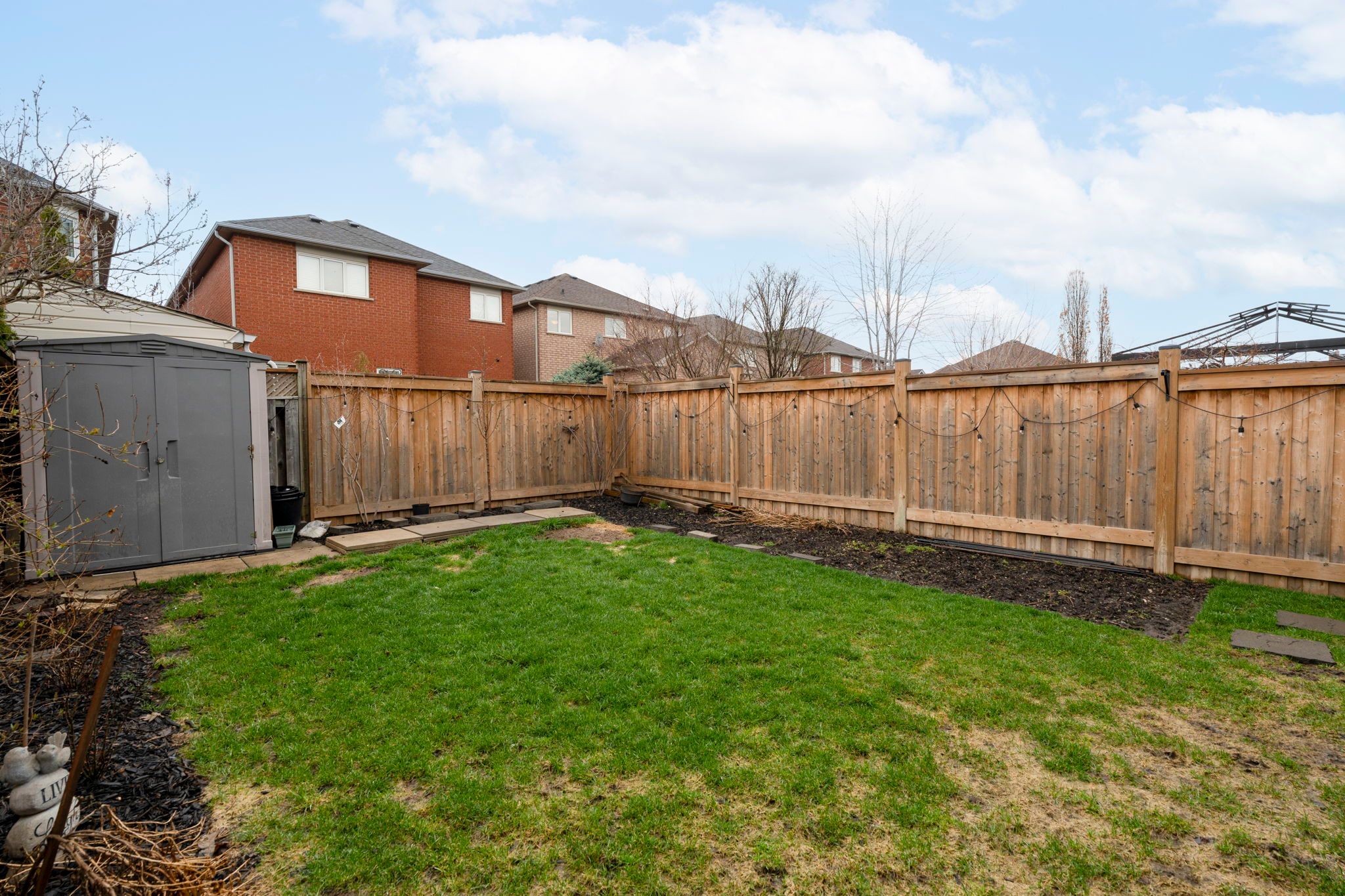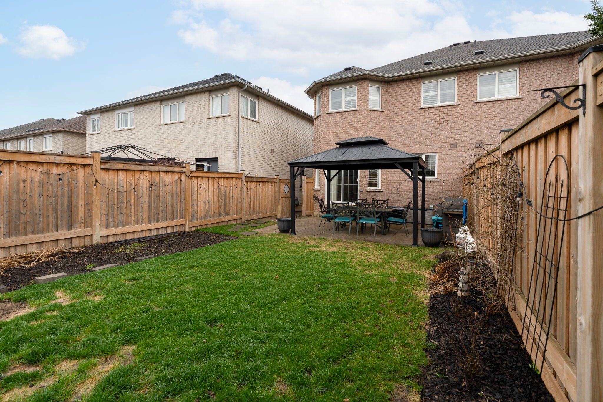 • Private backyard features newly installed metal gazebo for family gatherings.