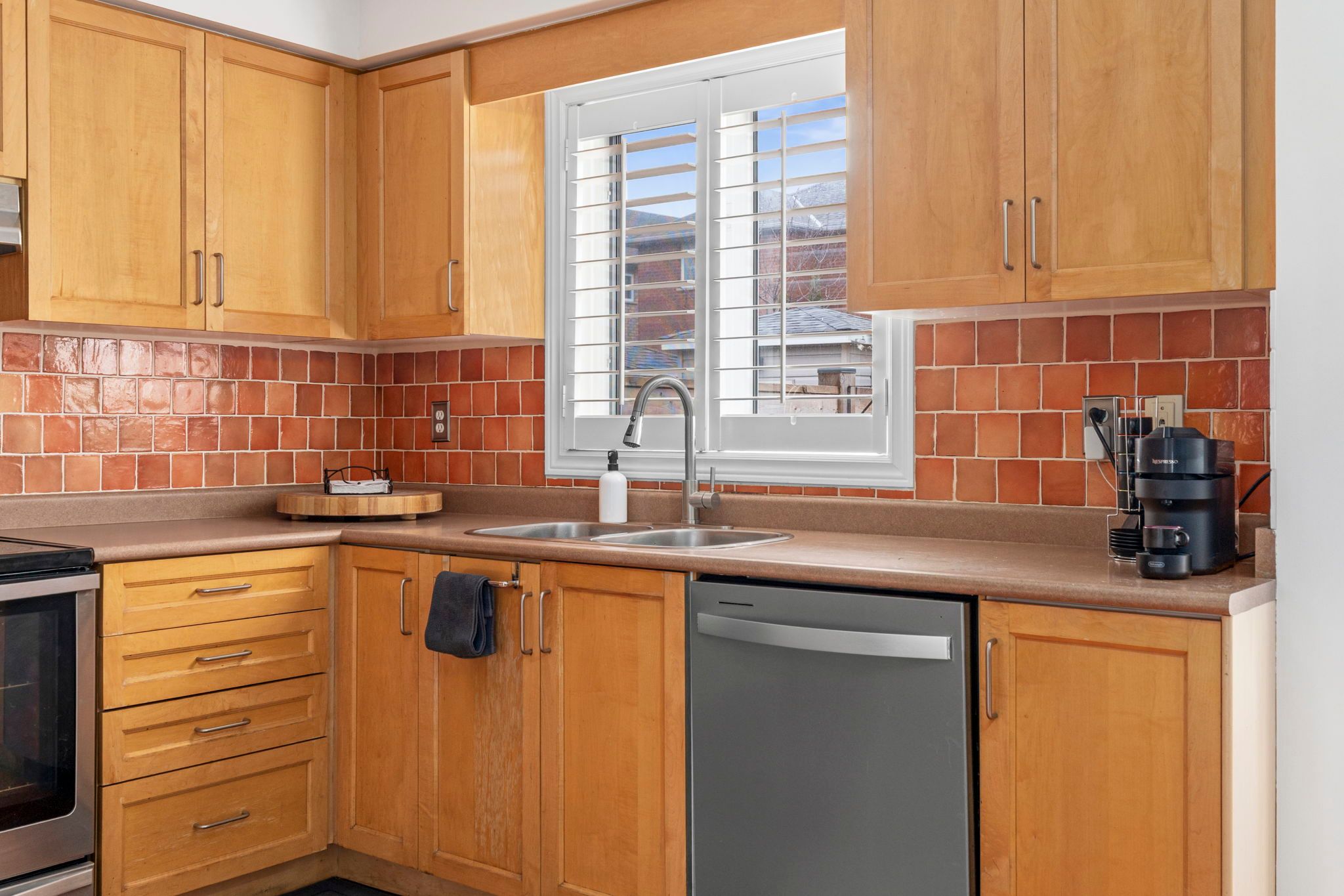 • Open kitchen with new stainless steel appliances and sun-filled dining area.