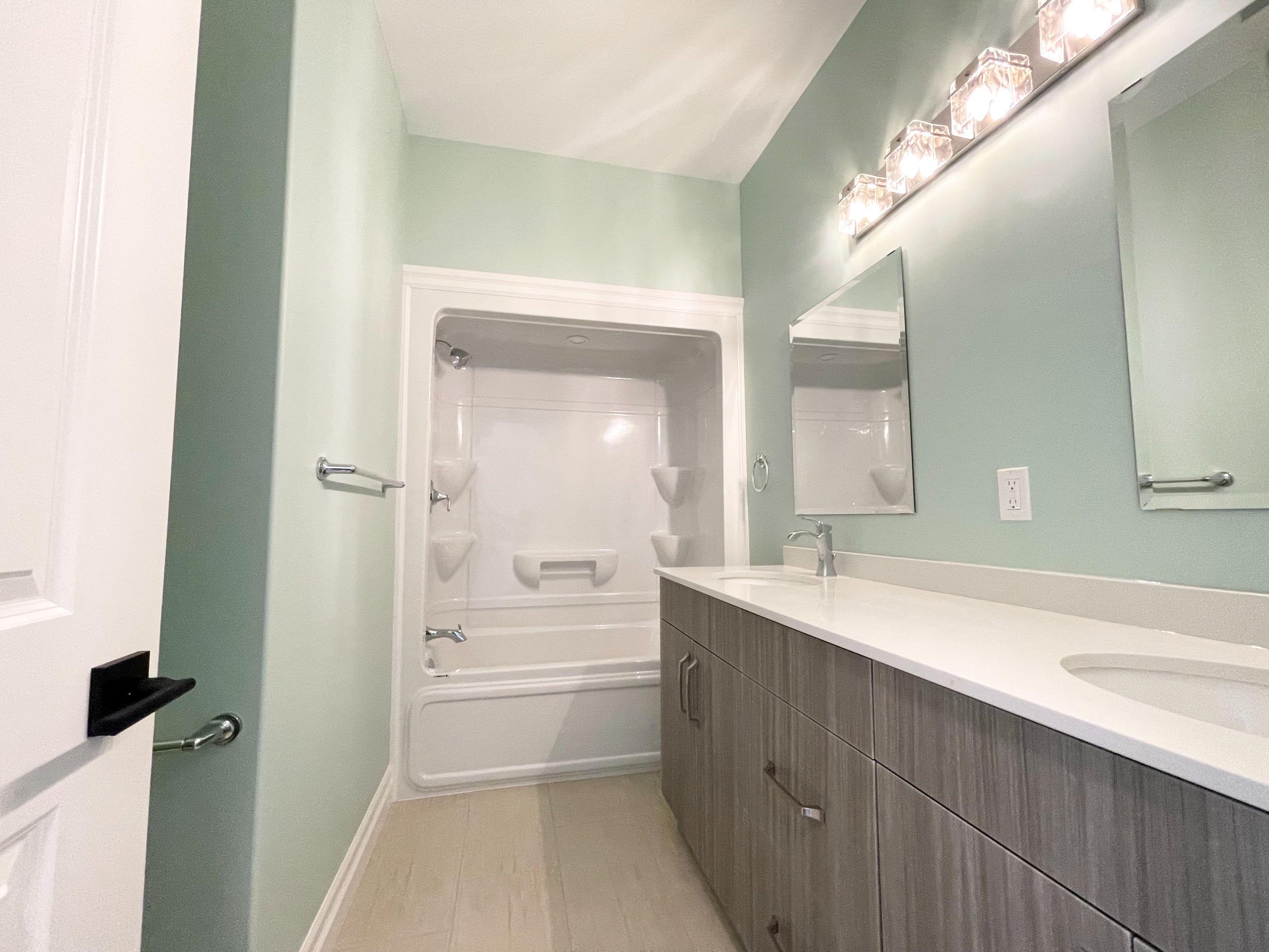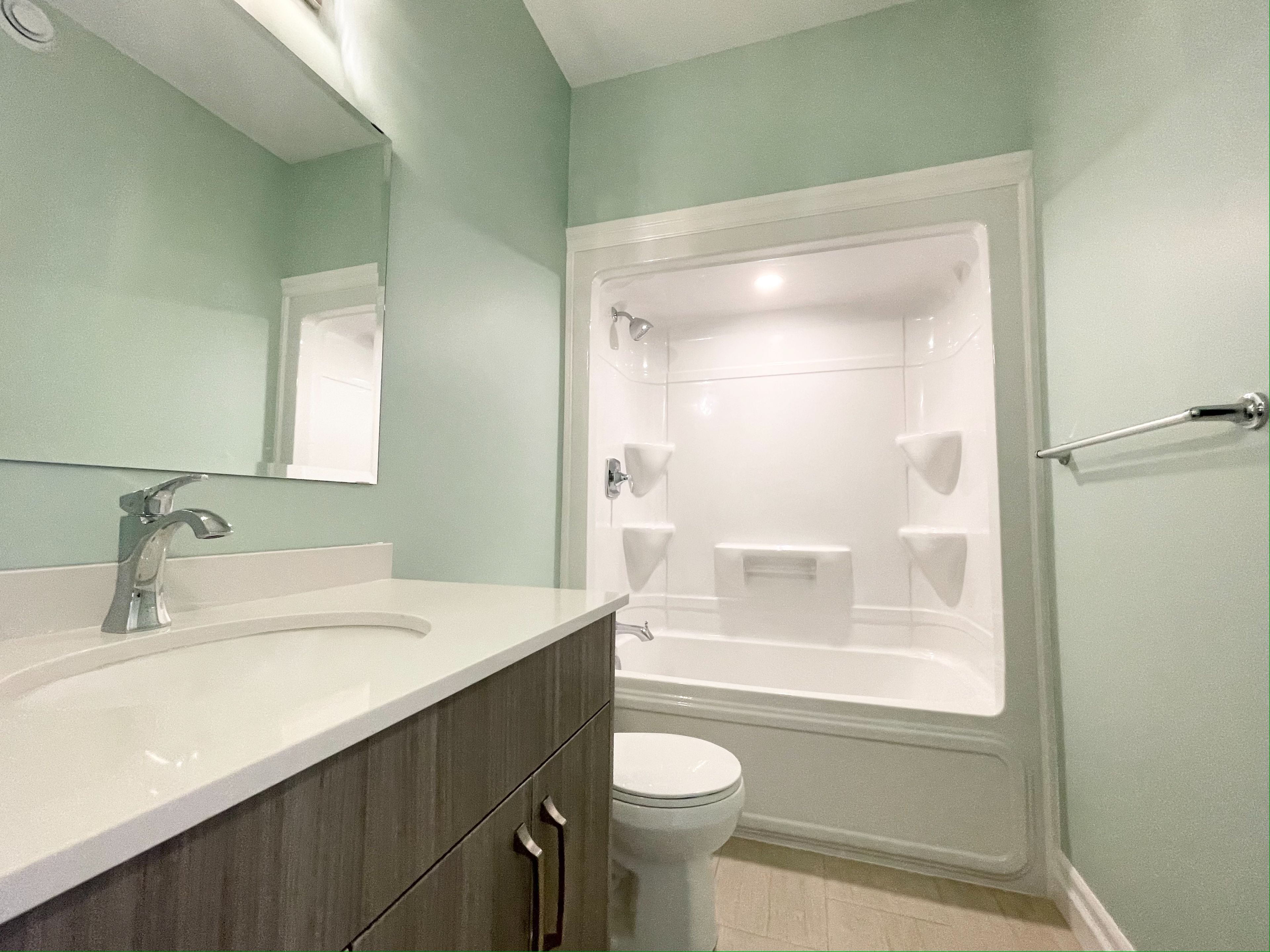 • Stylish quartz countertops and custom hardwood cabinets throughout.