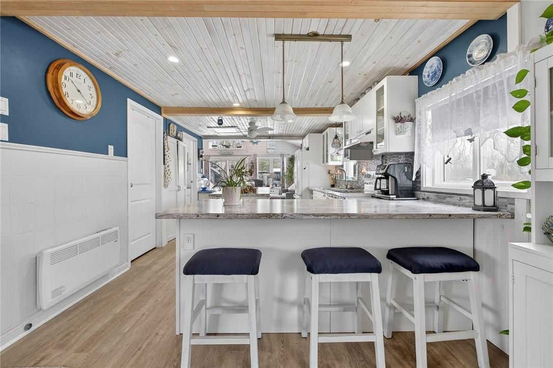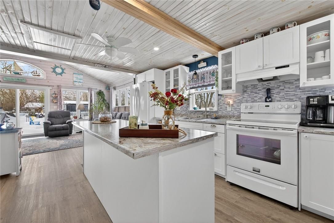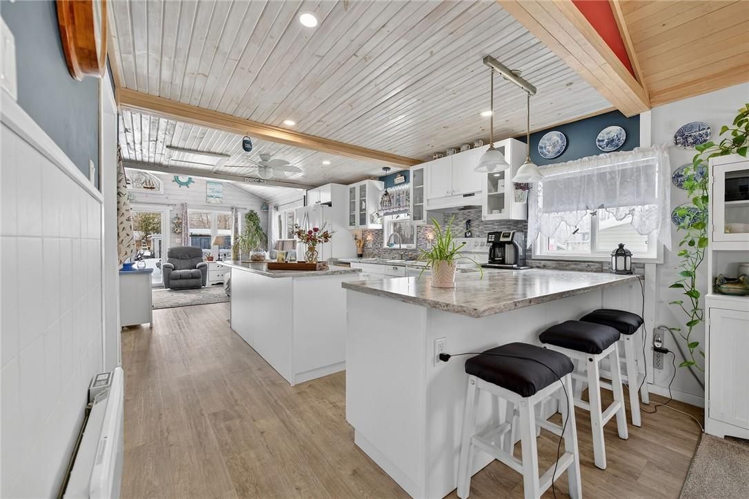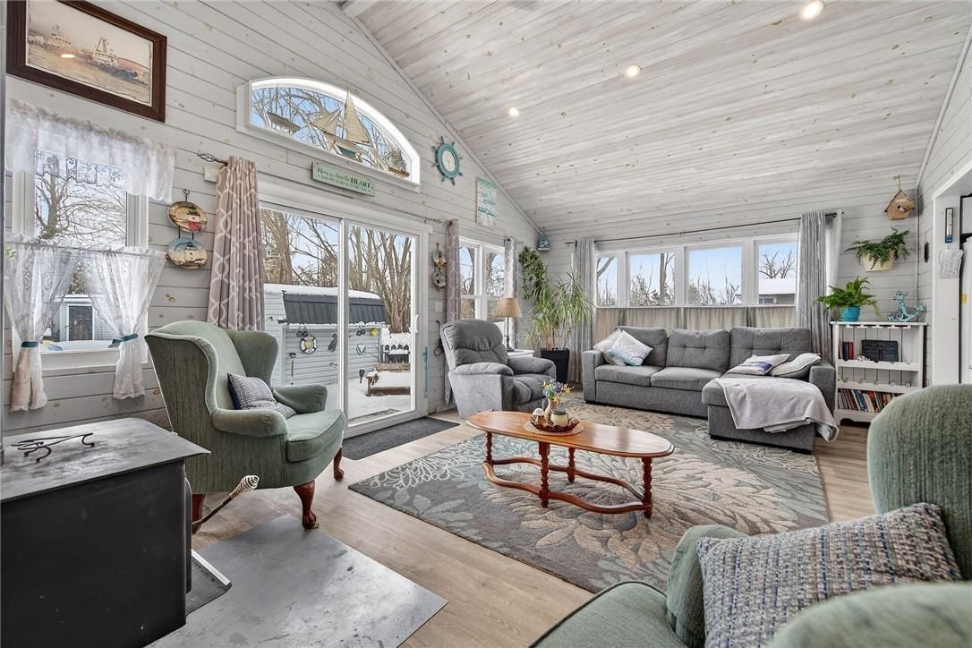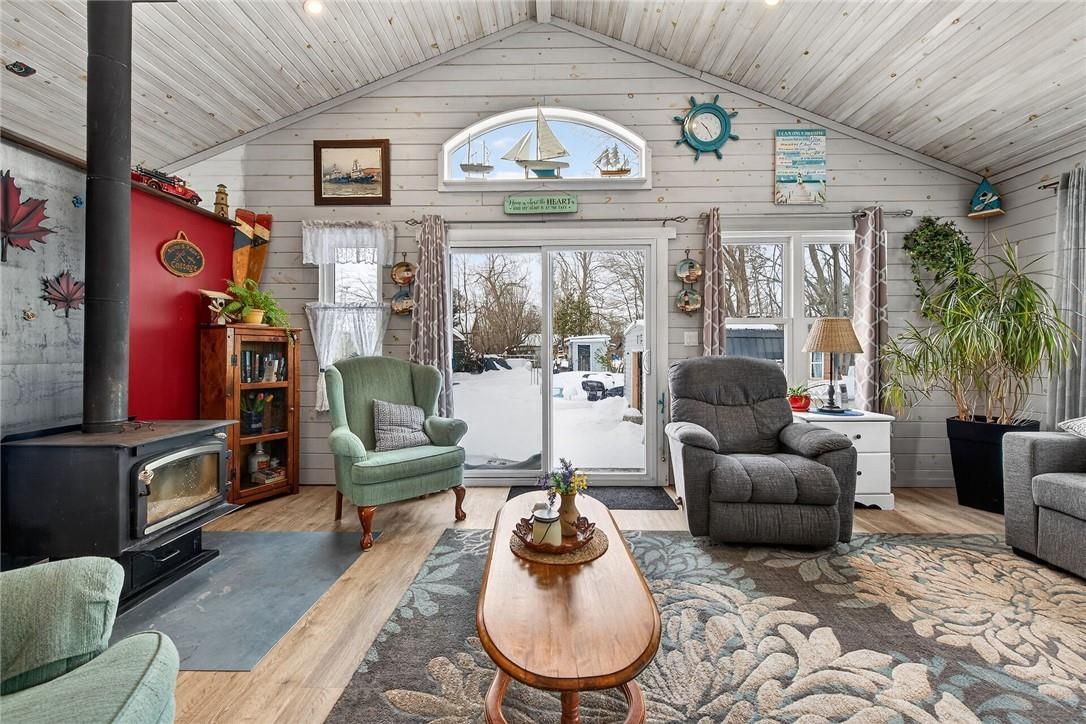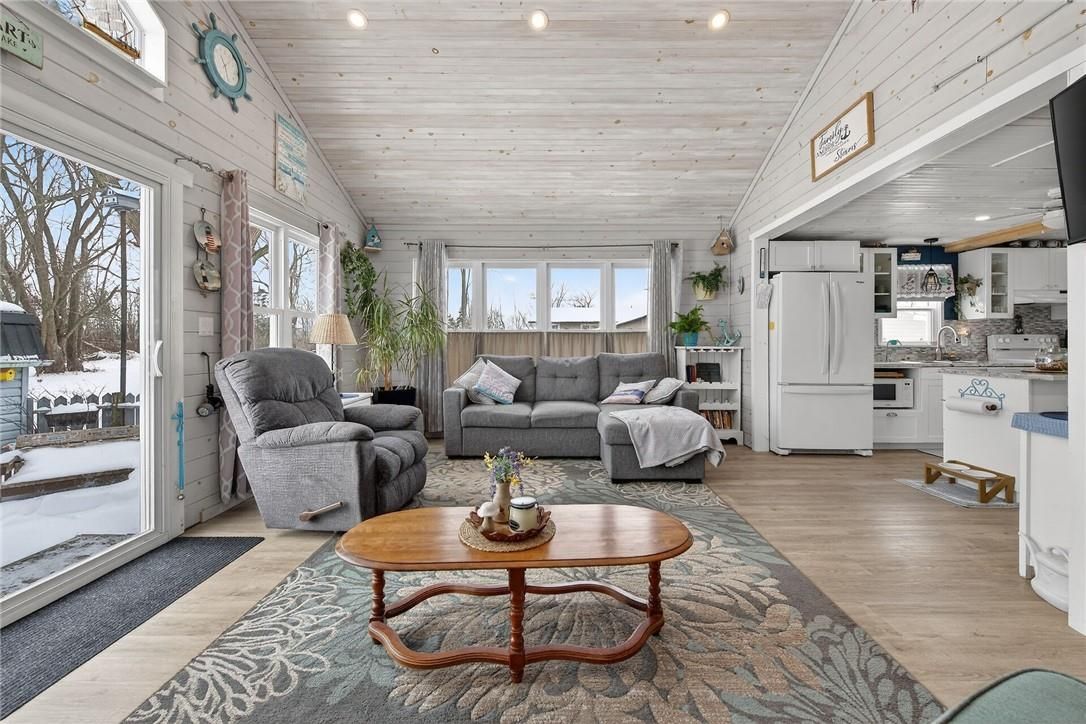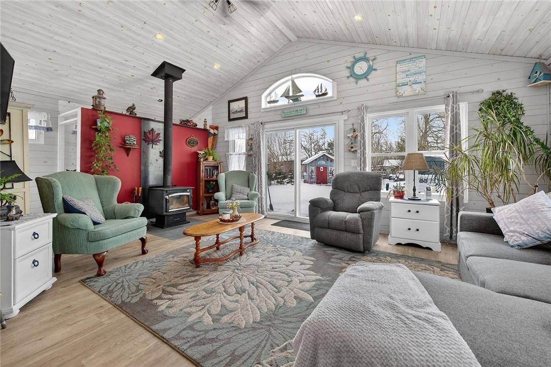 If you are looking for peace and quiet where the world slows down and your neighbors include the deer that come up to the porch for a snack & the sound of birds in the wind - this is it! Magical 38 siddall road in lowbanks offers 1100 square foot home on 50x150ft private lot plus this property is a part of an association that owns 15 acres of common land including 750 feet of sandy beach, some bush and some open areas to enjoy. Association fee is only $75/year. One storey home features many updates including cozy rear addition with wood burning stove, soaring cathedral ceilings and patio door walk out to the beautiful back yard. Recently renovated kitchen is the heart of this home offering island/breakfast area, newer white cabinetry, tile backsplash & white washed wood ceiling. Large dining room here as well as two bedrooms plus 3 pc bath, laundry room and foyer. Pull down attic hatch provides extra storage. Very functional - everything you need to live a simple peaceful life. Charming front porch plus large deck area in the back for your outdoor relaxation. Three great sheds in the back yard - 10x10 with conc flr, insulation, power & steel roof. Second shed is 10x12ft with wood floor, steel roof and power. Last shed is a cool decommissioned out house - perfect for extra storage. Mechanicals: steel roof (except porch), vinyl siding, insulated crawl space, "hydrid" septic, water cistern, 100 amp electrical on breakers, propane gas fireplace plus wood burning stove for heat. Open the windows in the summer to feel the cool lake breeze (or use a portable ac unit). High speed fibre optic internet here.