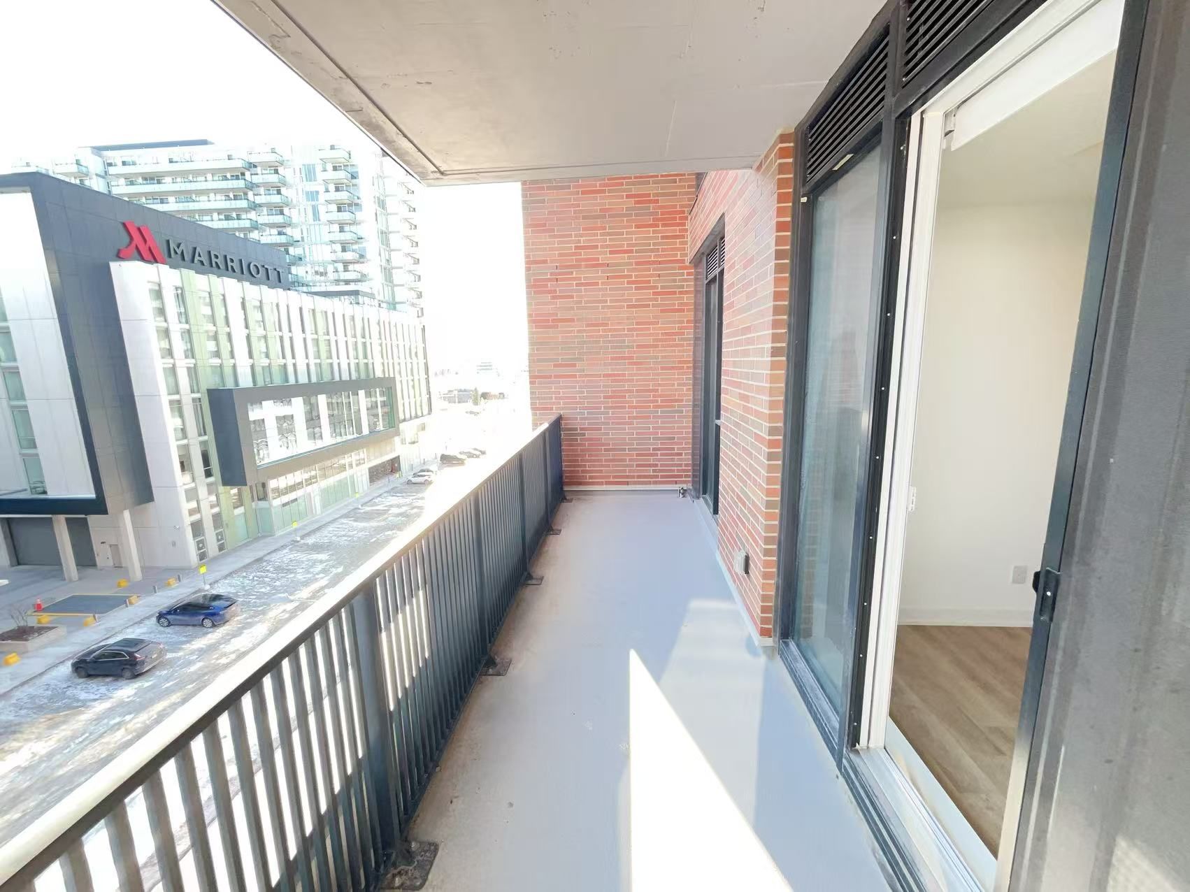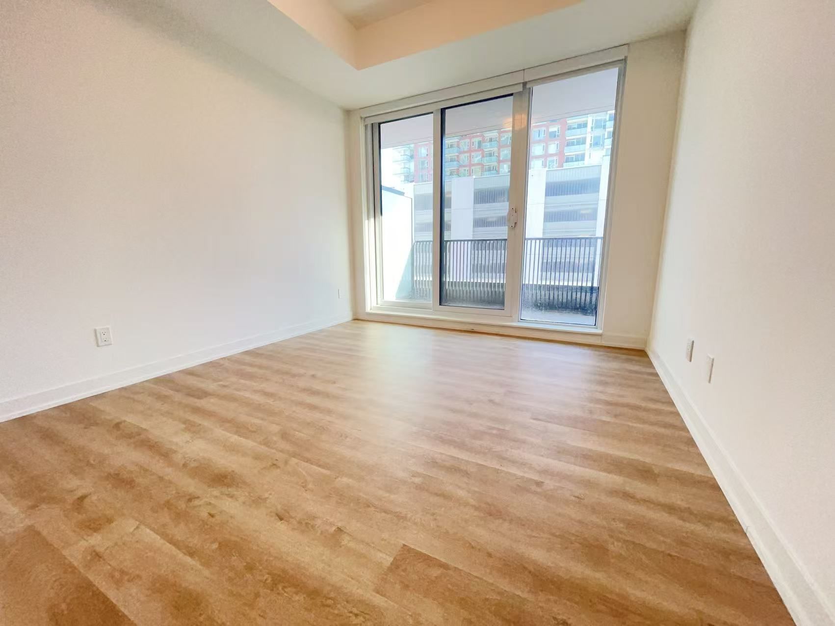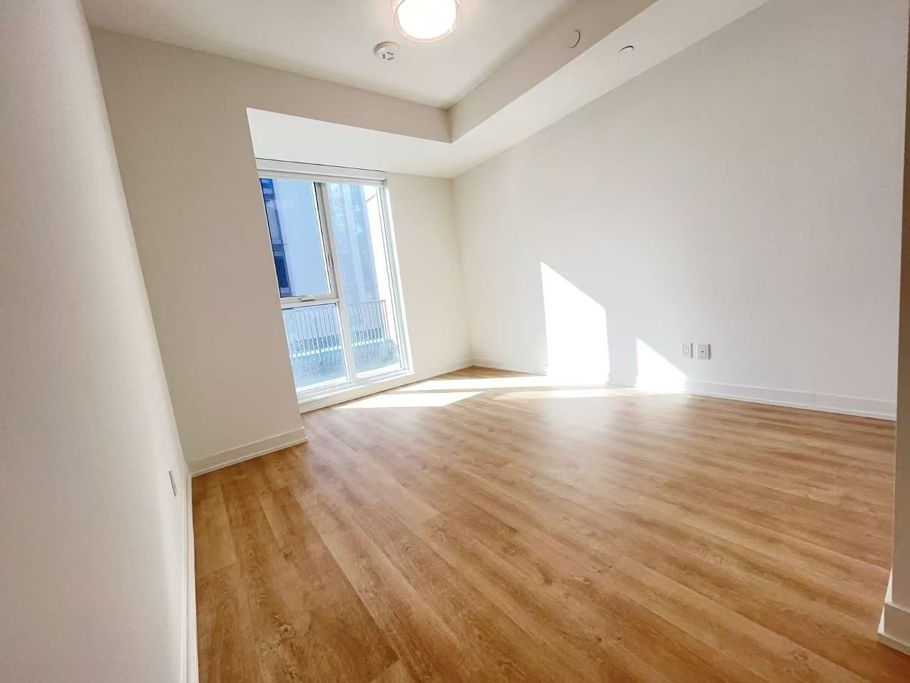 **a fully enclosed den be used as a third bedroom**this brand-new, never-lived-in corner residence offers approximately 1,200 sq. Ft. Of thoughtfully designed living space, featuring 2 spacious bedrooms plus a fully enclosed den be used as a third bedroom. The functional open-concept layout is enhanced by 9-ft ceilings, wide-plank wood flooring throughout, and floor-to-ceiling windows that fill the home with natural light. The contemporary chef's kitchen showcases paneled built-in appliances, stone countertops and backsplash. Enjoy seamless indoor-outdoor living with two generous balconies. 1 parking space and 1 locker are included for added convenience. Unbeatable location steps to viva transit, go station, whole foods, vip cineplex, top restaurants, shops, banks, and parks, with quick access to highways 404 & 407. A perfect blend of style, comfort, and convenience in one of markham's most vibrant communities.