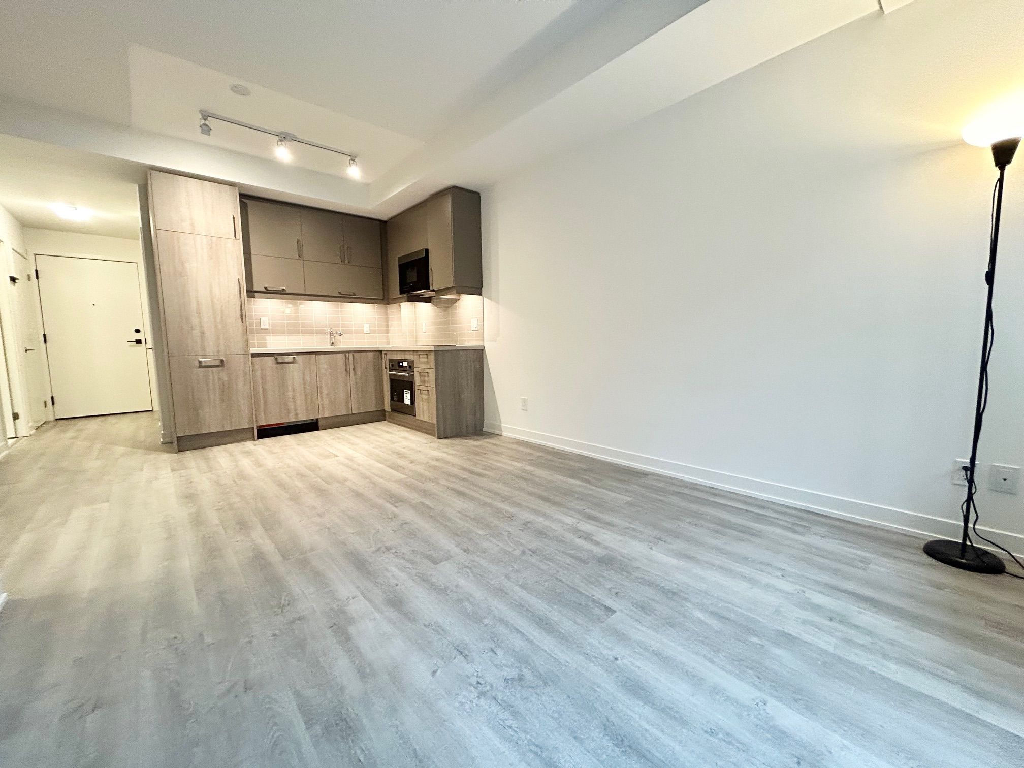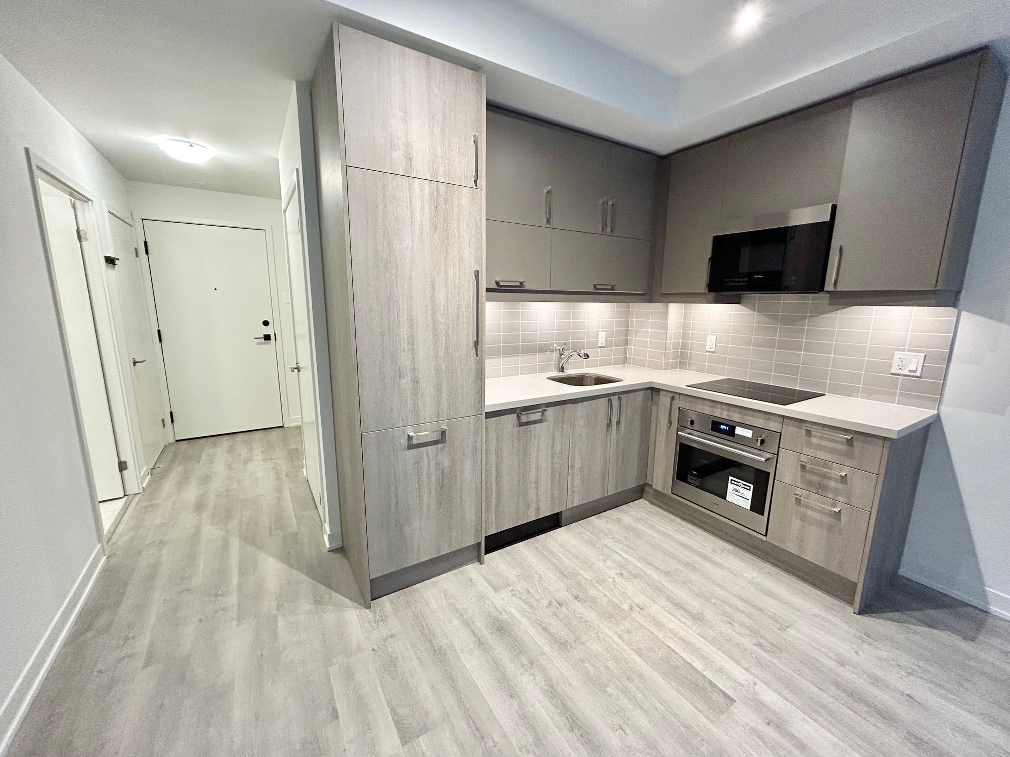 Luxury condo at gallery square in downtown markham! Spacious 1 bedroom + den, 2 full bathroom unit with 9 ft ceilings, west-facing views, and a large private balcony. The den includes ventilation, making it perfect for a home office or guest room. Bright open-concept layout with no waste of space. Upgraded modern kitchen featuring quartz counters, stainless steel & integrated appliances, cooktop, built-in oven, and premium cabinetry with soft closing drawers. Laminate flooring throughout (no carpet). Located in the heart of downtown markham-steps to viva transit, minutes to hwy 404/407, and walking distance to restaurants, banks, parks, vip cineplex, ymca, goodlife fitness, shops, and the new york university markham campus. Luxury living with unbeatable convenience! Professionally cleaned and move-in ready !!!