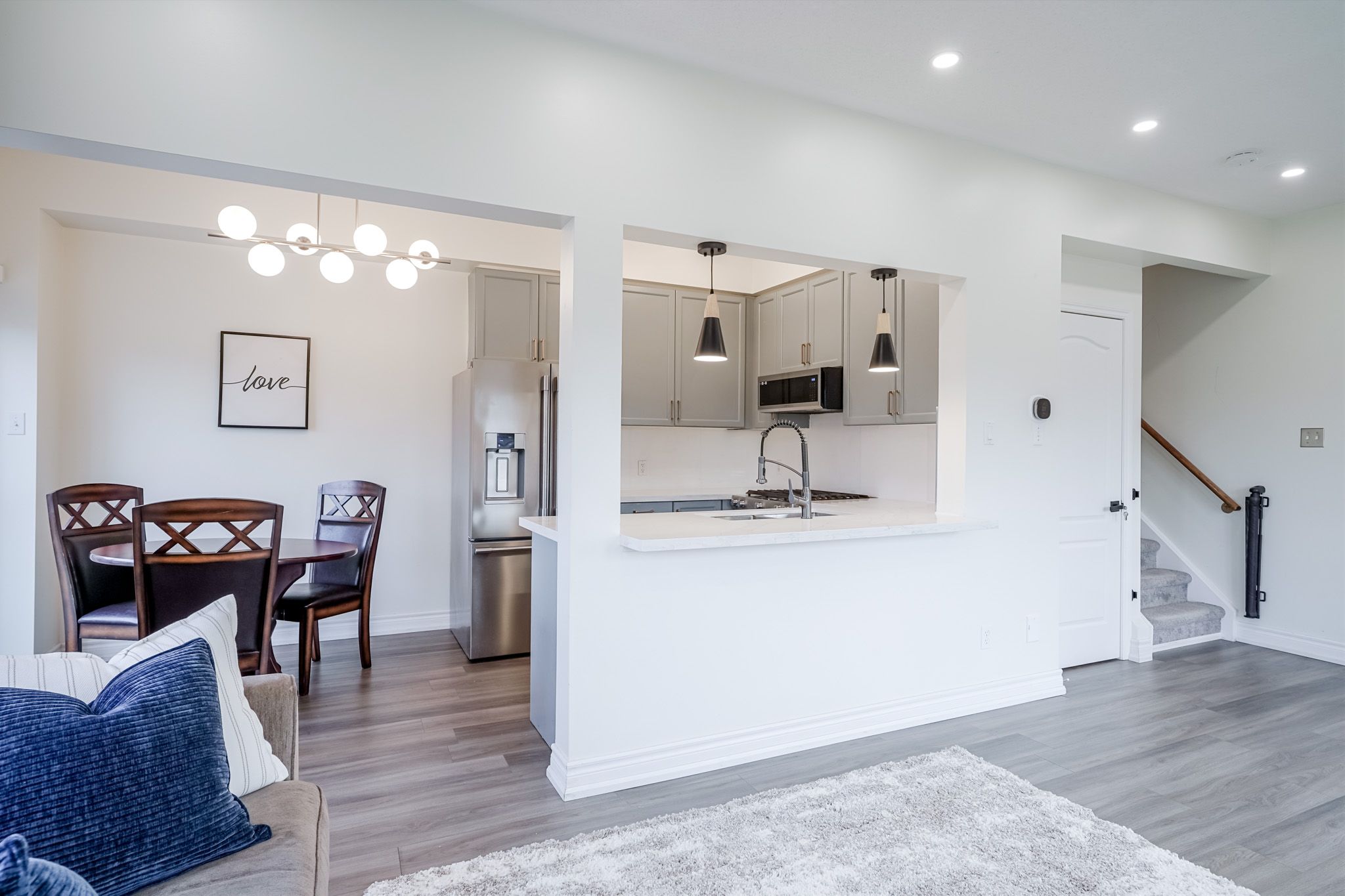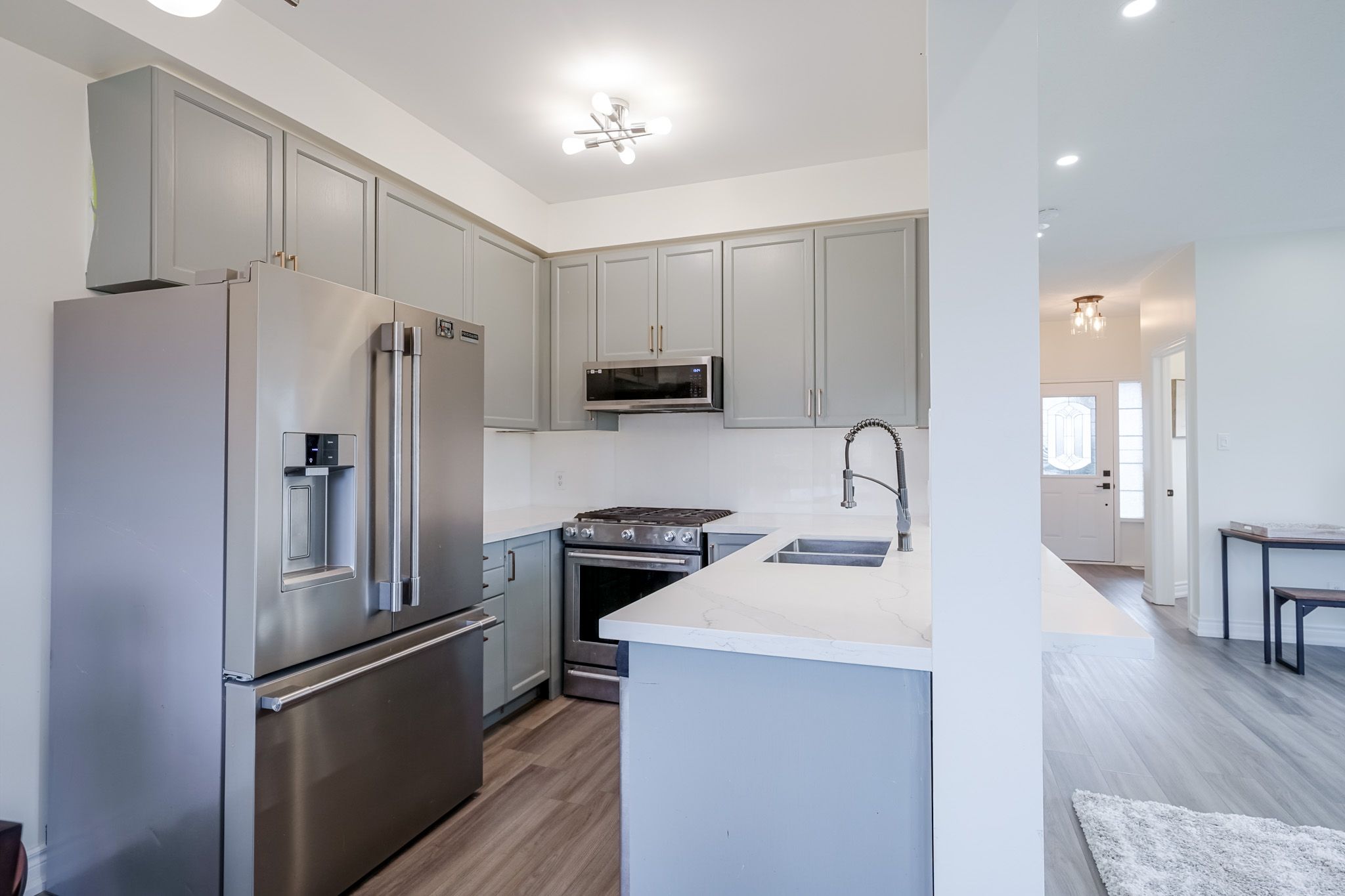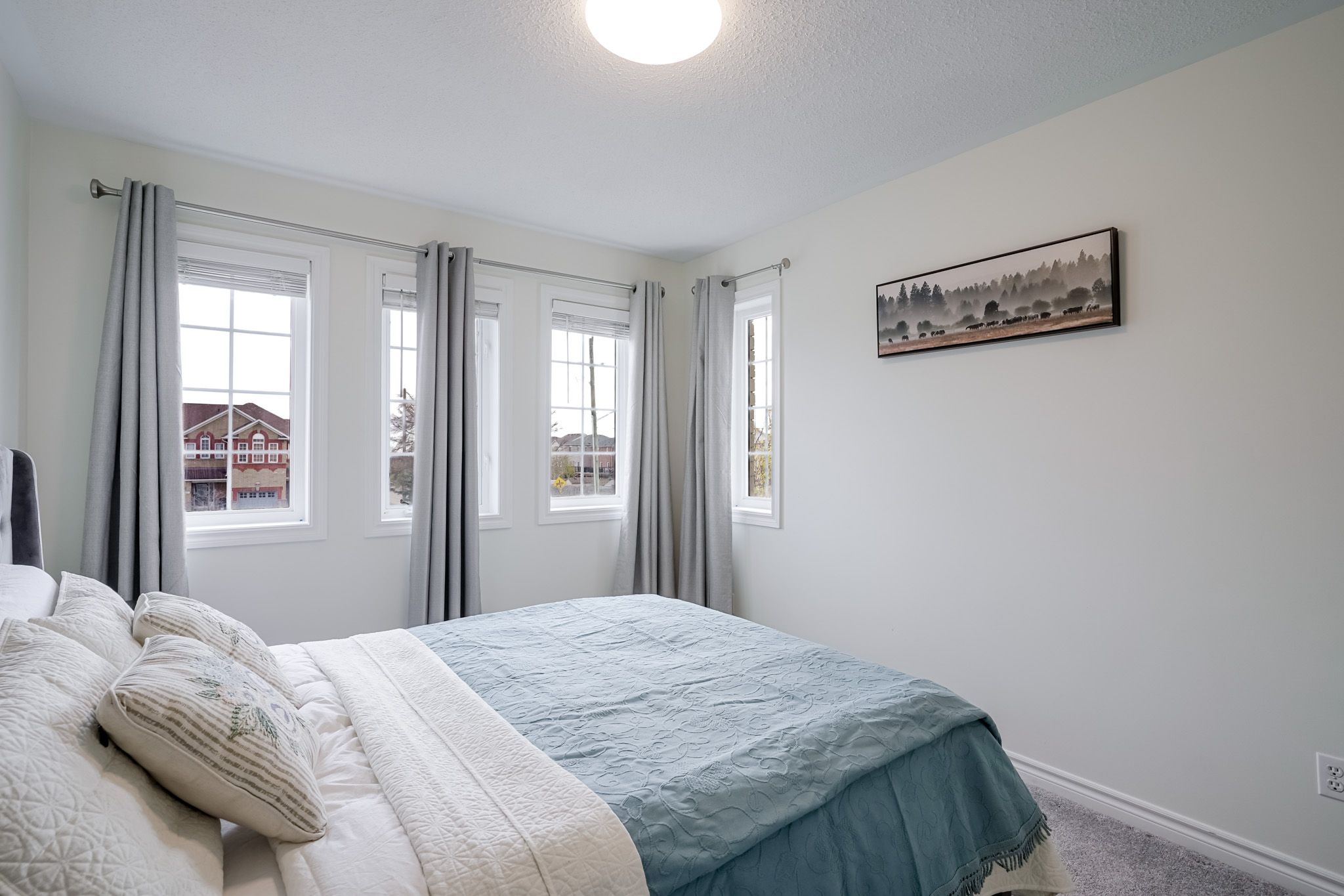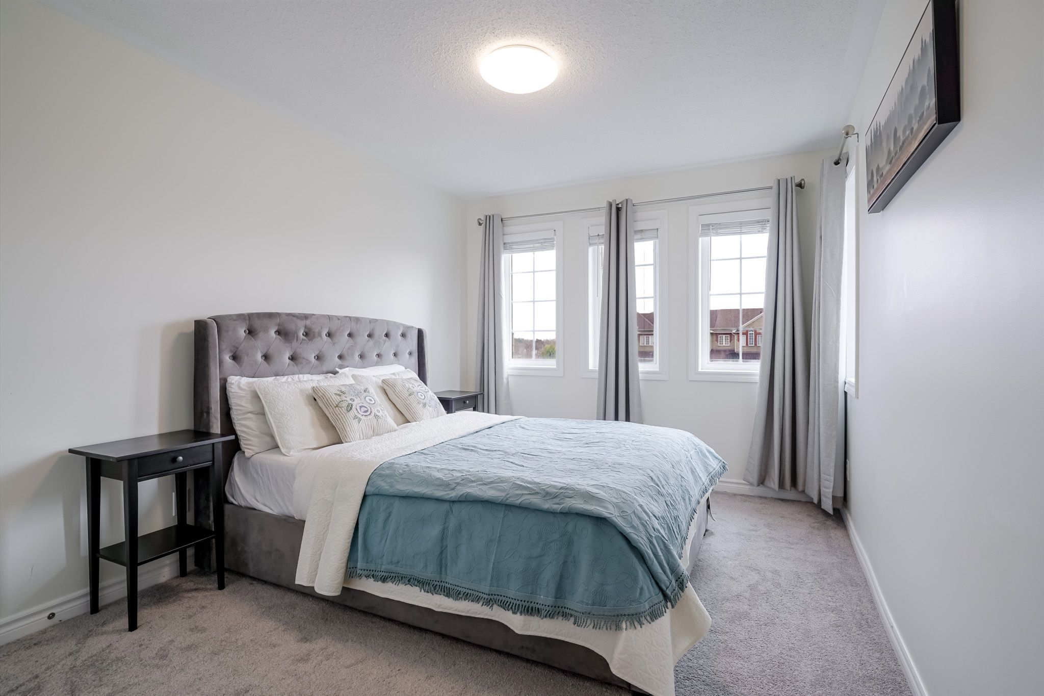 Offering 38 taft place, a bright and inviting end-unit freehold townhome in highly desired north bowmanville. This well-maintained home features 3 bedrooms, 3 bathrooms, and 9-foot ceilings on the open-concept main floor. The upgraded eat-in kitchen showcases granite countertops, stainless steel appliances and a smooth flow into the living area. The finished basement offers a spacious rec room for added versatility. Outside, enjoy an oversized yard with extra side space, a lovely deck and a newly built stone-front porch that enhances the main entrance appeal. The upper level includes a generous primary suite with a walk-in closet and 4-piece ensuite, plus two additional bedrooms and a second full bathroom.
