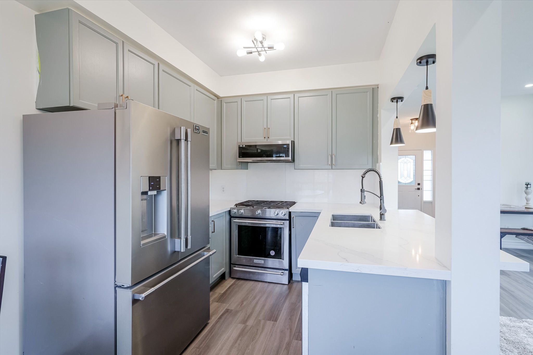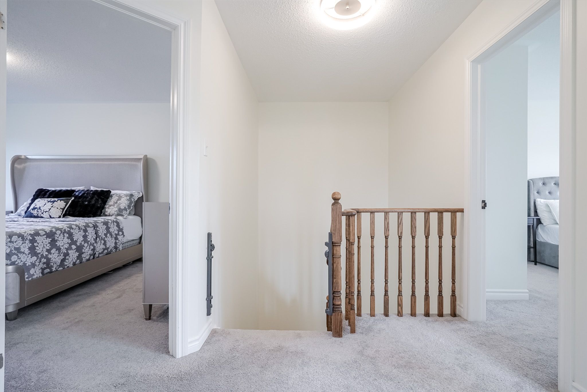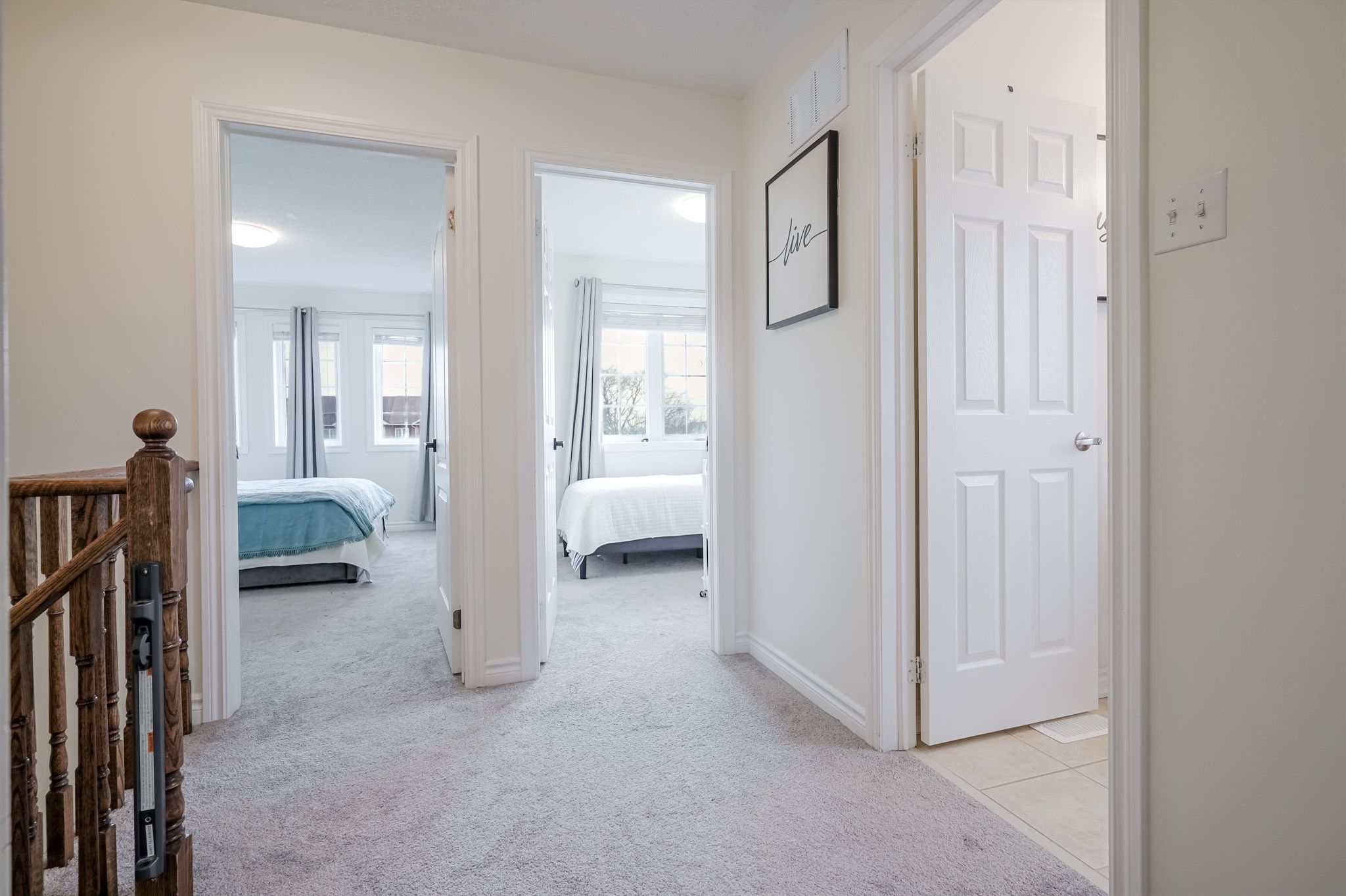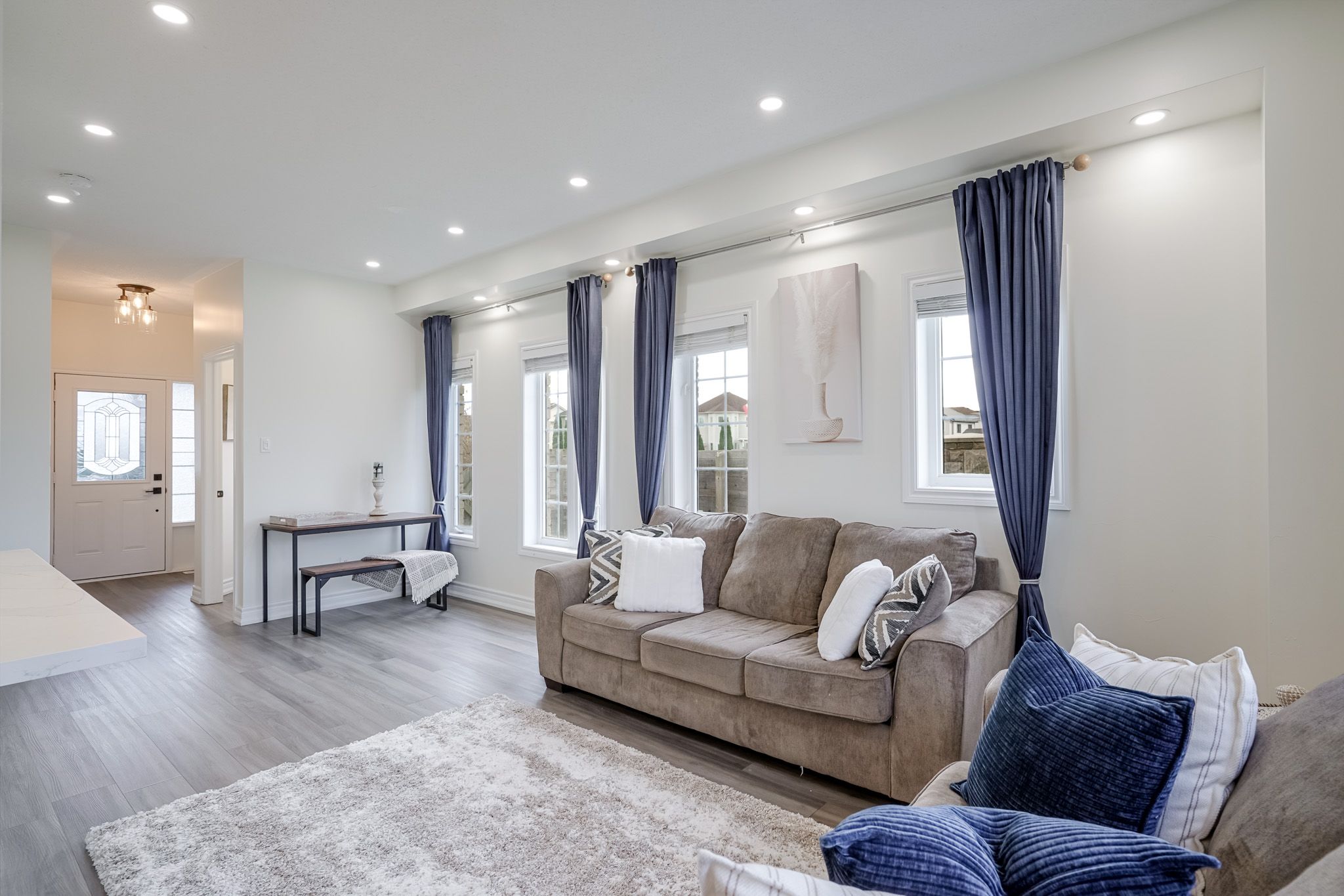Offering 38 taft place, a bright and inviting end-unit freehold townhome in highly desired north bowmanville. This well-maintained home features 3 bedrooms, 3 bathrooms, and 9-foot ceilings on the open-concept main floor. The upgraded eat-in kitchen showcases granite countertops, stainless steel appliances and a smooth flow into the living area. The finished basement offers a spacious rec room for added versatility. Outside, enjoy an oversized yard with extra side space, a lovely deck and a newly built stone-front porch that enhances the main entrance appeal. The upper level includes a generous primary suite with a walk-in closet and 4-piece ensuite, plus two additional bedrooms and a second full bathroom.