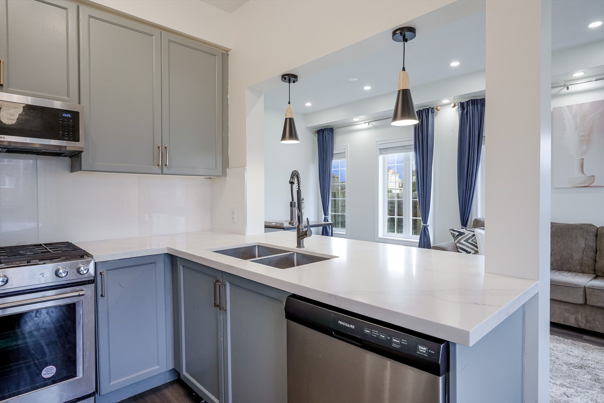 • Upgraded kitchen with granite countertops and stainless steel appliances.
