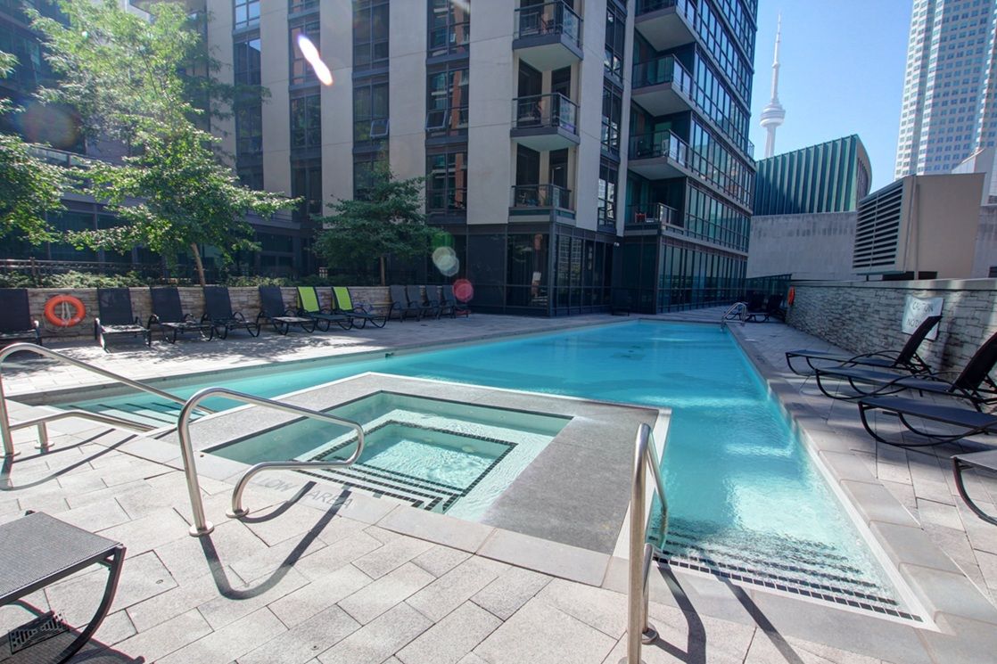 Spectacular london on the esplanade furnished condo in prime waterfront communities! Bright & spacious 12th floor, 1 bed + den in the heart of the downtown core! Amazing open concept layout w/ high quality laminate floors thru-out. Carpet free! Well designed floor plan w/ 9ft ceilings! Den is a separate room where you can use it as a 2nd bedroom! Modern open concept kitchen w/ stainless steel appliances & island bar. Ensuite laundry. Enjoy the gorgeous east lake views from your balcony and the iconic st. James cathedral! Superb amenities! Terrace w/ bbq, outdoor pool, guest suites, gym, steam room, games/media room, lounge, library plus much more! Excellent location! Walk score 98!!! Transit score 100!!! Steps to tmu, george brown, subway, u of t, eaton centre, yonge-dundas square, financial core, city hall, st. Lawrence market, shops, restaurants, hospitals, the entertainment district, etc. Ideal for young professionals/couples.