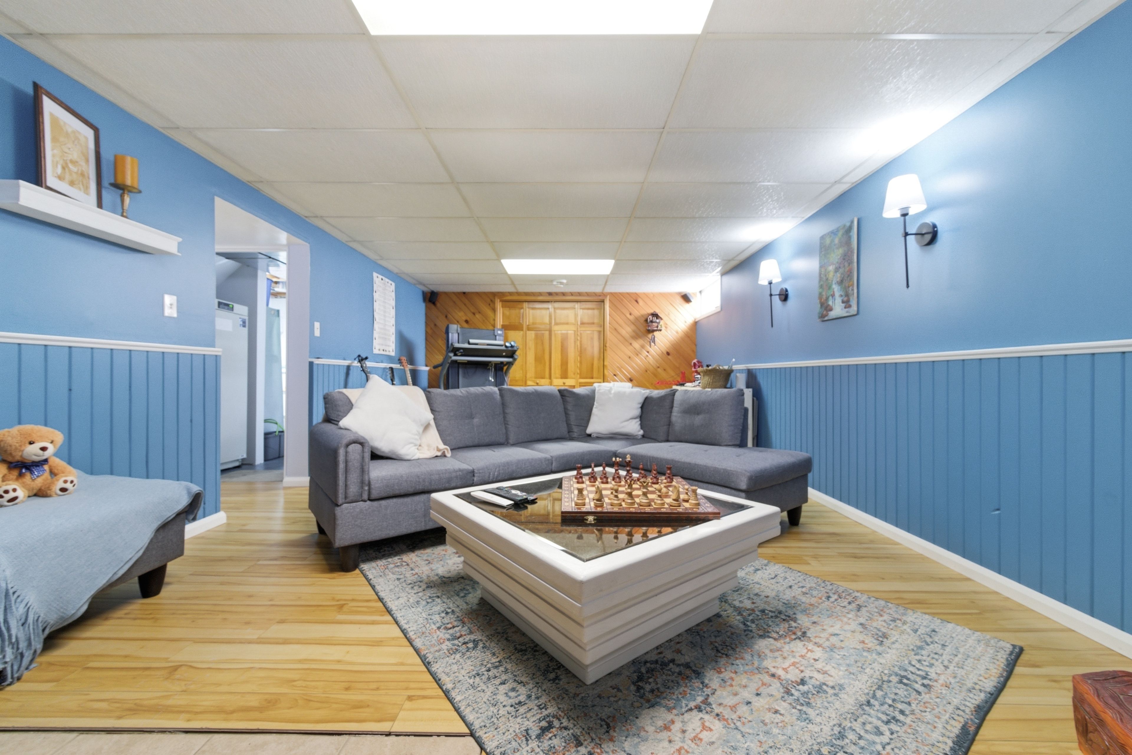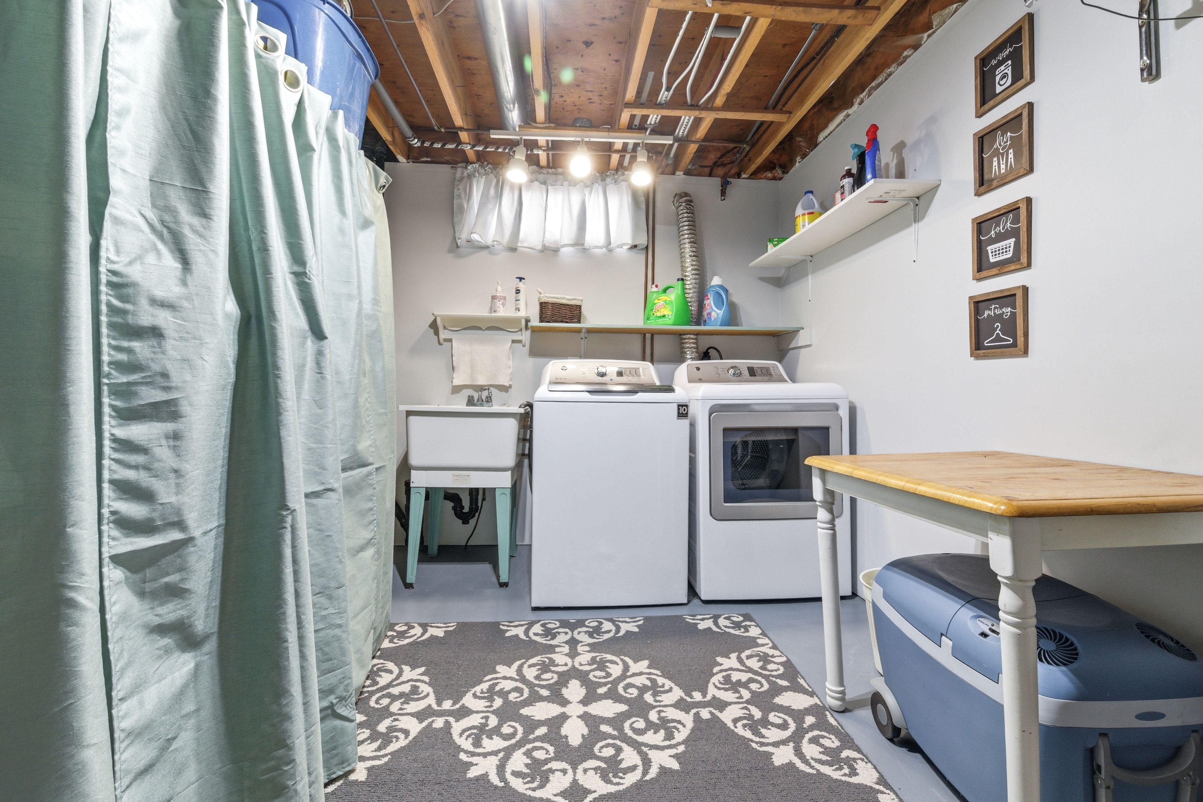 • Fully finished lower level with family room, workshop, and laundry area.
