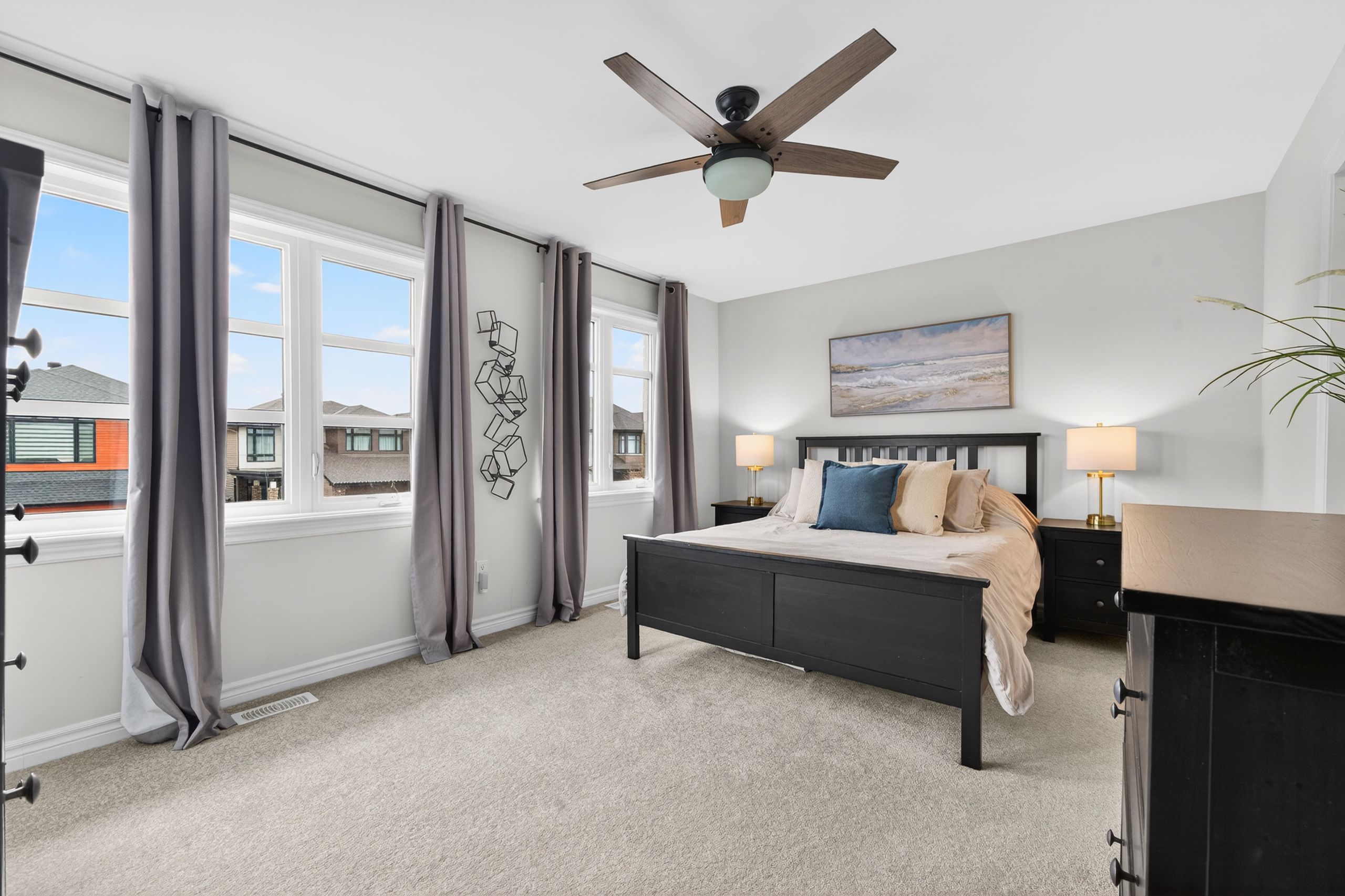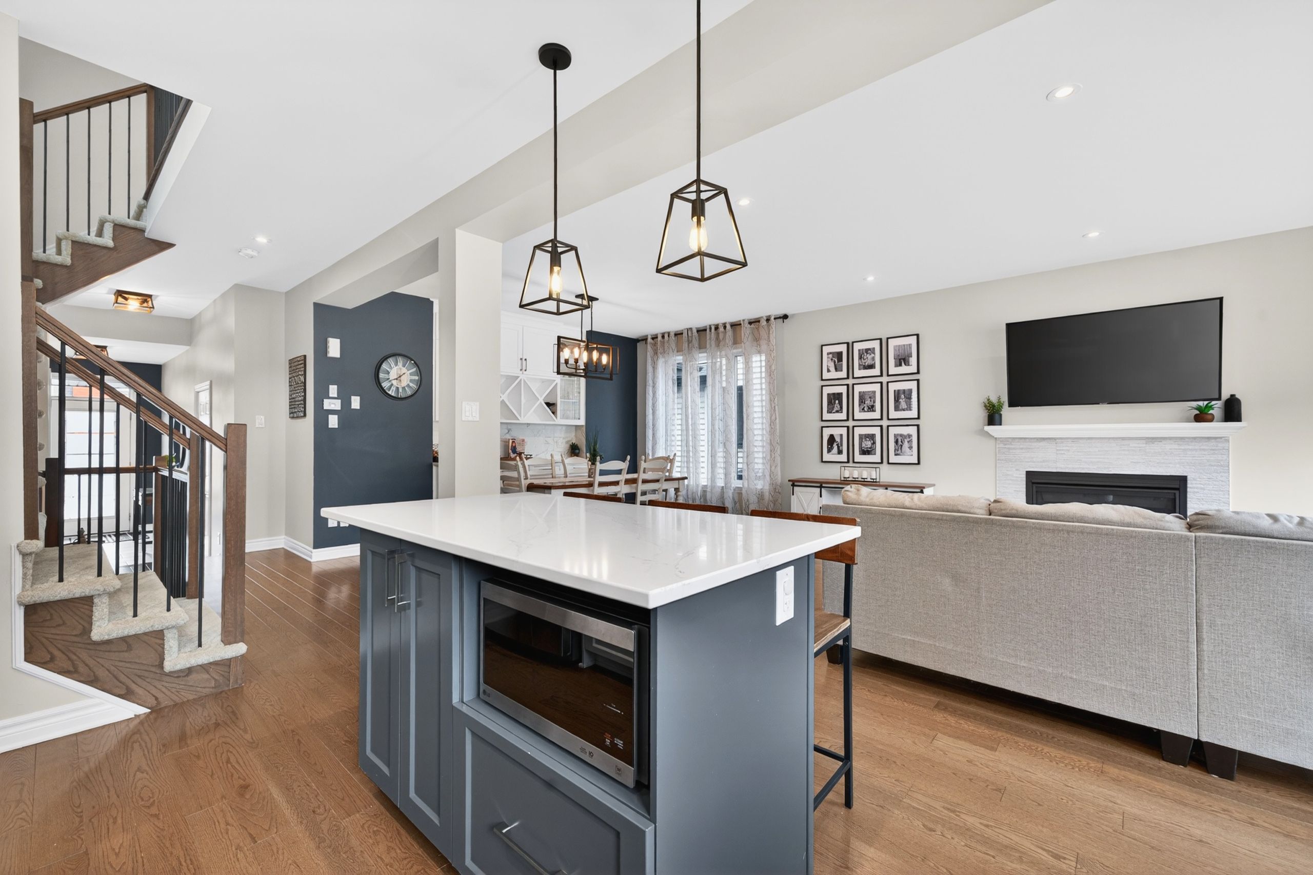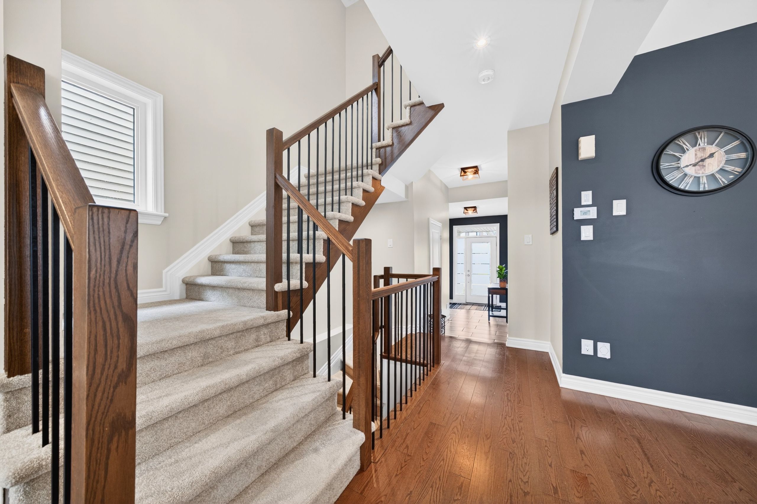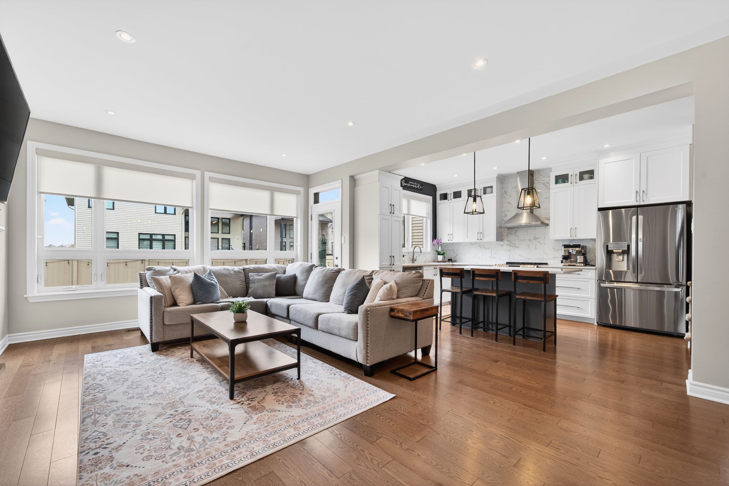 Welcome to this beautifully upgraded richcraft home built in 2019 in a prime location offering tons of builder upgrades & exceptional pride of ownership throughout. Situated on a quiet, family-friendly street, this home delivers modern high-end finishes, custom blinds throughout, custimized upgrades, & a professional landscaped outdoor space ready for entertaining. Step inside the spacious foyer w/upgraded 12x24 tile & a custom bench w/cubbies adds both style & functionality. The main level features 9ft ceilings, upgraded wide plank hardwood floors, tons of pot lights, & a striking upgraded chef's kitchen complete w/quartz countertops, modern tile backsplash & top-of-the-line cabinetry w/upgraded uppers. New custom built-in buffet w/quartz countertop by potvin. Upgraded banisters w/iron spindles lead you to the 2nd level. Spacious primary bedroom w/luxurious 5-piece ensuite showcasing double sinks, quartz counters, & a large glass shower w/modern tile detail. 2 more spacious bedrooms + full bath w/ quartz. Convenient 2nd level laundry rm w/upgraded tile. Lower level features a spacious family rm w/vinyl plank flooring, pot lights & convient 3 piece bath. Great space for the kids to hangout! Lot's of storage space. The exterior is just as impressive w/professional interlock at the front, a beautiful backyard interlock patio, custom flower beds, & a fully fenced pvc yard-perfect for relaxing or hosting. Home shows like a model home! Steps to mutiple parks (bradley craig park w/splash pad), schools & all amenities. 24 hours irrevocable for all offers. Don't miss out!