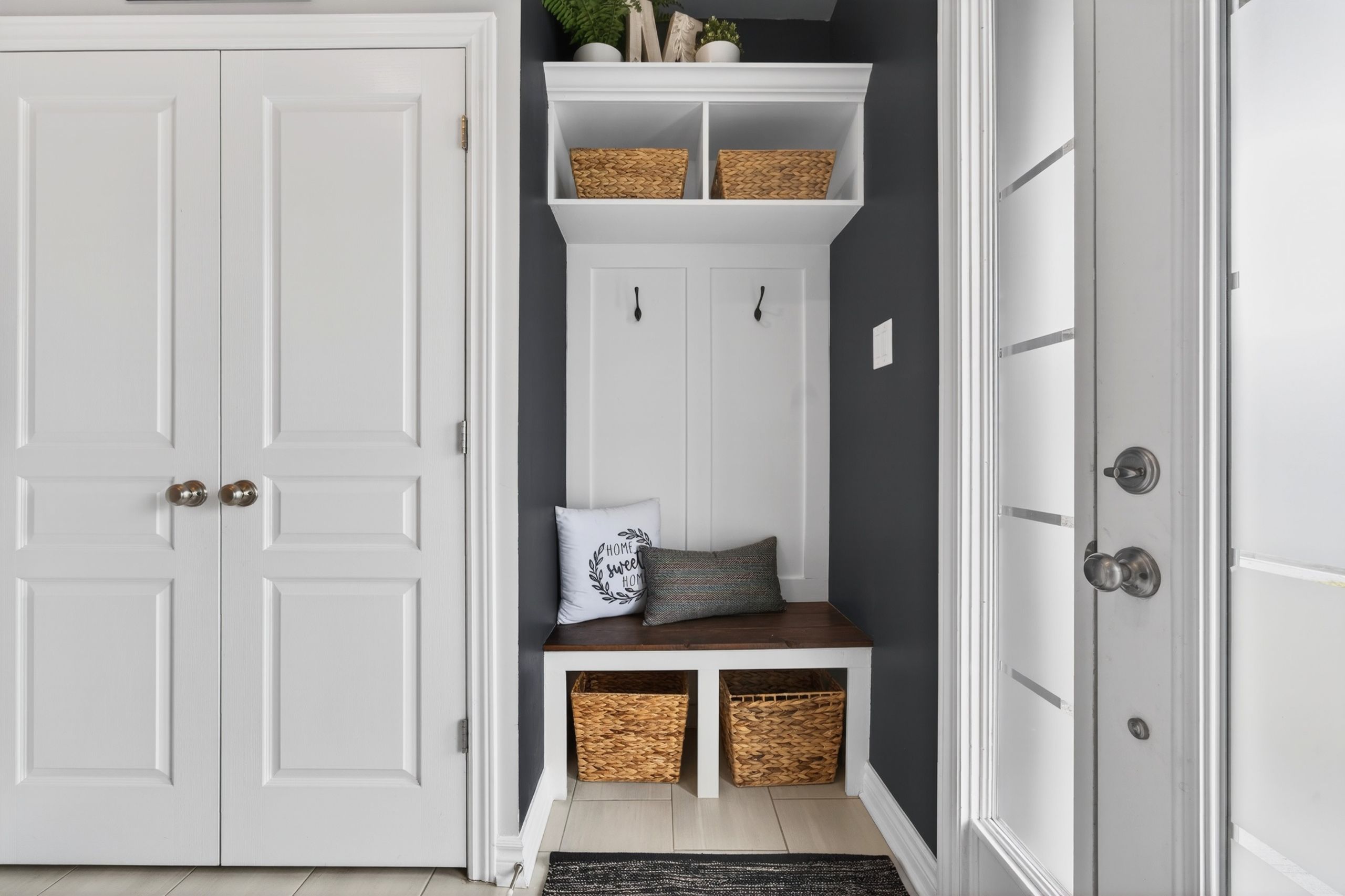 • Spacious foyer with stylish upgraded tile and a functional custom bench.