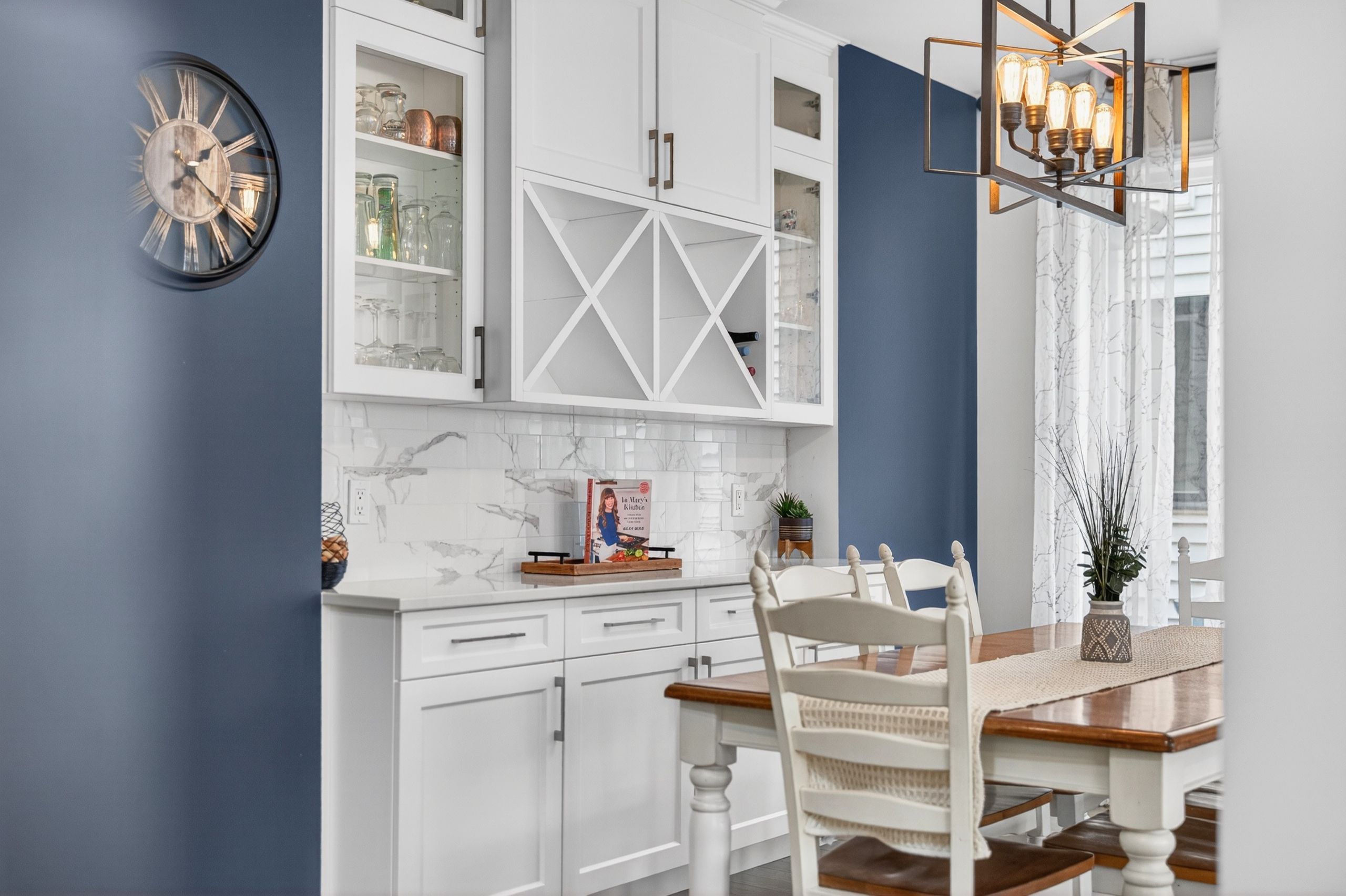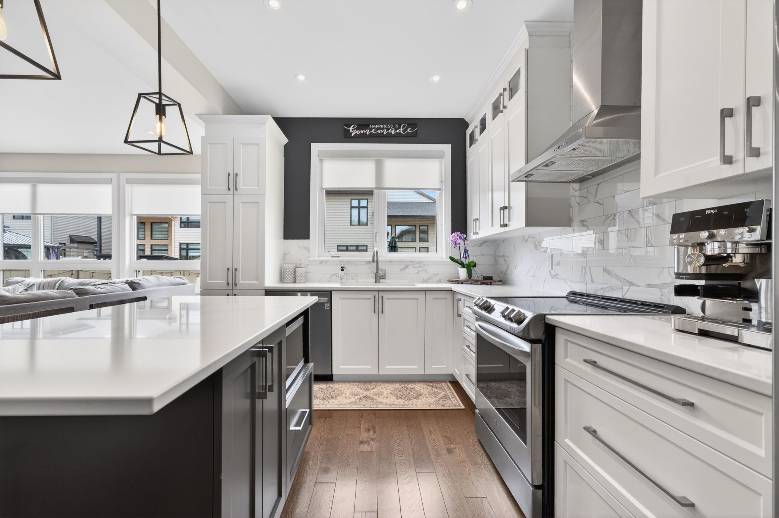 • Chef's kitchen featuring quartz countertops and top cabinetry for cooking enthusiasts.