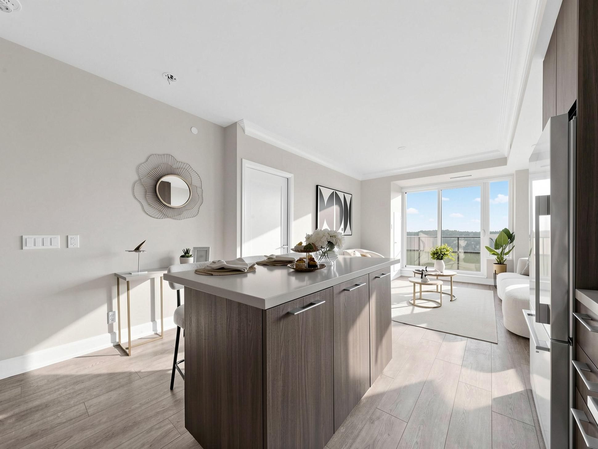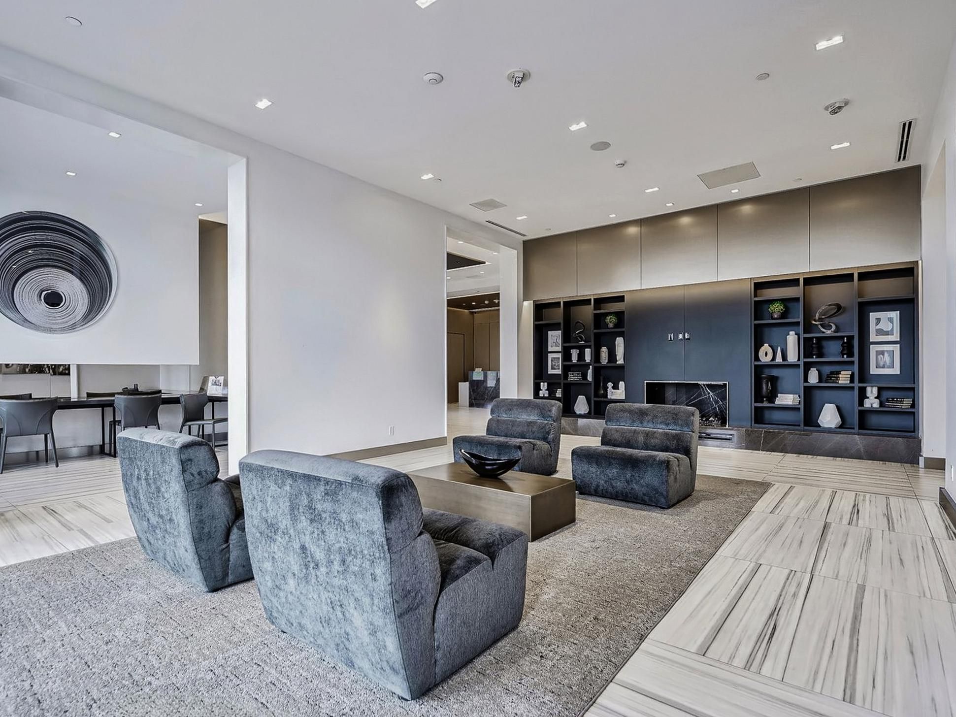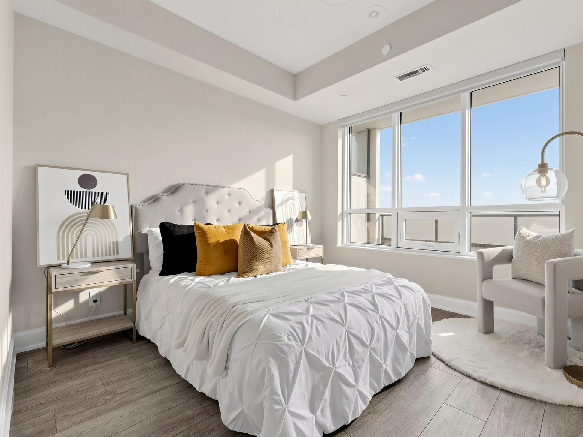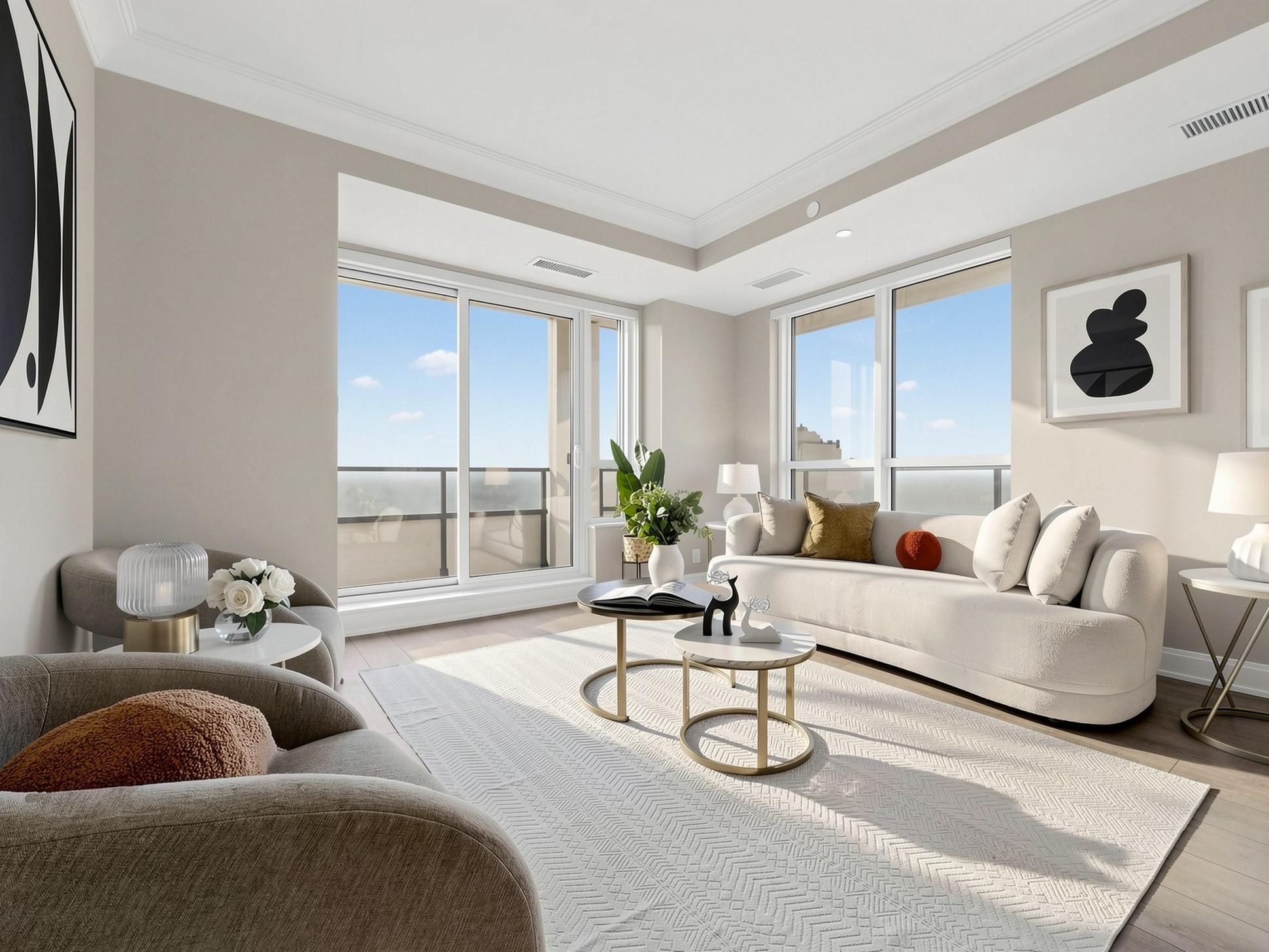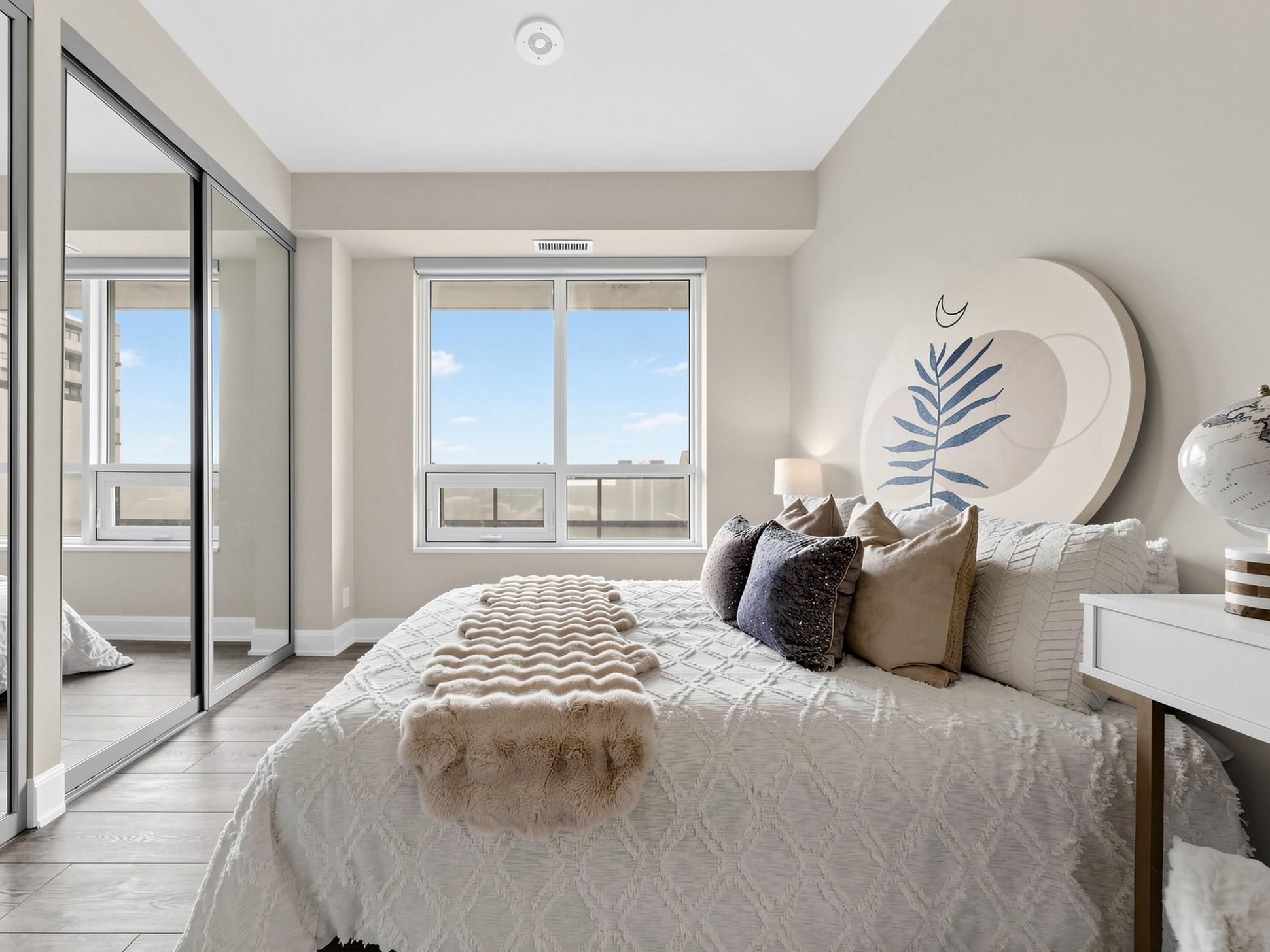 • Bright interior with floor-to-ceiling windows and smooth 9-ft ceilings.